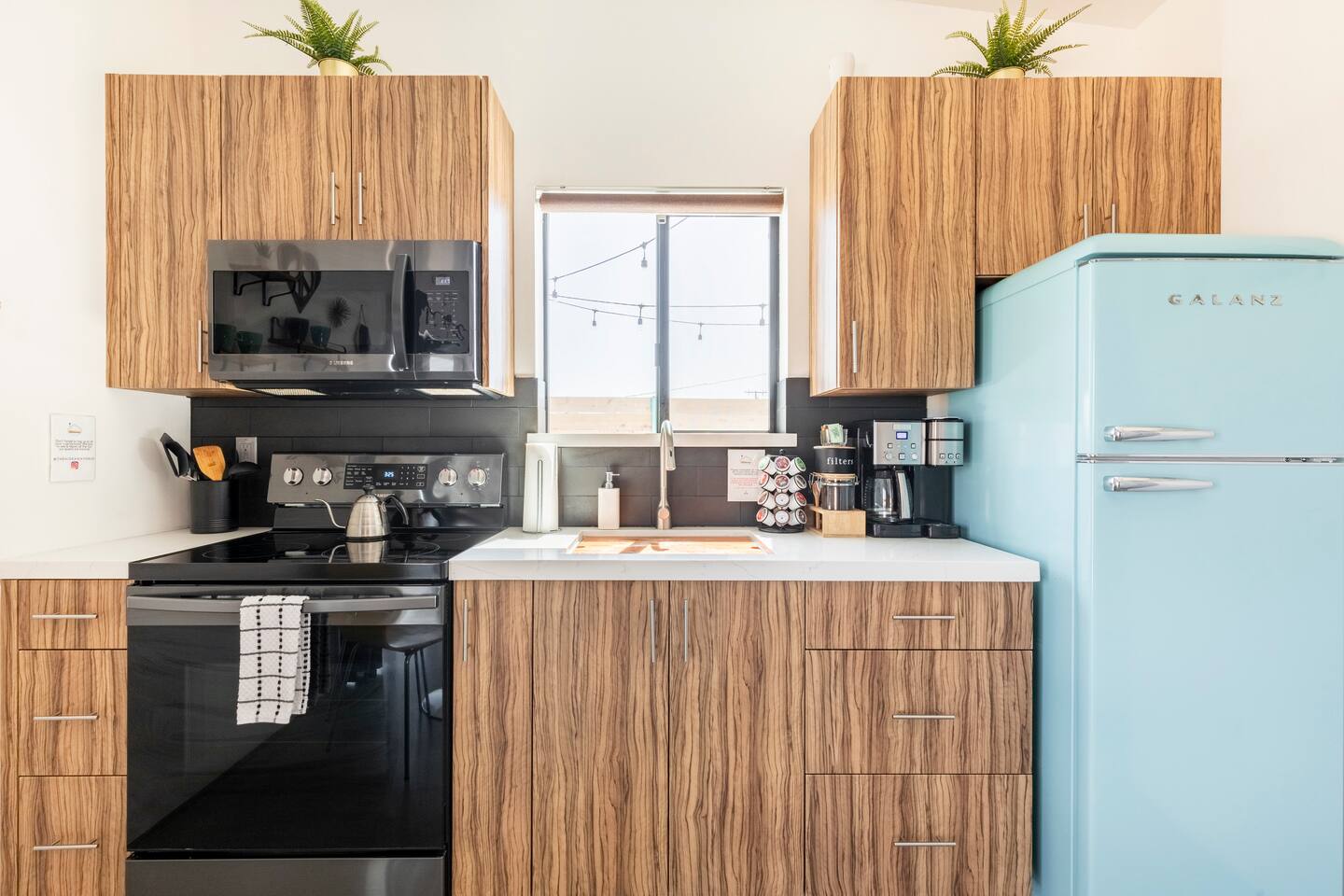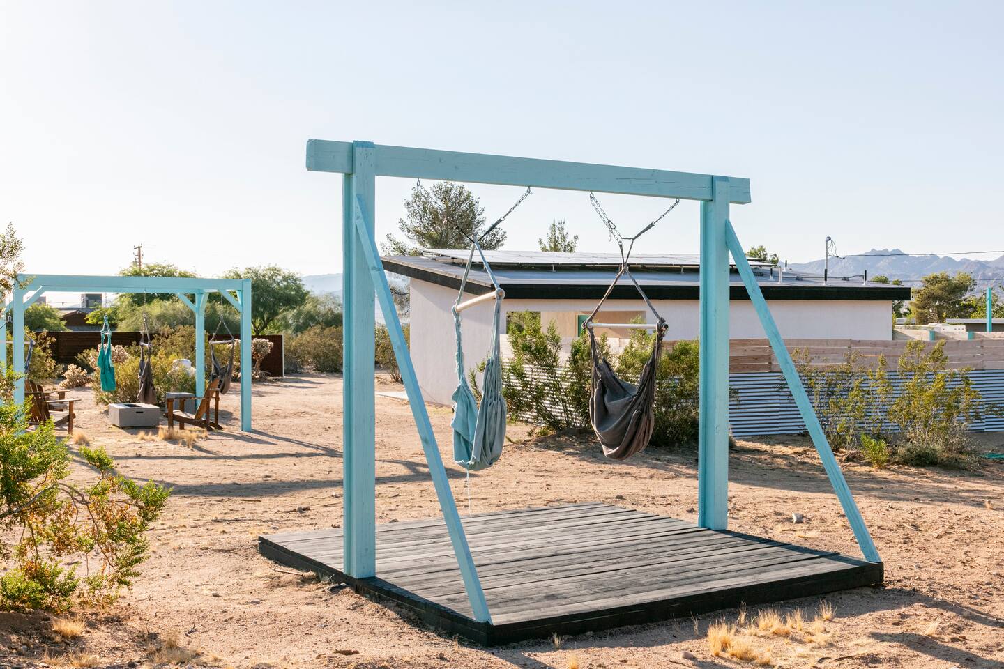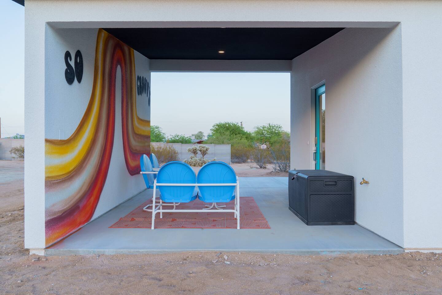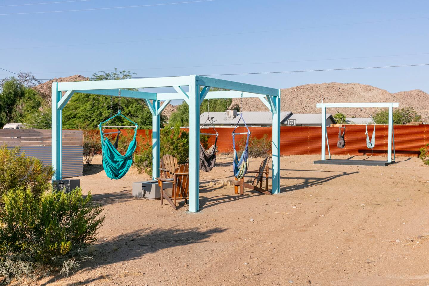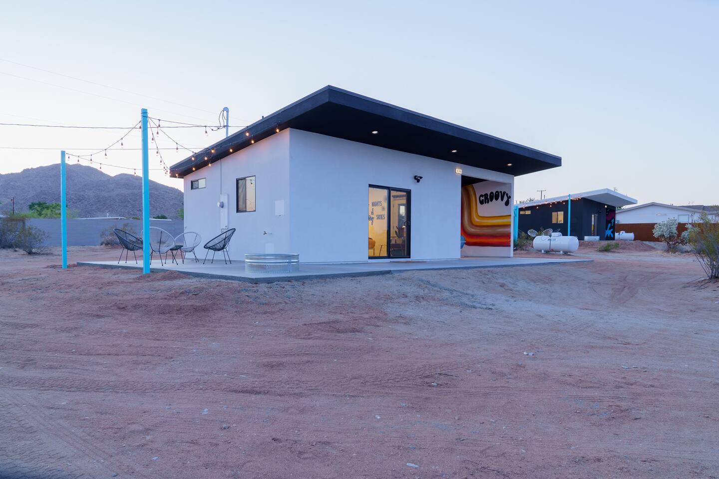 KEY FEATURES ☀ Spacious 391 square foot studio with 1 Queen sized bed and 2 Twin size trundle beds ☀ 1 full bathroom. ☀ Full kitchen, with all the tools needed to make a delicious meal! (there is no dishwasher available) ☀ Stocked coffee bar with assorted K-cups, whole bean coffee and coffee grounds ☀ Salt, pepper, and cooking spray are provided ☀ 55” flat screen TV with access to all streaming platforms (logins not provided) ☀ Free WiFi ☀ Washer + dryer ☀ Easy access; no steps to entry ☀ Convenient location; short drive to National Park, restaurants and activities ☀ Private fenced in backyard with hot tub and firepit ☀ On a large shared 1 acre lot with our 90s Haus ☀ Shared area with propane fire pit, pergola and hammocks ☆☆ BEDROOM & LIVING AREA ☆☆ Ultimate comfort and relaxation awaits you on our Queen size bed with Zinus memory foam mattress. There are also two Twin size trundle beds perfect for additional guests or kids. (FYI, there is no wall/room that separates these beds from one another. You will all be sleeping in the same “room”) You can have a cozy movie night relaxing in bed and watch your favorite shows on the 55” TV. Netflix, Hulu and Disney+ are available for your use, but you will need to provide your own login ☆☆ BATHROOMS ☆☆ There is one full size bathroom complete with plush bath linen, towels for the spa, hairdryer and first aid kit ☆☆ KITCHEN & DINING ROOM ☆☆ The fully equipped kitchen has everything you’ll need for whipping up tasty meals for the whole group, including stainless steel appliances, a toaster, a blender, a coffee machine, a Keurig, and all the basic kitchen essentials like pots, pans, plates, cups, and utensils. Enjoy meals together at the kitchen table with seating for 4. There is a stocked coffee bar with assorted K-cups, whole bean coffee and coffee grounds. Salt, pepper, and cooking spray are also included! ☆☆ OUTSIDE SPACE ☆☆ Step outside and into your private desert oasis. The entire backyard is fenced in, not only for your privacy, but also so your furry friends can safely explore! The best part about coming to Joshua Tree is being able to enjoy the outdoors and we think the backyard will do just that. The backyard features a hot tub, great for soaking in after long days hiking in the national park, as well as a fire pit surrounded by a pergola with hanging hammock chairs which is perfect for enjoying the starry night skies. ★☆ Book Today & Let Us Take Care Of You In Joshua Tree! ☆★