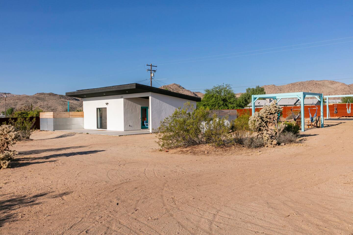 Pros - Private hot tub - Short drive to downtown Joshua Tree - 100% paved roads to get to the property - 4 minute drive to Dollar General - 10 minute drive to Walmart Supercenter - Beautiful views of the surrounding mountain ranges - Large lot to enjoy Cons - Still in a residential area, so guests must keep noise down after hours - Our neighbors have dogs, so it's uncommon to hear them barking