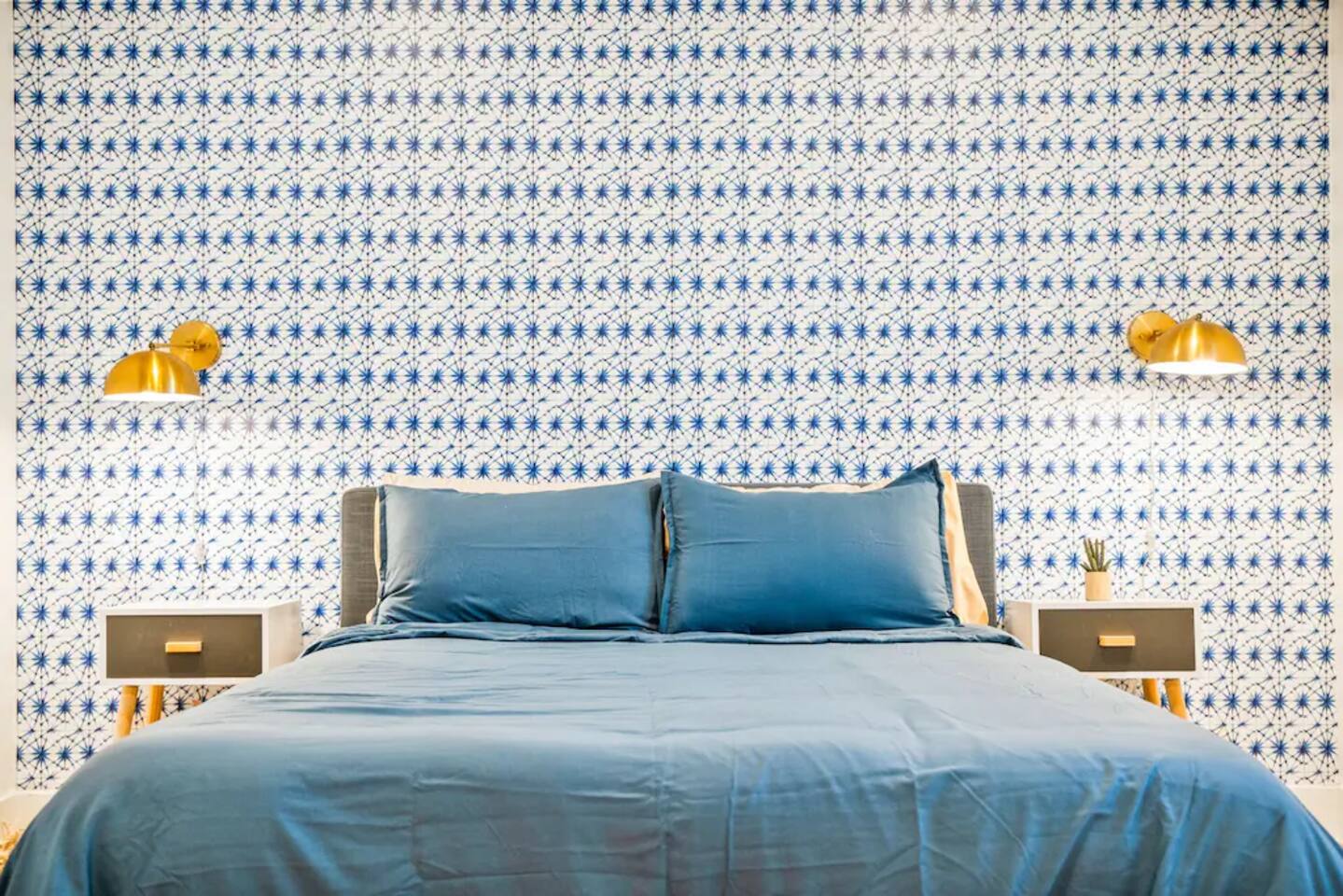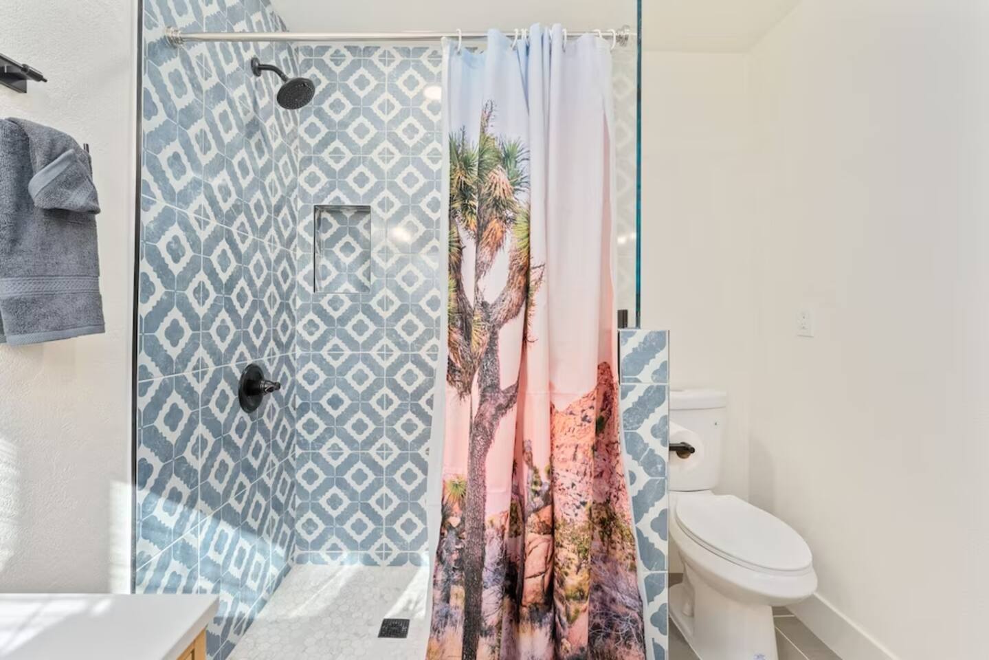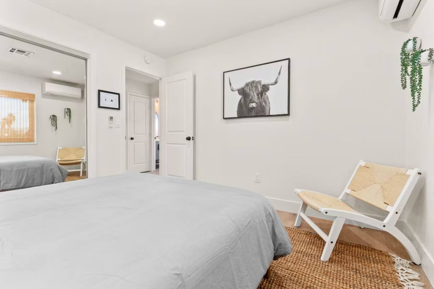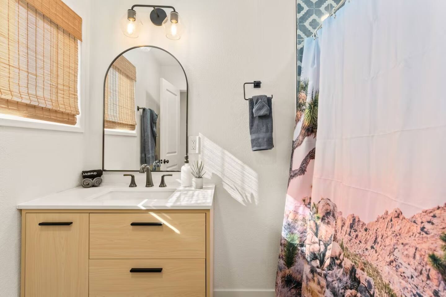 The space KEY FEATURES: ☀ 3 beautifully decorated bedrooms; 3 Queen-sized beds ☀ 2 full bathroom ☀ Open floor kitchen, dining + lounge area ☀ Fully-equipped kitchen ☀ Stocked coffee bar with assorted K-cups, whole bean coffee and coffee grounds ☀ Salt, pepper, and cooking spray are provided ☀ Large smart TV ☀ Private backyard w/ cowboy pool, hot tub, fire pit + pergola w/ hanging hammock chairs ☀ Air conditioning + central heating ☀ Dedicated workspace + wifi ☀ External security cameras covering the front door ☀ On site laundry ☀ Free parking on-site ☀ Single-level home w/ stairless access ☆☆ BEDROOMS ☆☆ This perfect desert home provides you with three beautiful bedrooms to rest your head for the night. All bedrooms are stylishly furnished with queen-sized beds and topped with extra-comfortable Zinus memory foam mattresses. Our guests rave about our luxurious mattresses! All of the spacious bedrooms are light, airy spaces and offer plenty of storage space for your clothing and personal belongings. The thoughtful touches and beautiful decor make them the perfect spot to kick back and relax after a long day seeing the sights of the desert ☆☆ BATHROOMS ☆☆ Make use of the good-sized bathrooms, complete with gorgeous tiled showers, and stylish vanity. This bright space is the perfect place for unwinding after an energetic hike through Joshua Tree National Park. ☆☆ KITCHEN & LOUNGE ☆☆ Our kitchen, dining area, and lounge are full of natural light, making it a relaxing space to gather in as a family or small group. We provide everything you need to make delicious meals, from new appliances to a dedicated coffee station. We know how important a good cup of Joe is, so our coffee station features an automatic coffee machine as well as a drip coffee kettle. Enjoy coffee your way! Bar stools are arranged around the kitchen island, making it a lovely spot for breakfast or just to chat with the chef. For formal and fun dinners, make use of the dining table. It’s set for six and overlooks the backyard, ideal for a relaxing meal. The whole space is completed with the spacious living room. Here you’ll be able to enjoy evenings in front of the smart TV, curling up with a good book, or enjoying the company of family and friends ☆☆ OUTSIDE SPACE ☆☆ Our favorite feature of our peaceful desert oasis house is the fully-fenced backyard. We’ve lovingly created a private, relaxing space for you to enjoy. Why not take advantage of our hot tub? You’ll find a heated jacuzzi, which will help you soak away any tiredness you might have from your adventures of the day. For the ultimate desert experience, turn on the pretty string lights, light up the fire pit and make some s’mores as the evening draws in. Stargazing is a must when you’re in the desert, and you can do so at the pergola, where you’ll be able to sway under the stars in a cozy hammock. ★☆ Book Today & Let Us Take Care Of You In Joshua Tree! ☆★