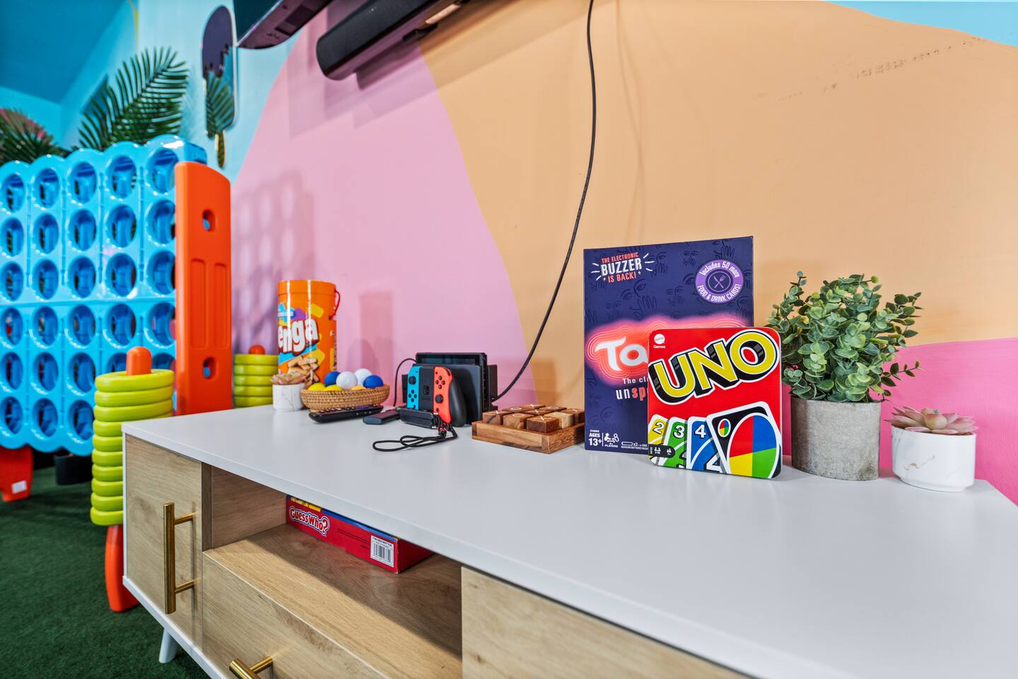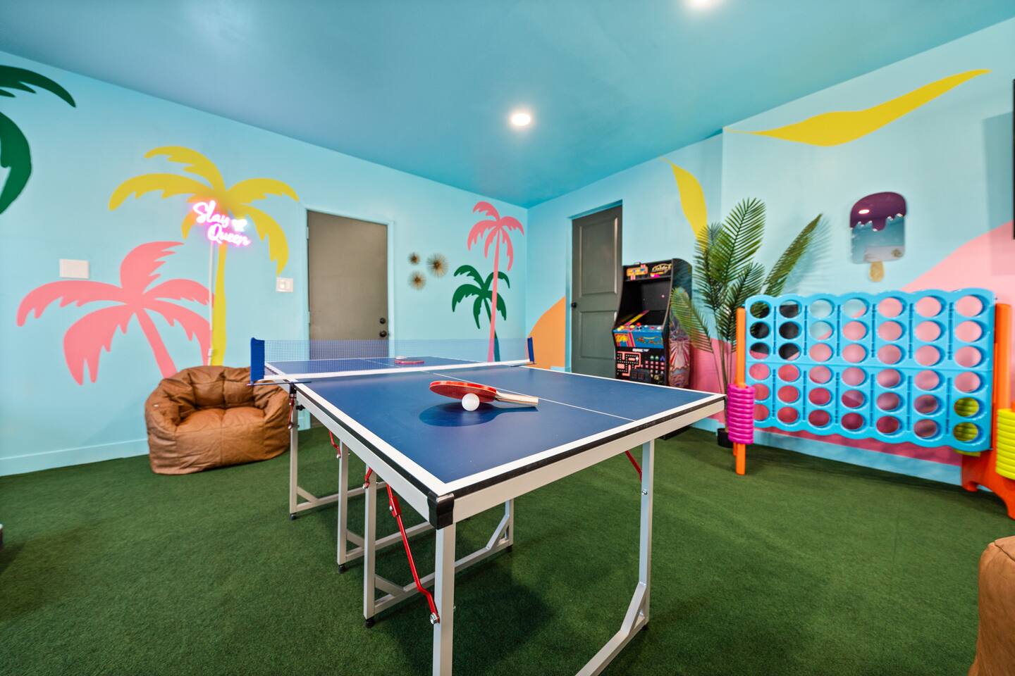 ☆You must be 25+ to book ☆The person that made the reservation needs to be present at the property for the duration of the reservation ☆No parties are allowed. Evidence of a party will result of the immediate cancellation of your reservation ☆No smoking is allowed in the interior of the property. Smoking is allowed outside of the property ☆Guests will need to bring all personal toiletries including tooth paste, tooth brush ☆Tampering with exterior cameras and/or interior noise monitoring systems are prohibited and will have a penalty fee if tampered with. ☆Failure to abide by house rules will result in additional fees being applied ☆Game Room is located inside the garage, which doesn't have AC so it may be hot during summer...BUT you can open the garage door to keep cool and have fun! ☆ We have regularly scheduled hot tub tech service on select days each week. While we don’t have exact times in advance, we always send out a notification the night before to let guests know when to expect service. Thank you for your understanding as we work to keep the hot tub in top condition! ☆PETS☆ We love hosting pets (SORRY, NO CATS ALLOWED)! We happily welcome up to two dogs (up to 50 lbs) at our home with an added pet fee of $100. If you're planning to bring your furry friends along, please don't hesitate to send me a message! Just a few other notes! You are expected to clean up after your pet, in the house, and in the yard. We have a small dog bed at the house available for you but also ask that you provide your OWN blanket for them to lay on if your pet prefers that. Dogs are NOT allowed on our furniture/beds/couch/blankets/sheets and an additional cleaning fee will be charged if dog hair is found on these items at check out. If you book and bring more than two dogs, you’ll be subject to additional fees. Being that we are in the desert there also may be cactus plants in the yard, so if your dog is extra curious, keep an eye on them so they don’t get pricks in their paws or nose!