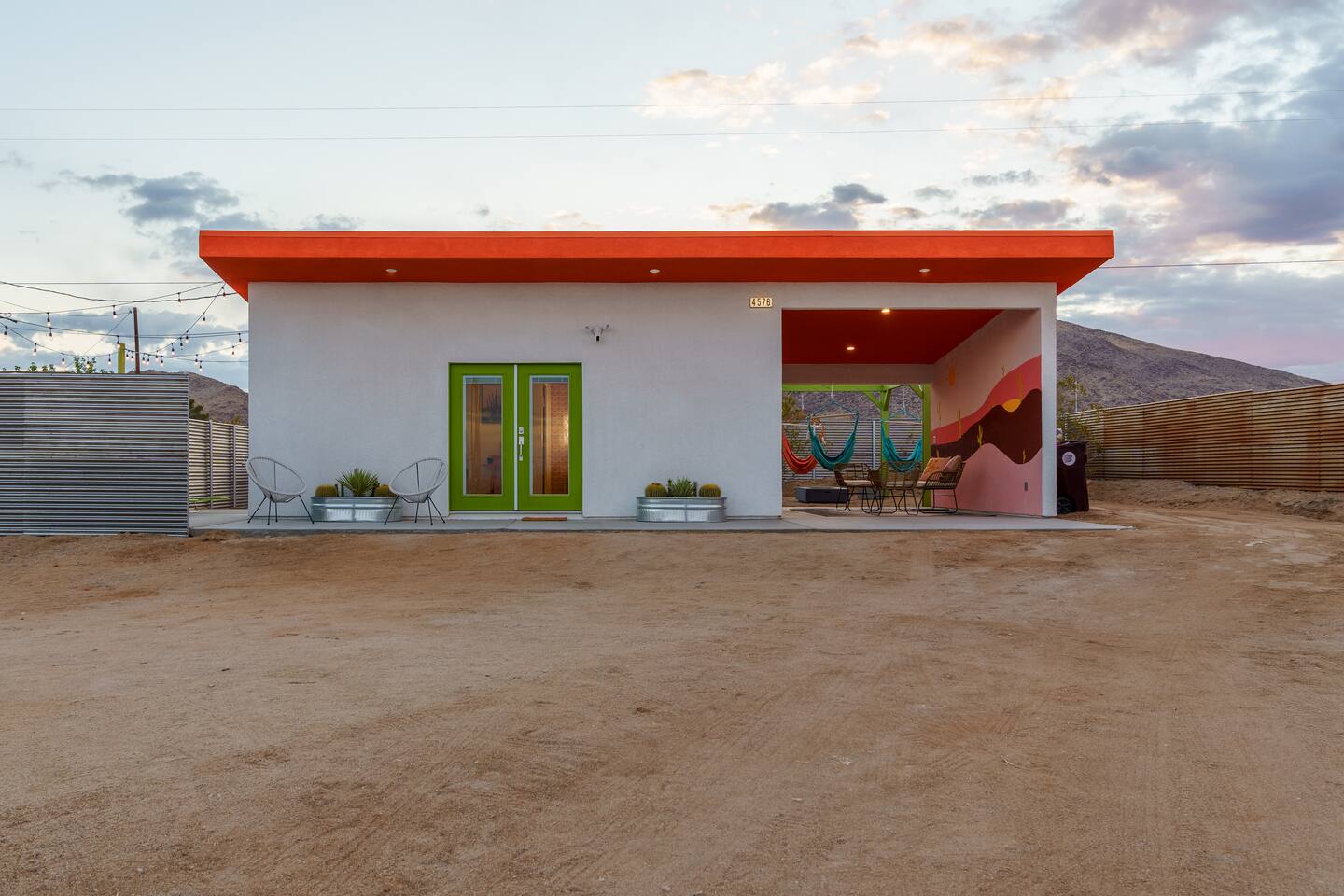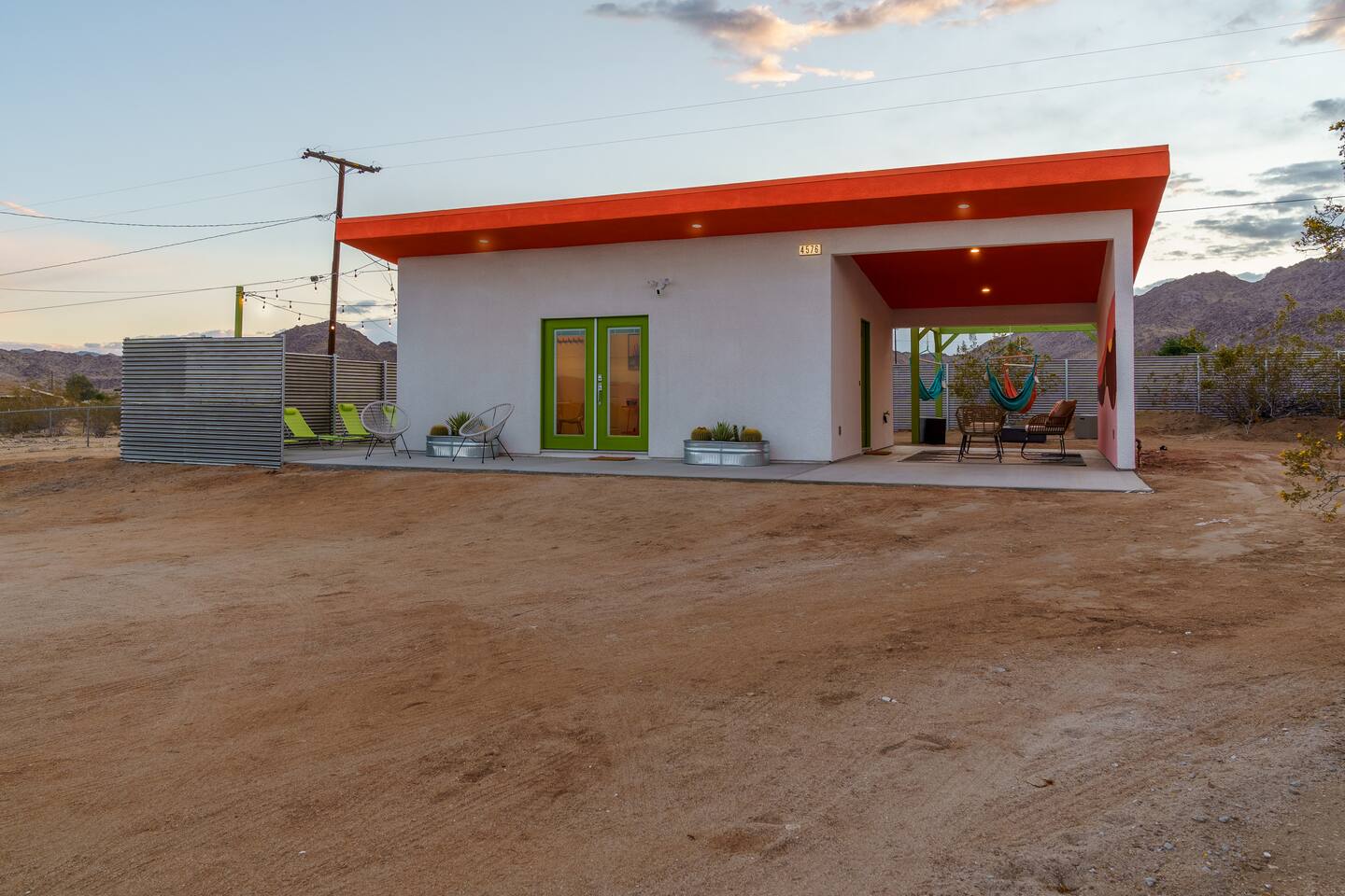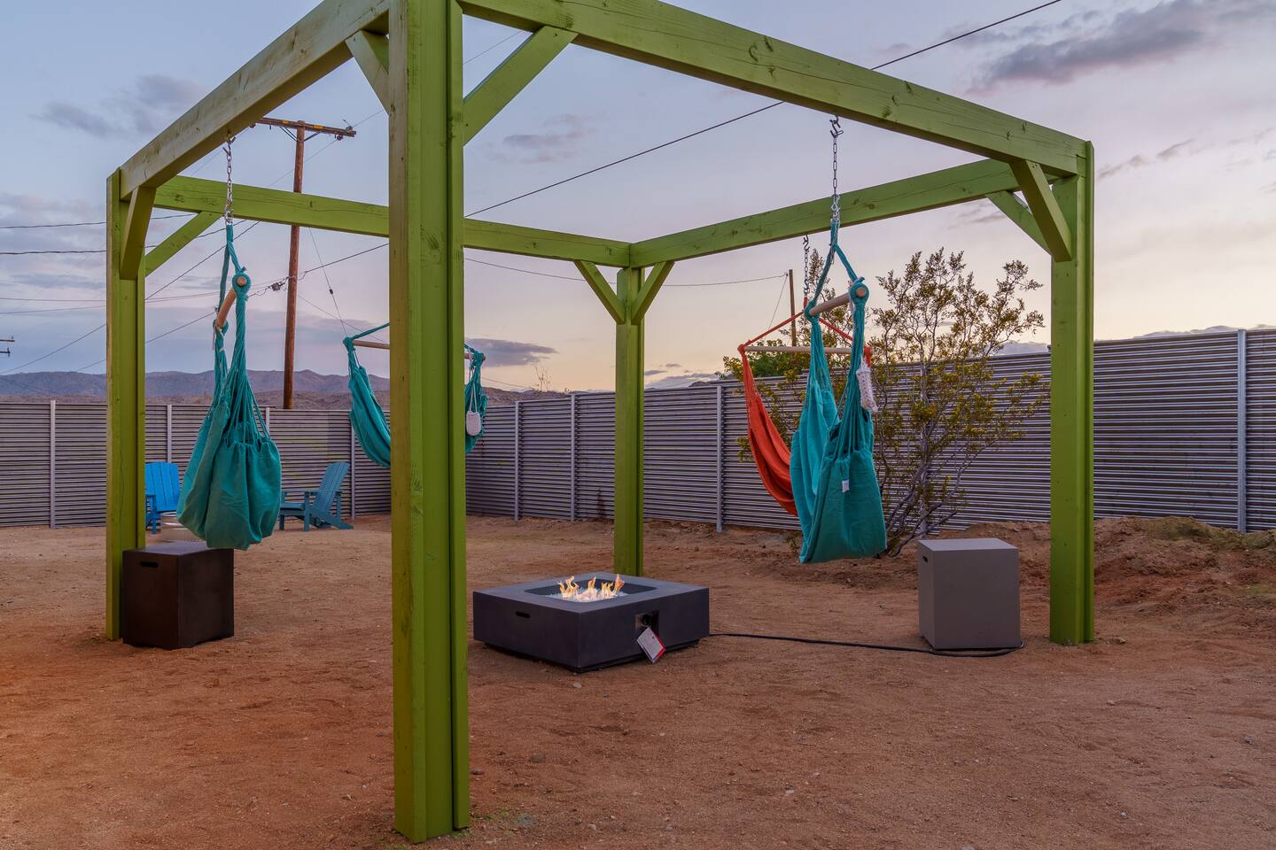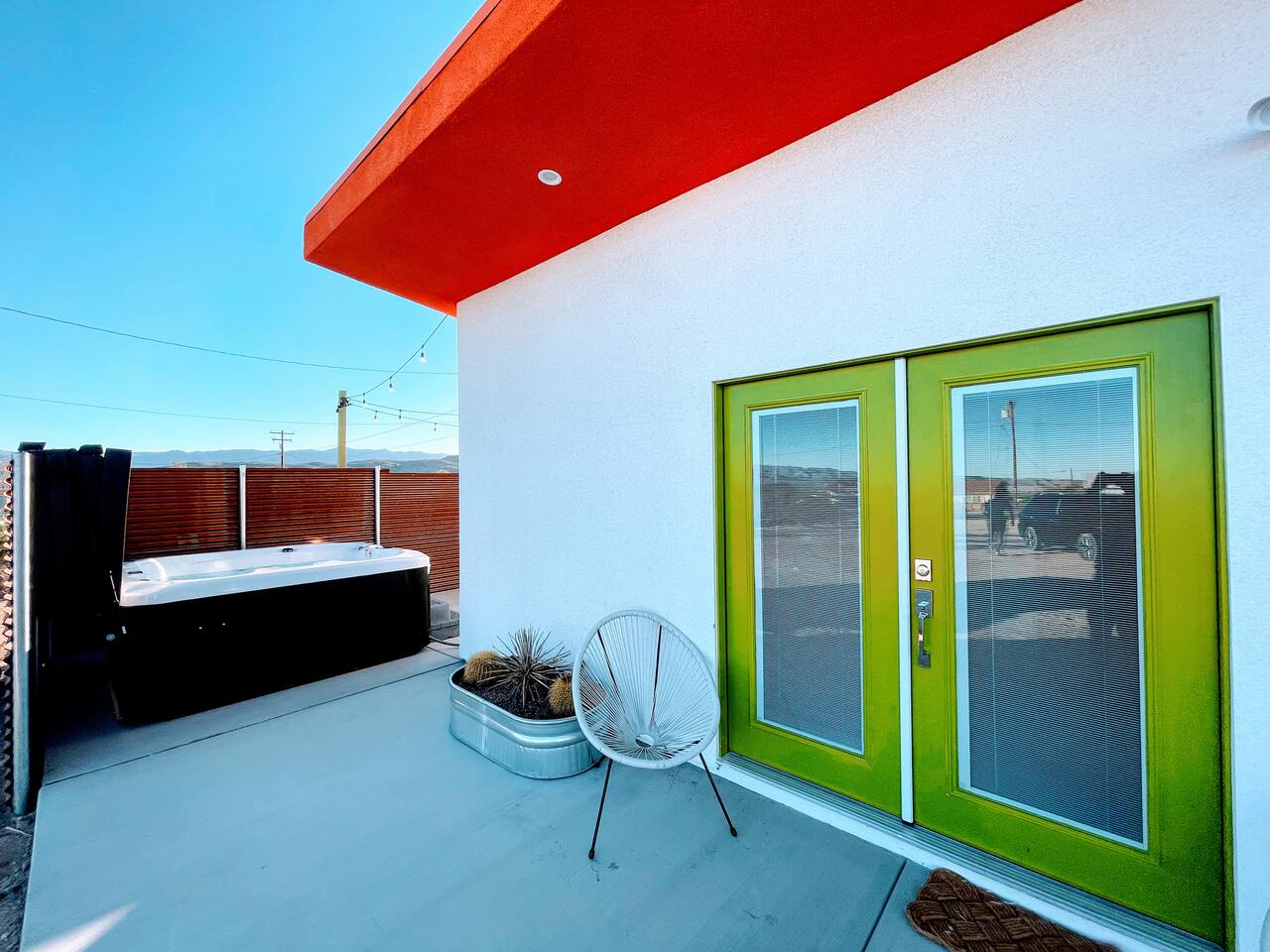 Leave the everyday behind and unwind beneath the desert stars in our spacious, design-forward tiny home. Perfect for couples or small groups, this peaceful retreat features a private hot tub, crackling fire pit, and a dreamy pergola with hanging hammock chairs—ideal for stargazing, storytelling, and slow evenings under the sky. 15 Mins Drive to the West Entrance to Joshua Tree National Park 5 Mins drive to downtown JT 12 Mins drive to Walmart Relax, Enjoy and Explore Joshua Tree!