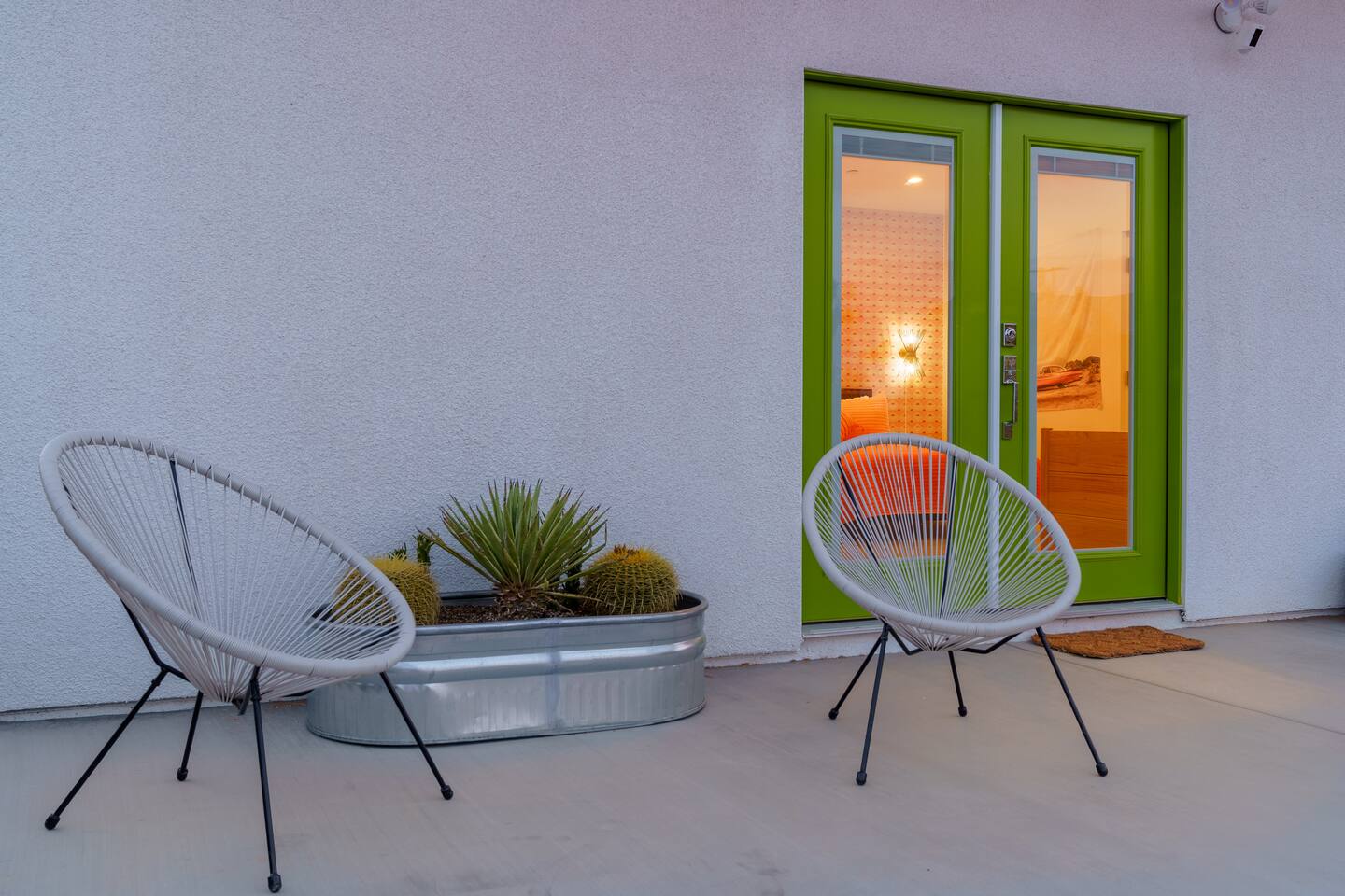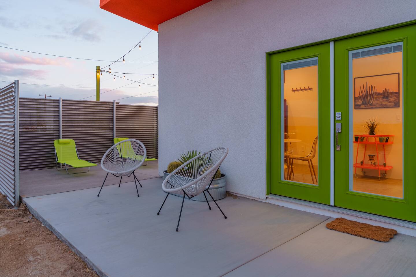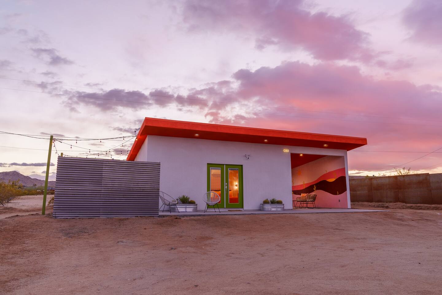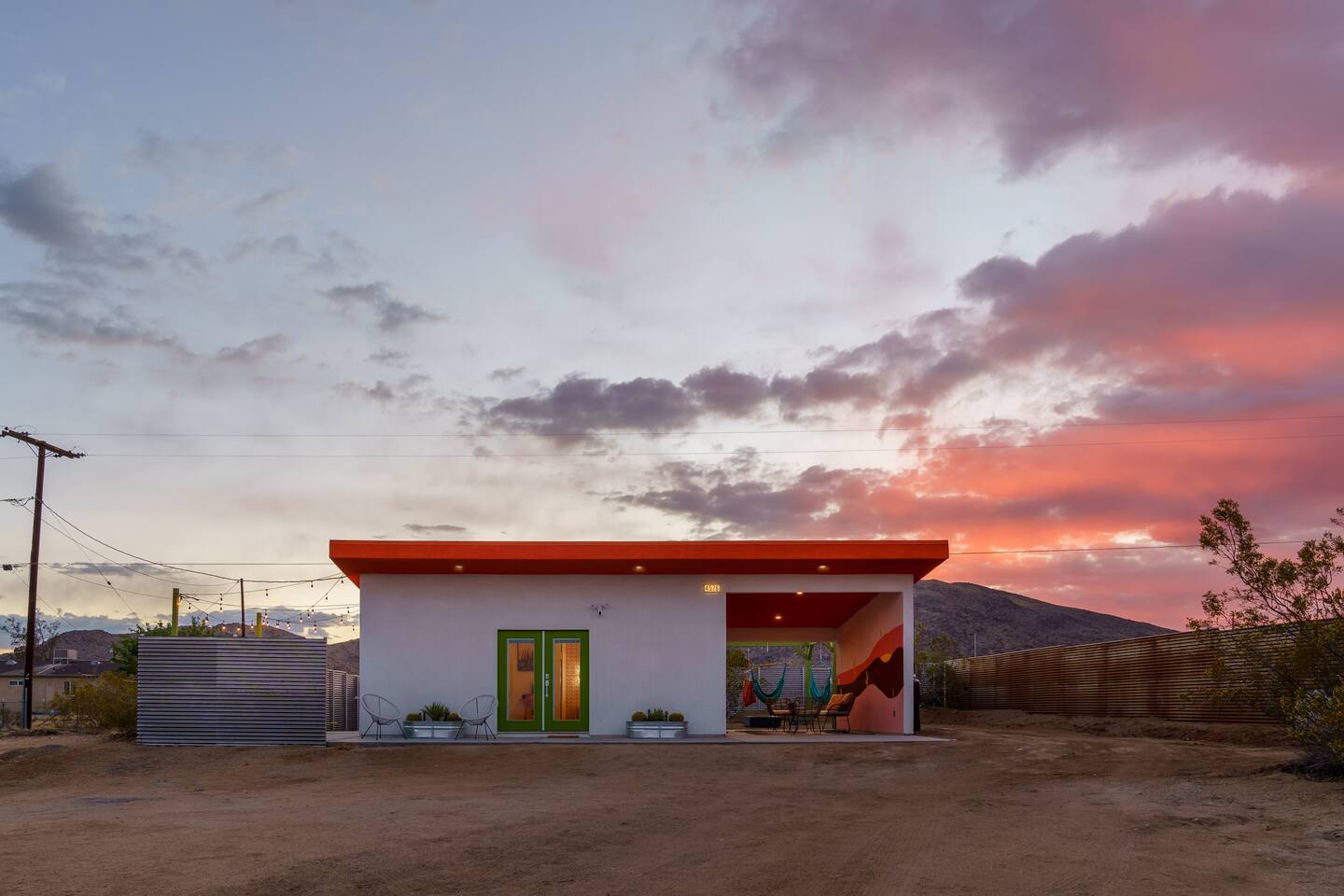 Leave the everyday behind and unwind beneath the desert stars in our spacious, design-forward tiny home. Perfect for couples or small groups, this peaceful retreat features a private hot tub, crackling fire pit, and a dreamy pergola with hanging hammock chairs—ideal for stargazing, storytelling, and slow evenings under the sky. 15 Mins Drive to the West Entrance to Joshua Tree National Park 5 Mins drive to downtown JT 12 Mins drive to Walmart Relax, Enjoy and Explore Joshua Tree!