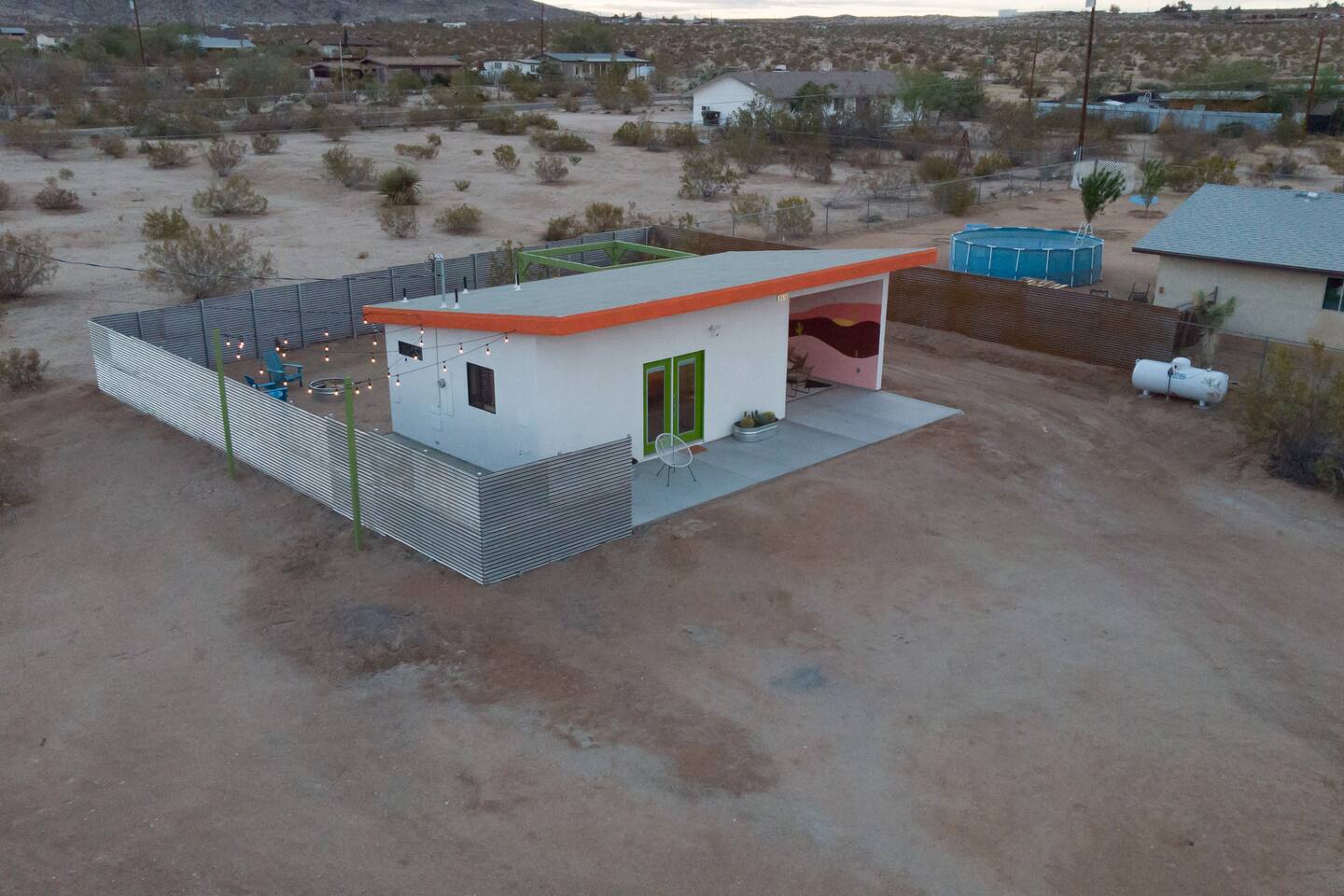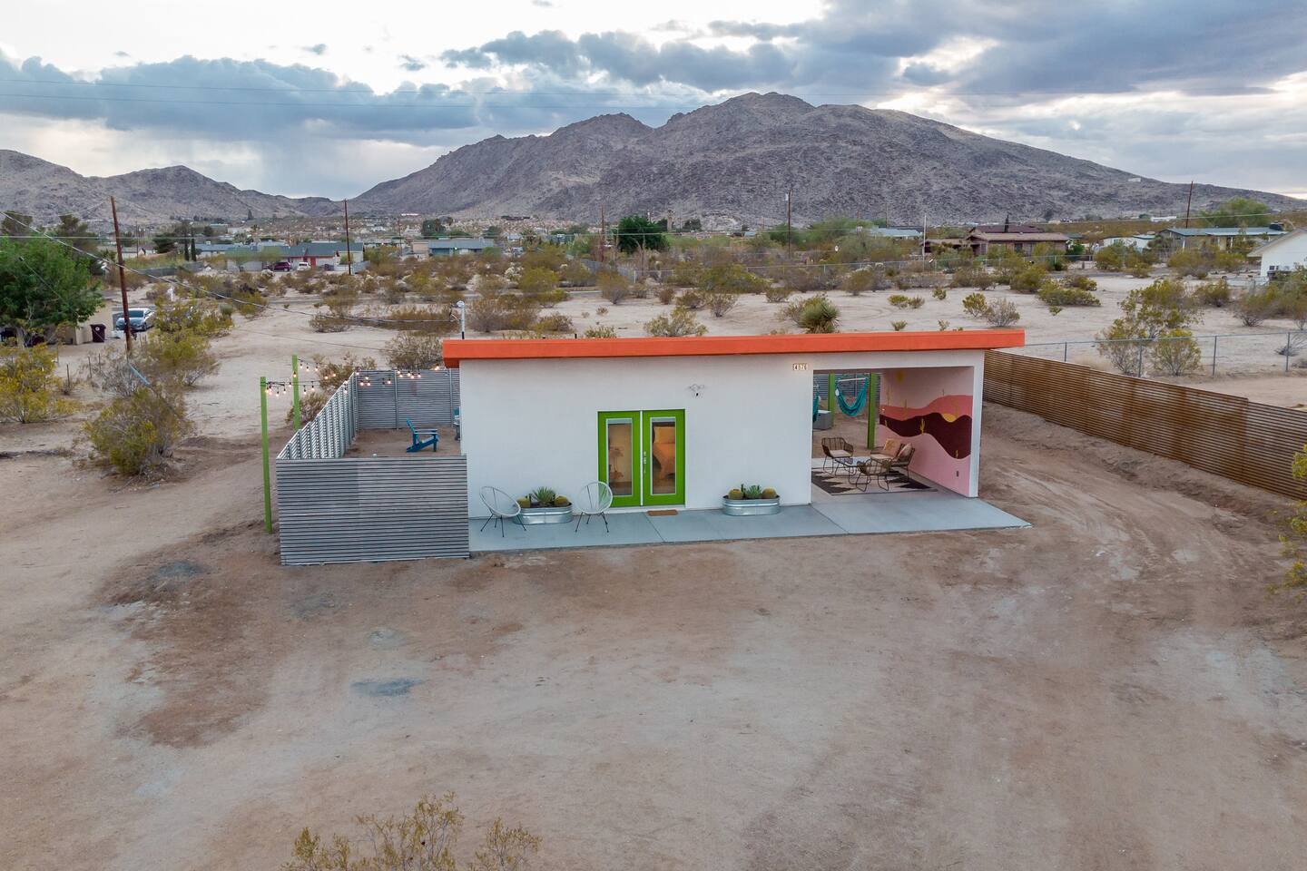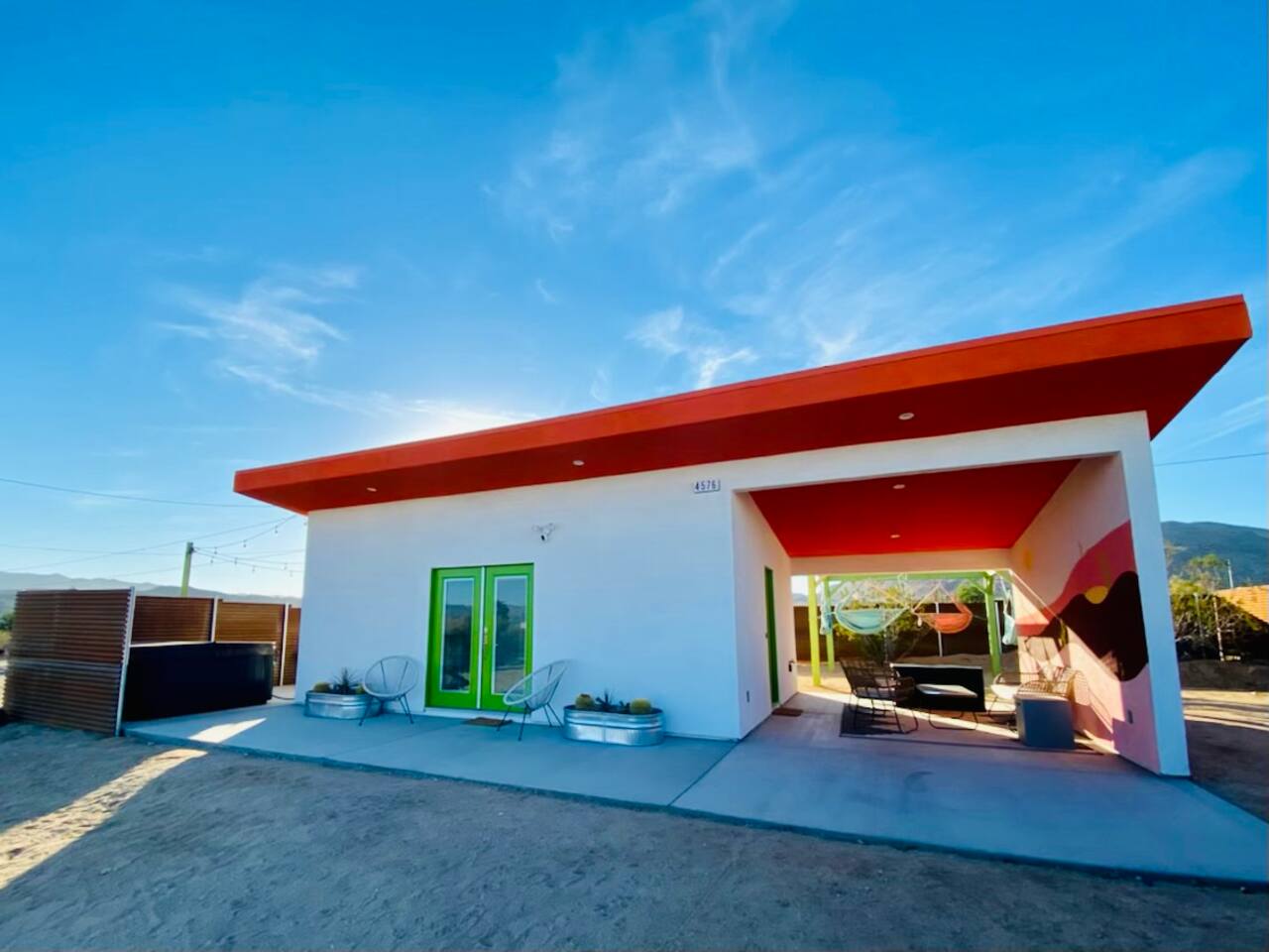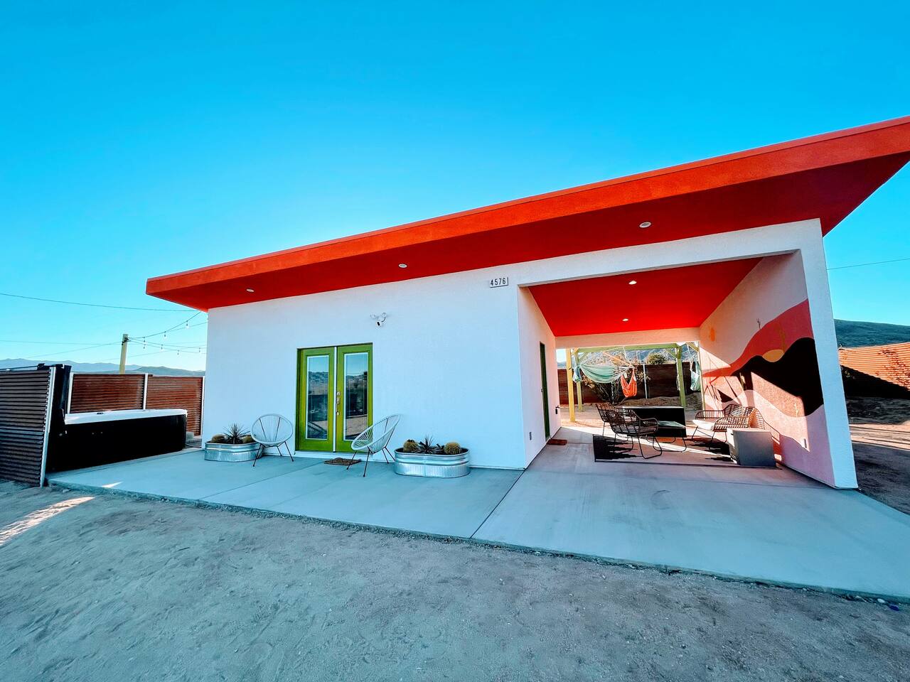 Pros - Private Hot tub - Short drive to downtown Joshua Tree - 100% paved roads to get to the property - 4 minute drive to Dollar General - 10 minute drive to Walmart Supercenter - Beautiful views of the surrounding mountain ranges - Large lot to enjoy Cons - Still in a residential area, so guests must keep noise down after hours - Our neighbors have dogs, so it's not uncommon to hear them barking