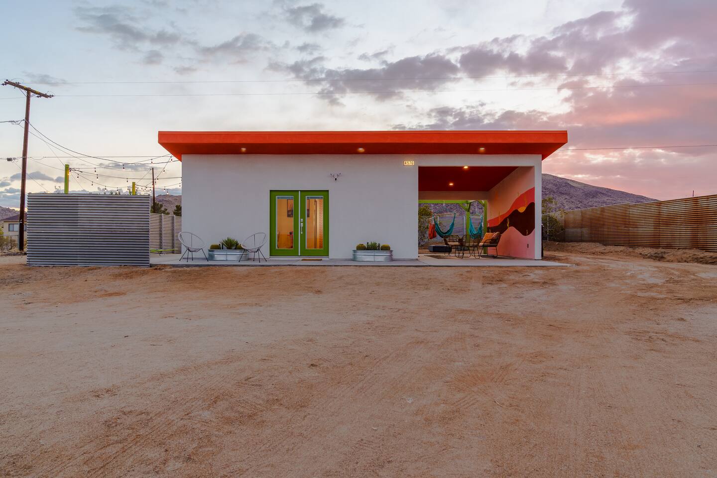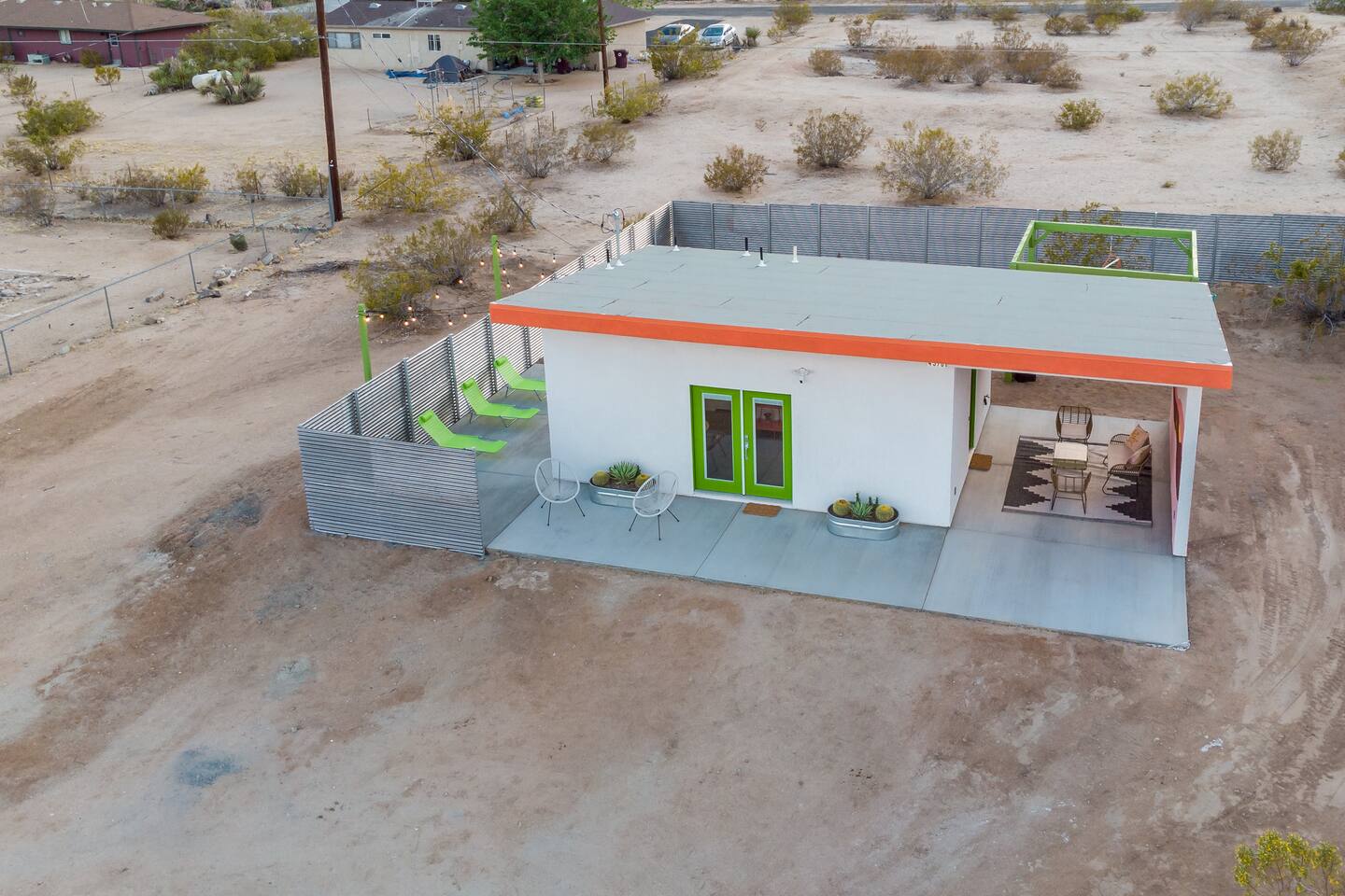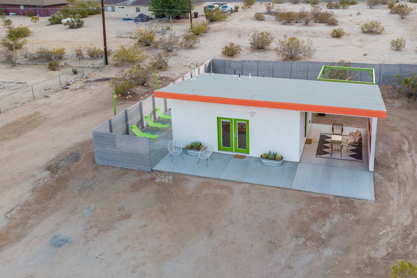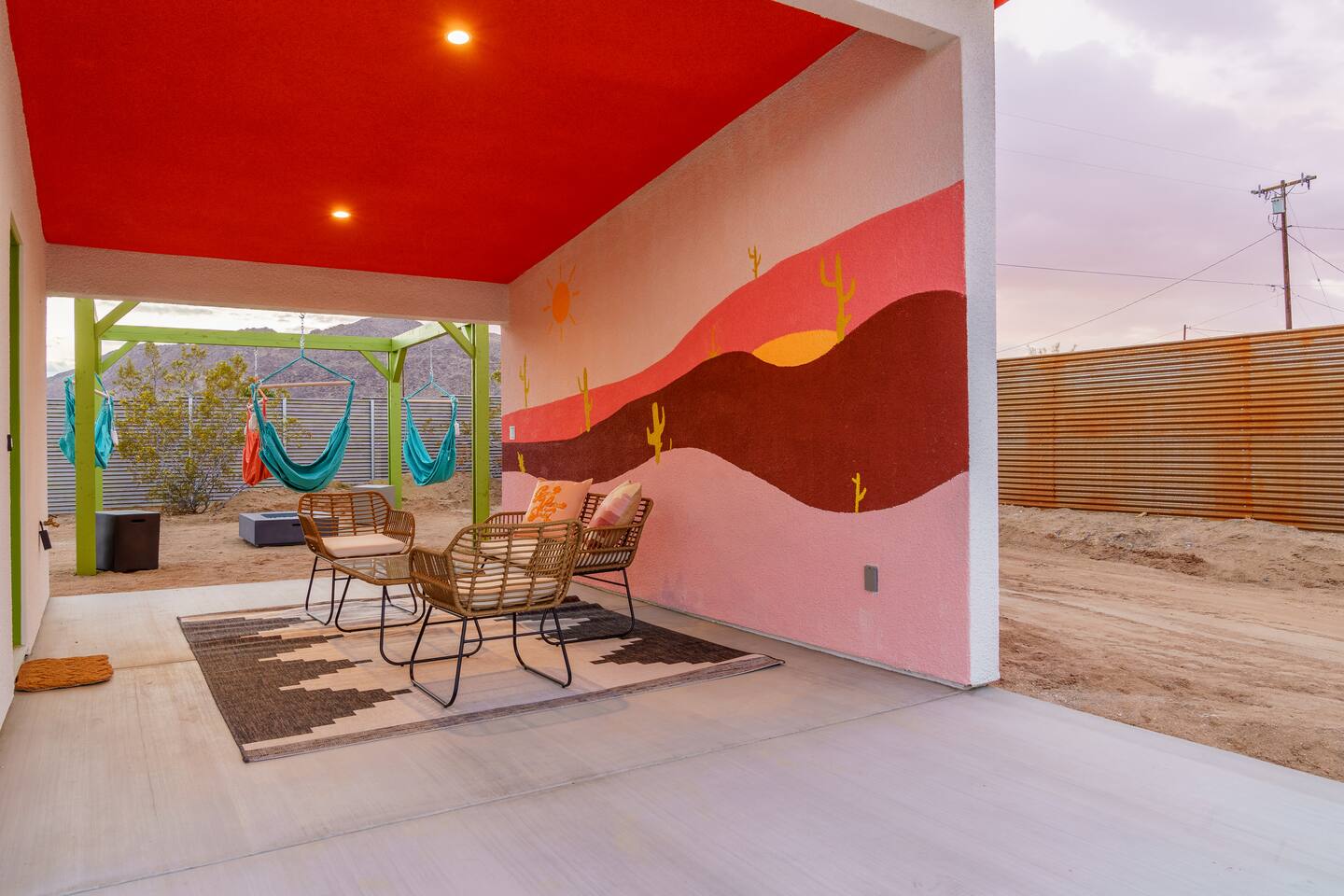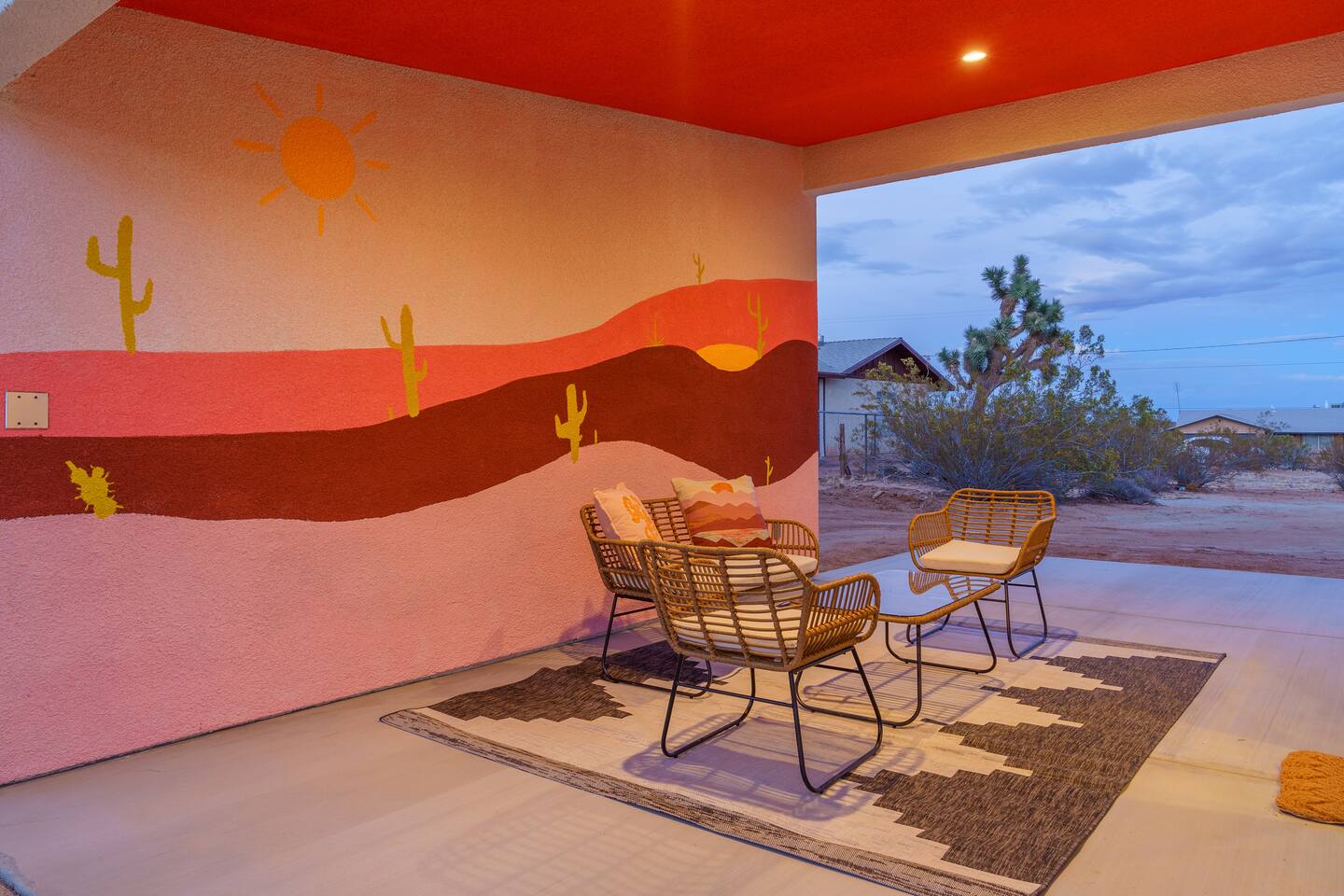 Pros - Private Hot tub - Short drive to downtown Joshua Tree - 100% paved roads to get to the property - 4 minute drive to Dollar General - 10 minute drive to Walmart Supercenter - Beautiful views of the surrounding mountain ranges - Large lot to enjoy Cons - Still in a residential area, so guests must keep noise down after hours - Our neighbors have dogs, so it's not uncommon to hear them barking