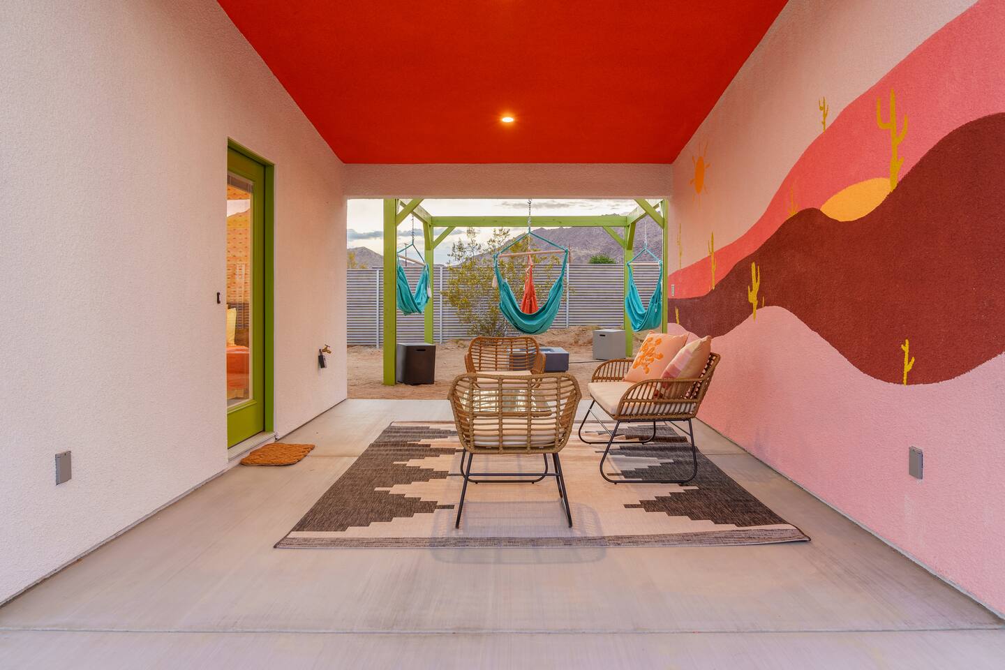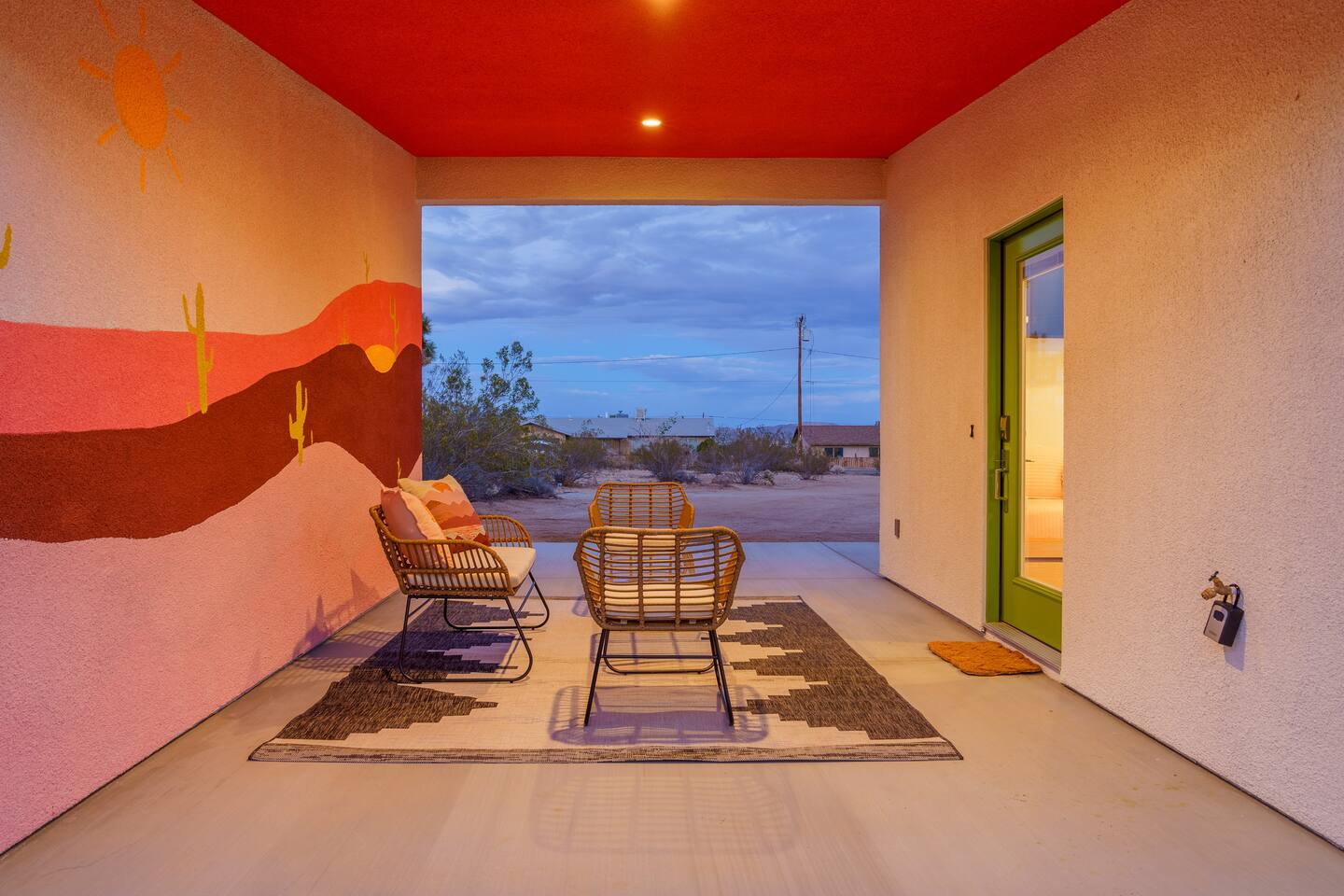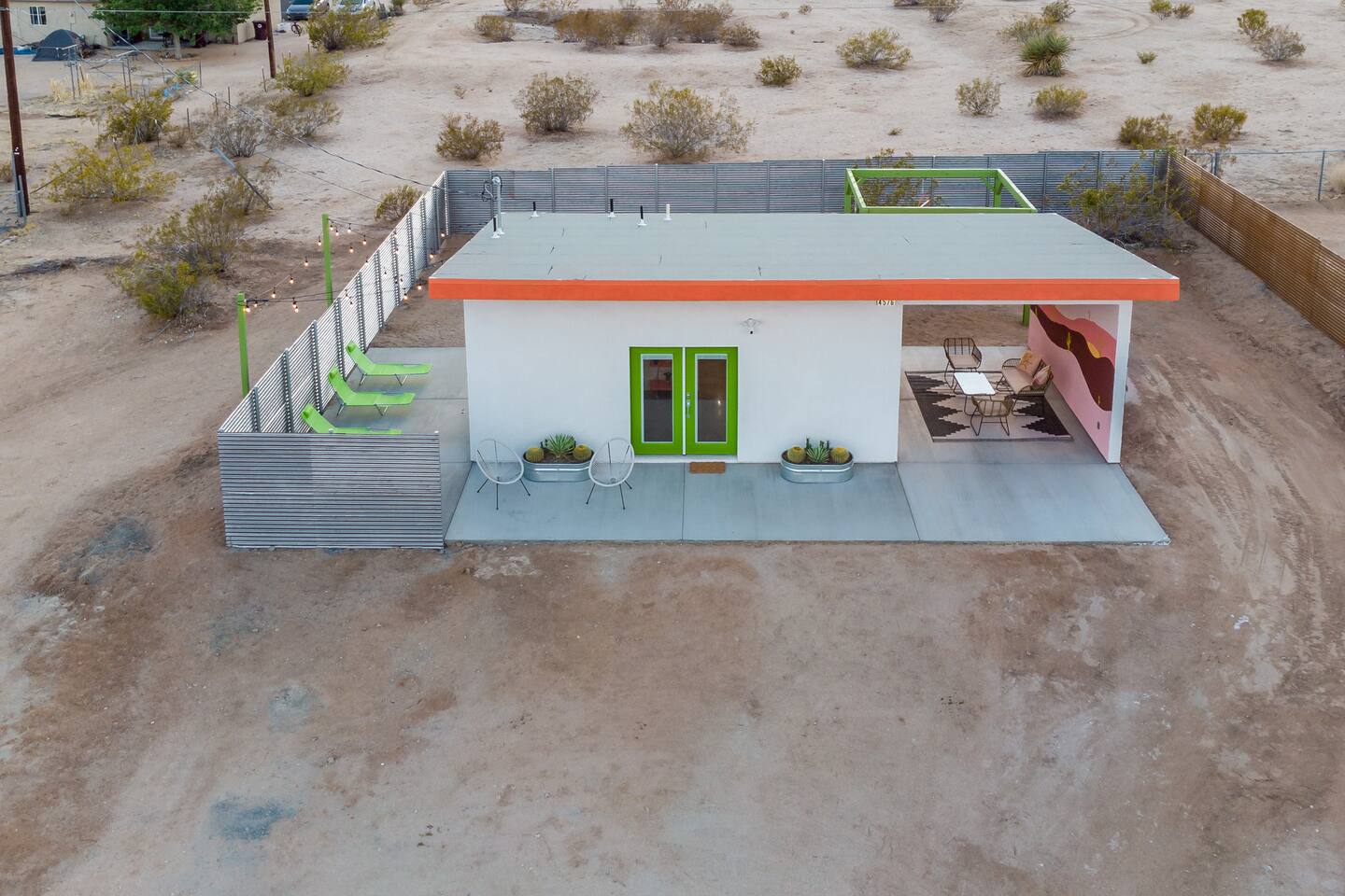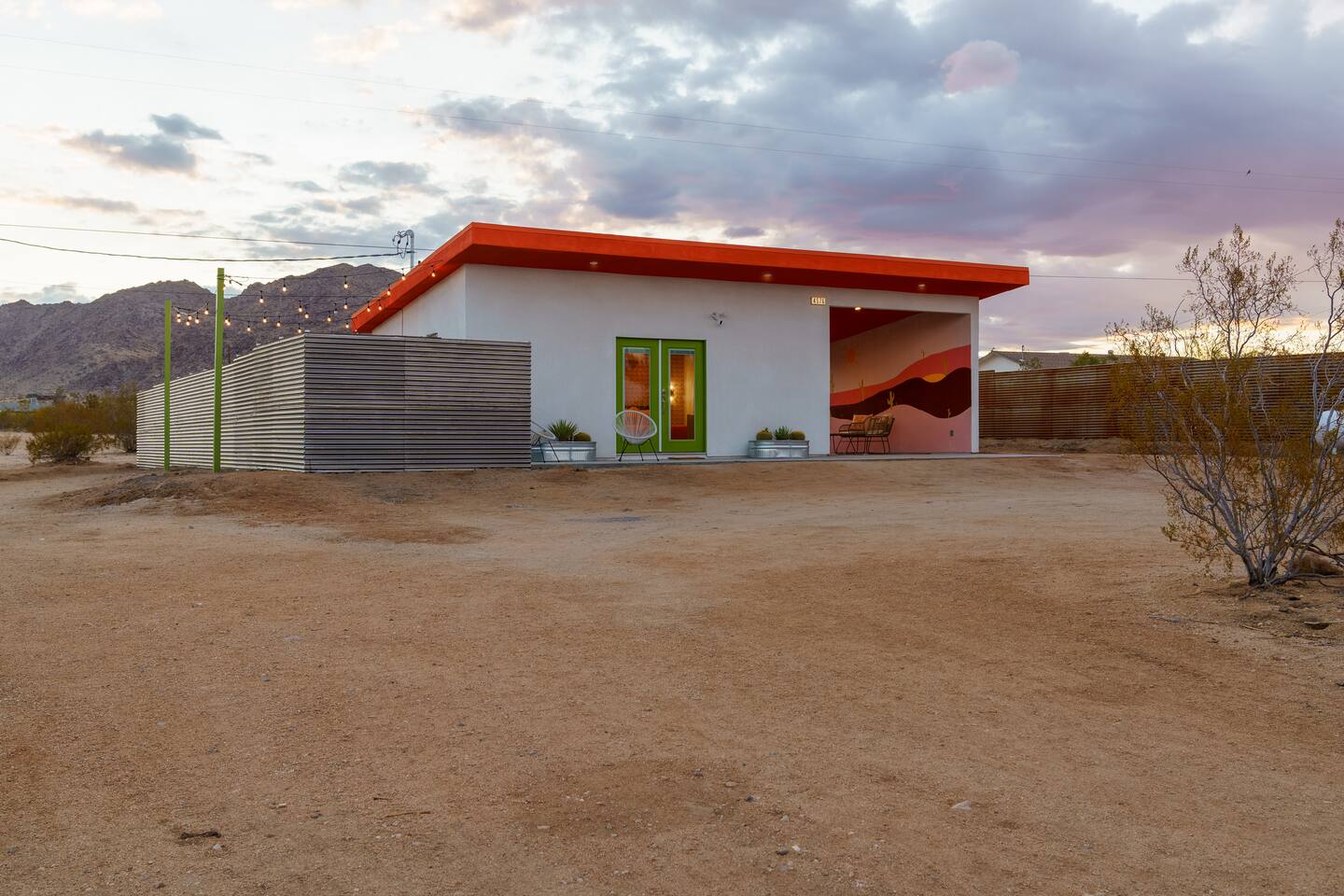 Pros - Private Hot tub - Short drive to downtown Joshua Tree - 100% paved roads to get to the property - 4 minute drive to Dollar General - 10 minute drive to Walmart Supercenter - Beautiful views of the surrounding mountain ranges - Large lot to enjoy Cons - Still in a residential area, so guests must keep noise down after hours - Our neighbors have dogs, so it's not uncommon to hear them barking