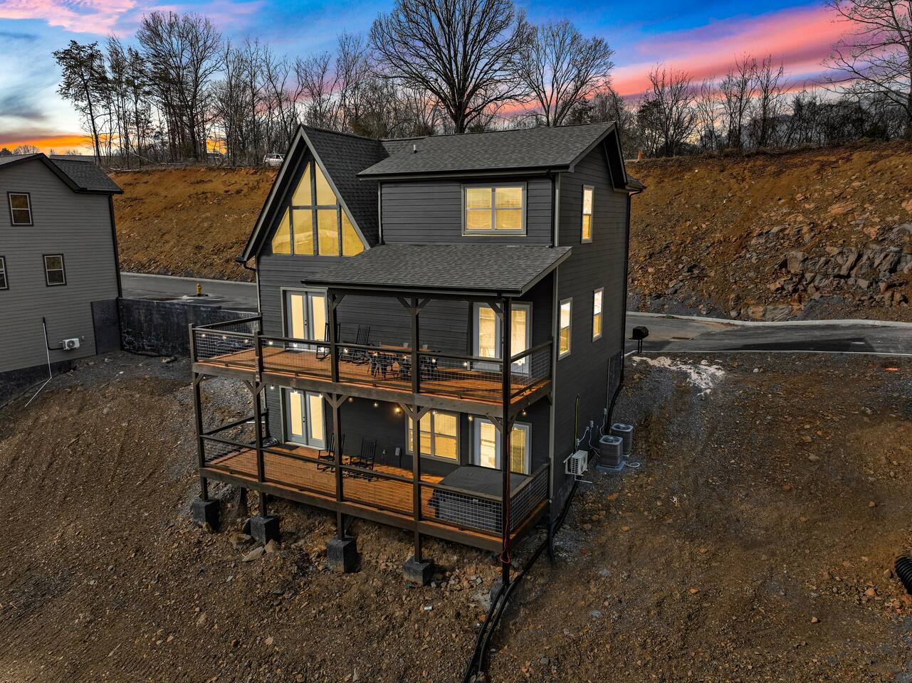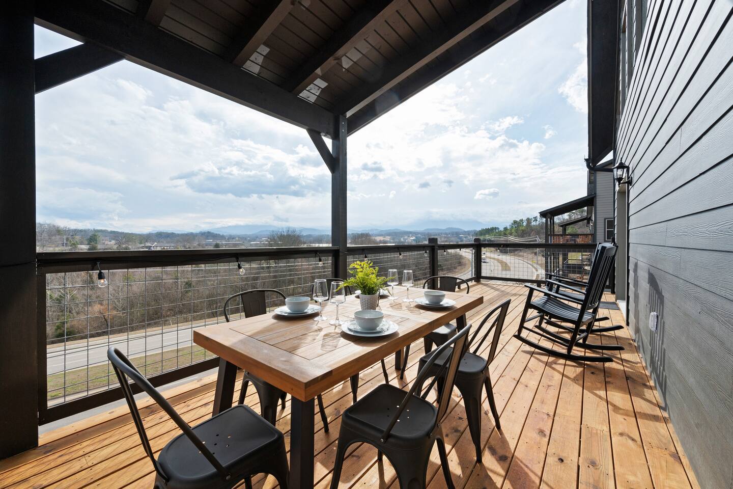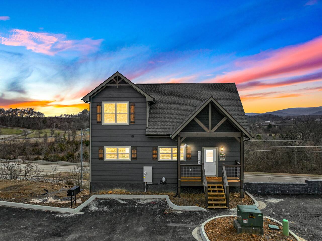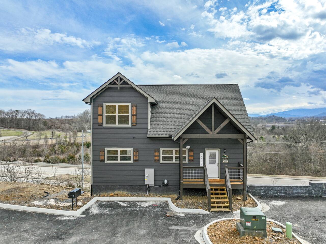 The cabin sits a top a ridge in a community with other short term rental cabins. We only have neighbors to the left and right. There is a road below the cabin, so you may hear some occasional noise from traffic below.