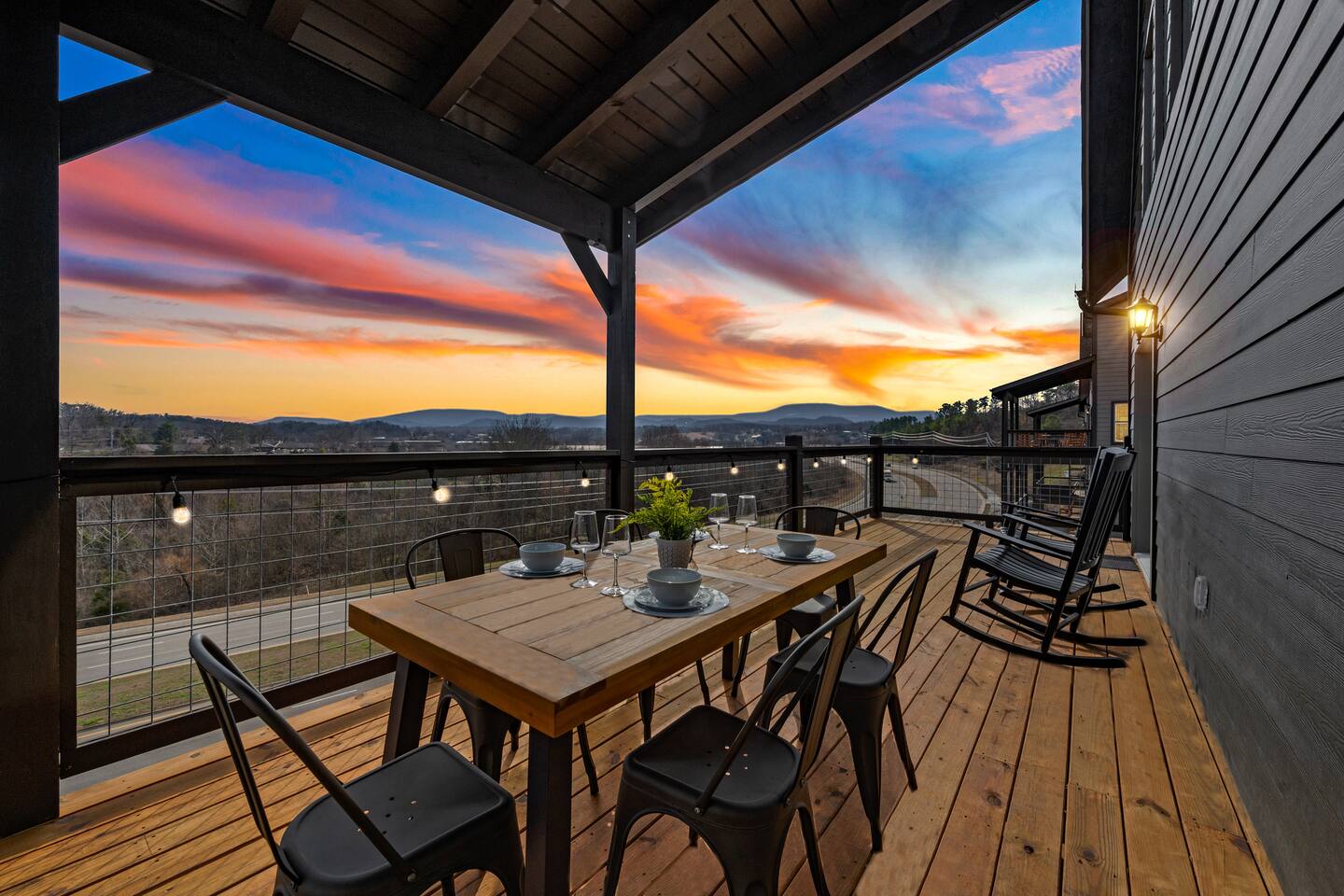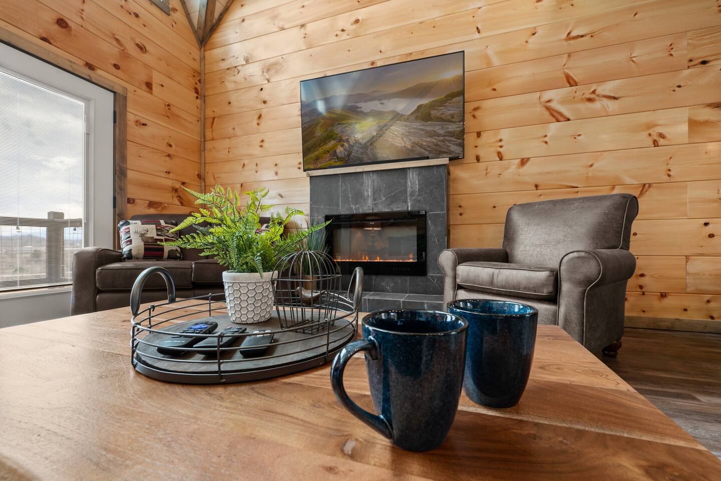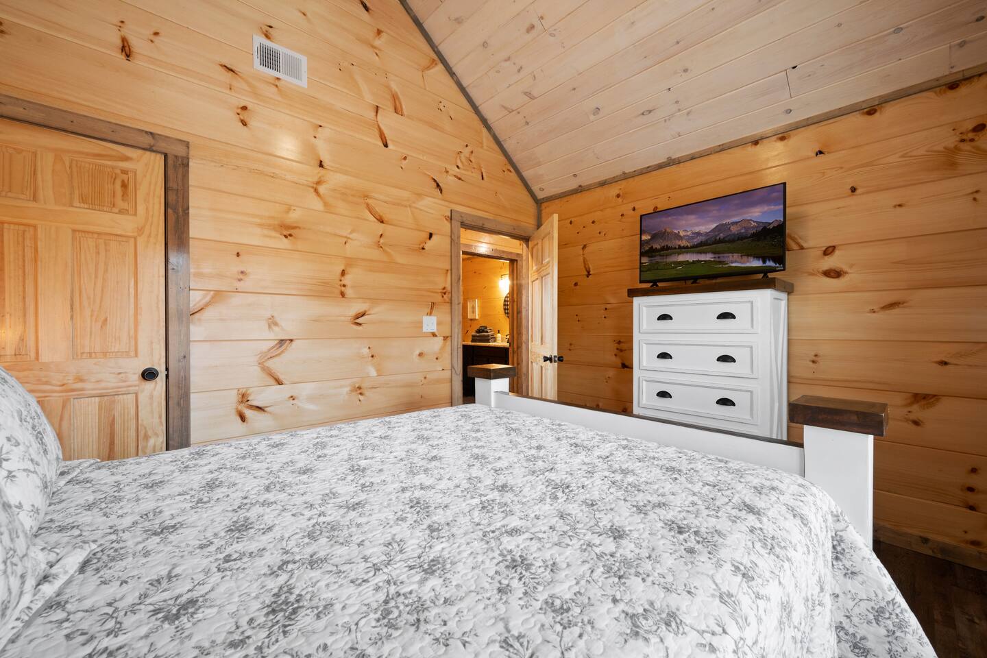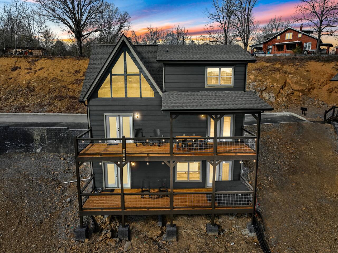 The cabin sits a top a ridge in a community with other short term rental cabins. We only have neighbors to the left and right. There is a road below the cabin, so you may hear some occasional noise from traffic below.