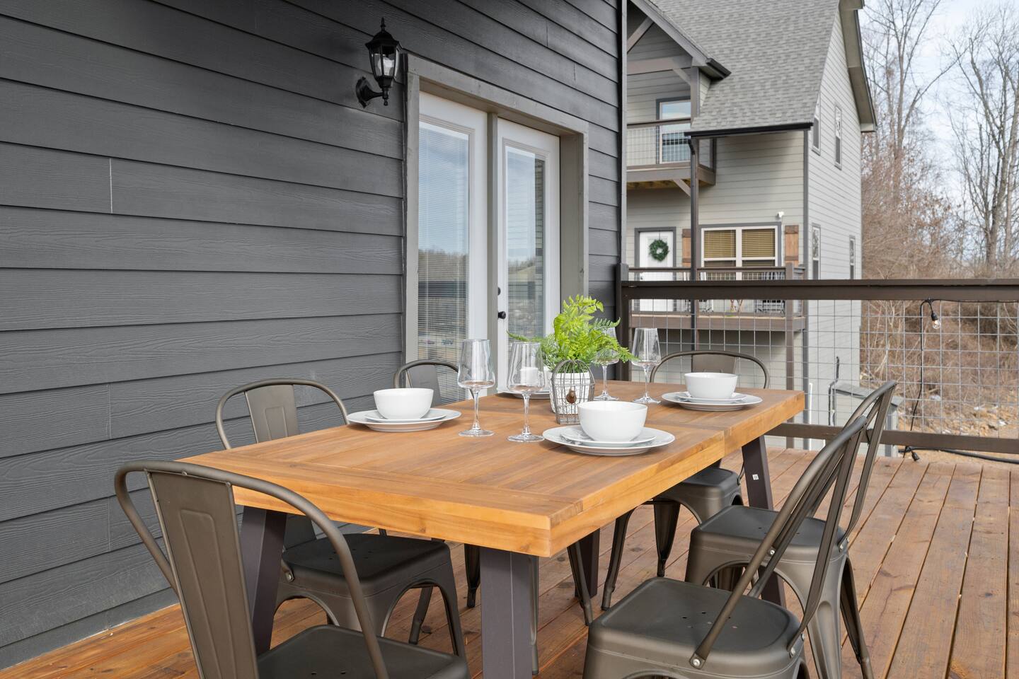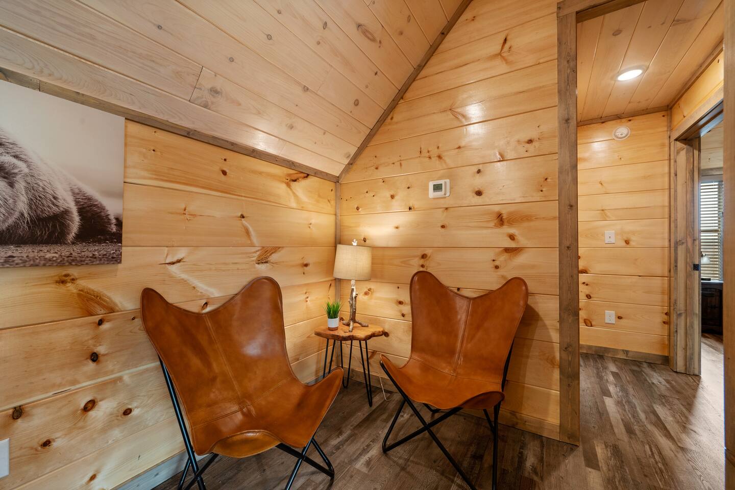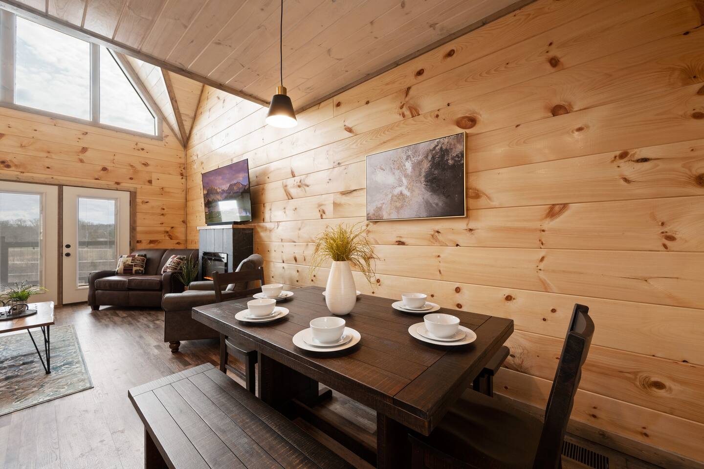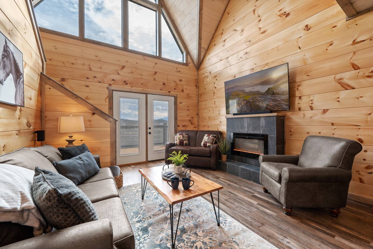 The cabin sits a top a ridge in a community with other short term rental cabins. We only have neighbors to the left and right. There is a road below the cabin, so you may hear some occasional noise from traffic below.