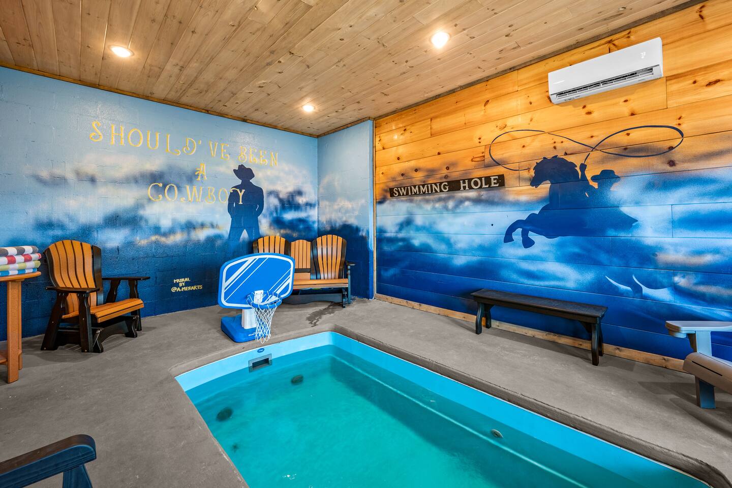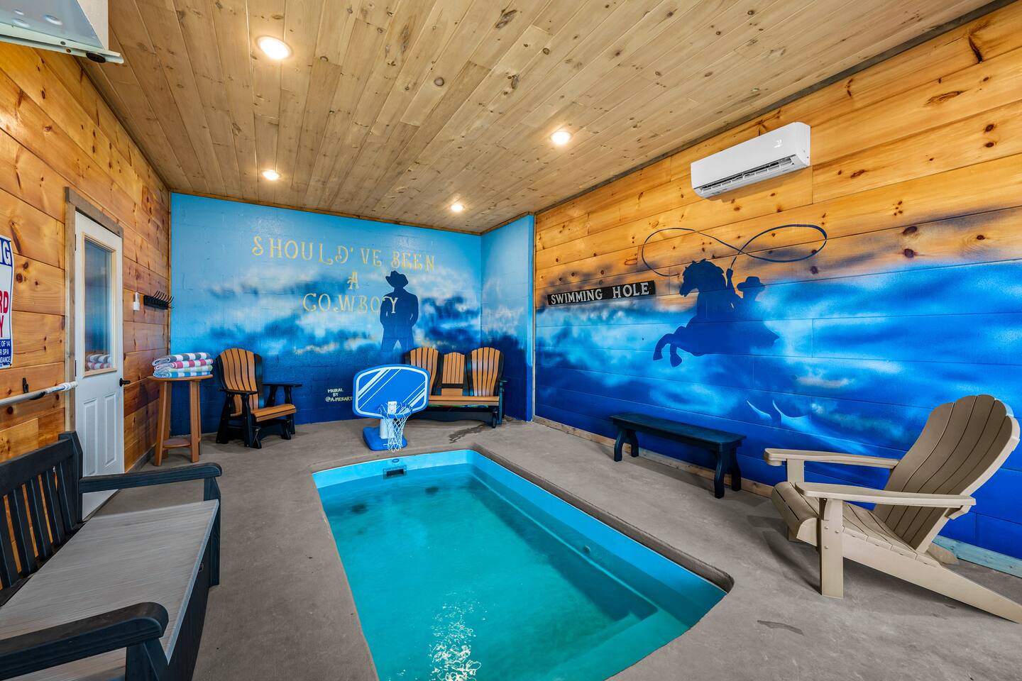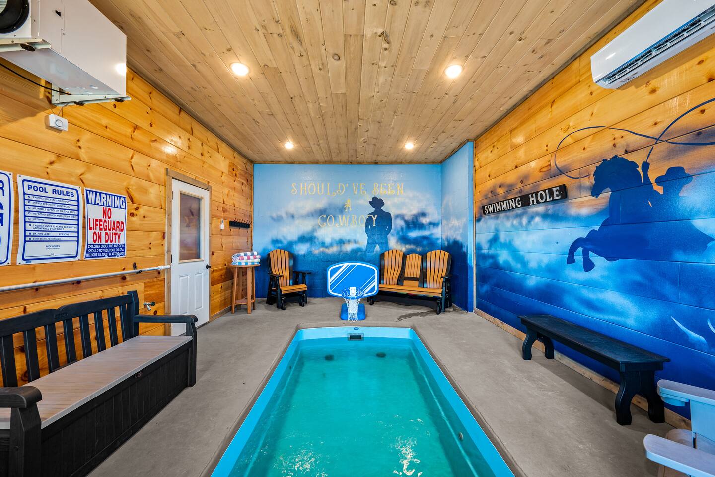 Comfort, charm, & convenience for multiple families traveling together to the Smoky Mountains. This brand new luxury, spacious 3 level cabin, features a heated indoor pool, hot tub and arcade games, and gourmet kitchen. It sits atop a ridge providing a spectacular scene to relax and enjoy the company of family and friends. Enjoy the views and the comfort of our heated indoor pool. Dollywood 7 Minutes Walmart 7 Min Skyland ranch 7 min Adventure Park Zipline 7 min Pigeon forge Parkway 8 min