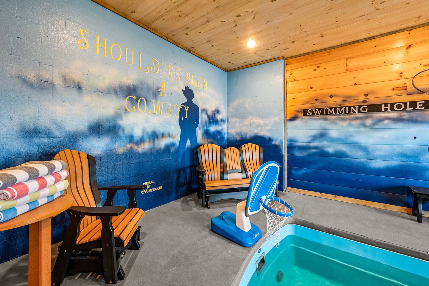 KEY FEATURES: ☀ 4 spacious bedrooms; 1 queen-size bed, 2 full-size bed, and 2 twin bunk bed ☀ 4.5 Bathrooms; 3 full bathrooms with showers and 1 half bath ☀ Well-stocked kitchen and dining area that seats 6 guests ☀ Stocked coffee bar with assorted K-cups, whole bean coffee and coffee grounds ☀ Salt, pepper, and cooking spray are provided ☀ Warm and inviting lounge with a gas fireplace (Available Nov-March) and large TV ☀ Indoor heated pool ☀ Basement game room with flat screen TV and arcade games ☀ A convenient laundry with both a washer and dryer ☀ Gorgeous deck overlooking Sevierville & Pigeon Forge ☀ High-speed WiFi throughout the cabin ☀ Free Tesla Charger ☆☆ BEDROOMS ☆☆ This three-level cabin offers four spacious bedrooms, with plenty of room for everyone to spread out. MAIN FLOOR: The bedroom on the main floor features a Queen size bed and has an ensuite bathroom. BASEMENT: The basement bedroom has 2 twin bunkbeds, perfect for the kids (or the kids at heart <3). TOP FLOOR: The top floor features an additional two bedrooms with 2 full size beds ☆☆ BATHROOMS ☆☆ Three full bathrooms are available in the cabin, one conveniently on each floor. MAIN FLOOR: There are two bathrooms on the main floor. The full bathroom is in the master suite and there is also a half bathroom. BASEMENT: The basement level features a full bathroom with a shower TOP FLOOR: The top floor features a full bathroom with a shower ☆☆ KITCHEN & LOUNGE ☆☆ The modern kitchen invites you to create delicious meals for family and friends. You’ll find a stove, oven, microwave, coffee maker, silverware, dishes, pots, and pans. Enjoy your meals together at the dining table with seating for 6 with additional seating at the kitchen counter. There is a stocked coffee bar with assorted K-cups, whole bean coffee and coffee grounds. Salt, pepper, and cooking spray are also provided! Gorgeous views surround this open-concept area thanks to the large windows providing breathtaking sights of Pigeon Forge and Sevierville. The living area is complete with comfortable seating options and a gas fireplace for colder evenings. It also features a large 55" TV paired with high-speed internet for your entertainment. ☆☆POOL ☆☆ Perhaps the most fun part of the cabin lies in the basement. An INDOOR HEATED POOL! Even when it is snowing outside, you can splash around in the indoor pool and it is sure to provide hours of fun for everyone in the family. Pool towels are provided! The pool room is secured with a keypad lock and alarm system. The code for the keypad lock will be sent to you with your check in instructions. ☆☆ HOT TUB☆☆ After a long day of hiking or walking the Parkway, there is no better place to relax than the hot tub. The hot tub is located on the lower level deck accessible from the doors in the basement. ☆☆ OUTSIDE SPACE ☆☆ Take in the views from the deck on the upper and lower levels of the home. The deck has rocking chairs and a dining set for 6, allowing you to enjoy meals and spectacular sunsets overlooking the Smokies. ☆☆ TESLA CHARGER ☆☆ The cabin is also equipped with a standard Tesla charger. The charging cable is 24 feet long and can provide up to 44 miles of range per hour. ★☆ Book Today & Let Us Take Care Of You In Sevierville! ☆★