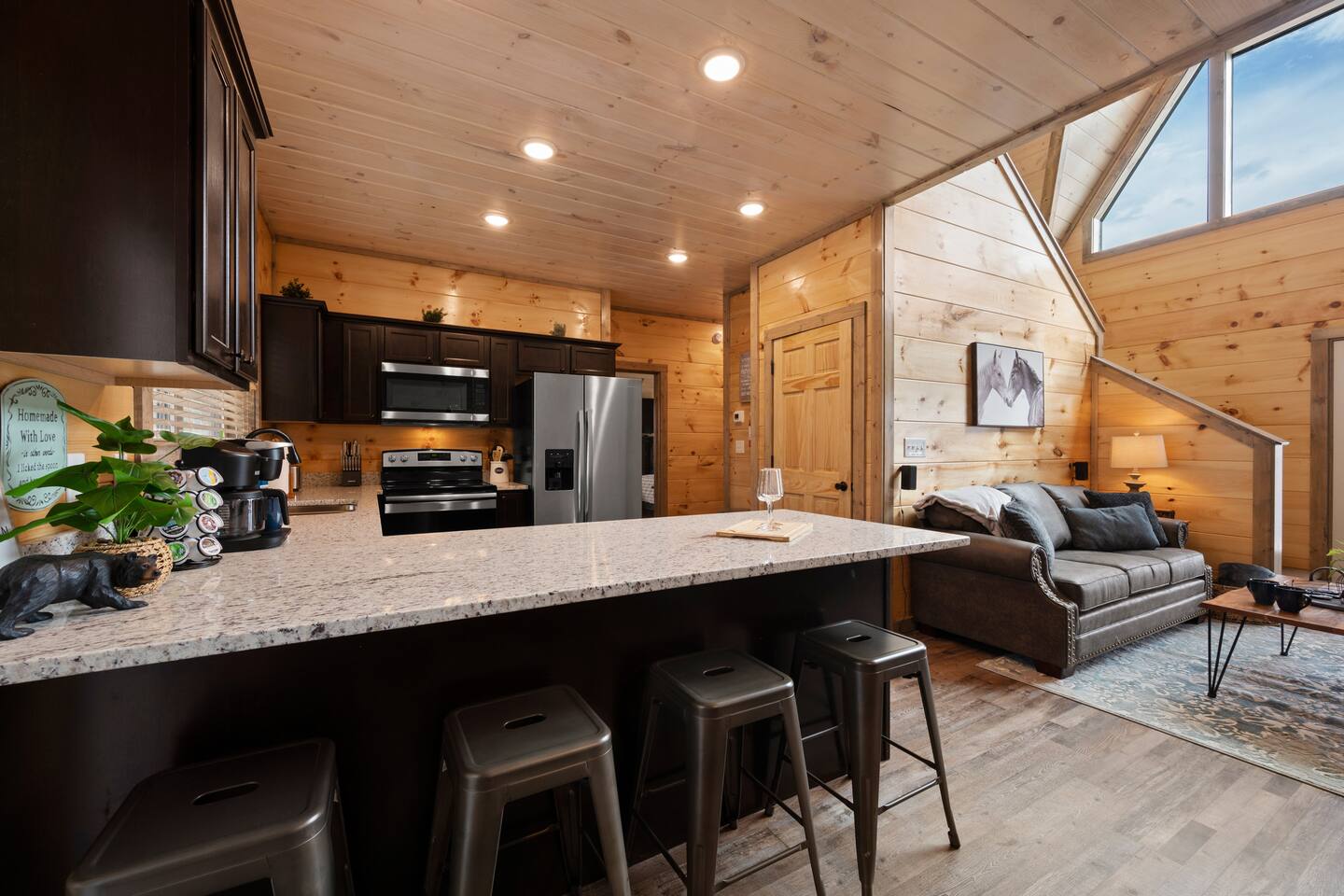 Guests will have full access to this cabin. Guests will have access to all amazing amenities, including free laundry, pool room, complimentary coffee bar and high-speed WiFi. Free parking is available on the driveway. The outdoor cameras on the driveway are for your safety and security and the home features a smart lock for convenient and smooth check-in.