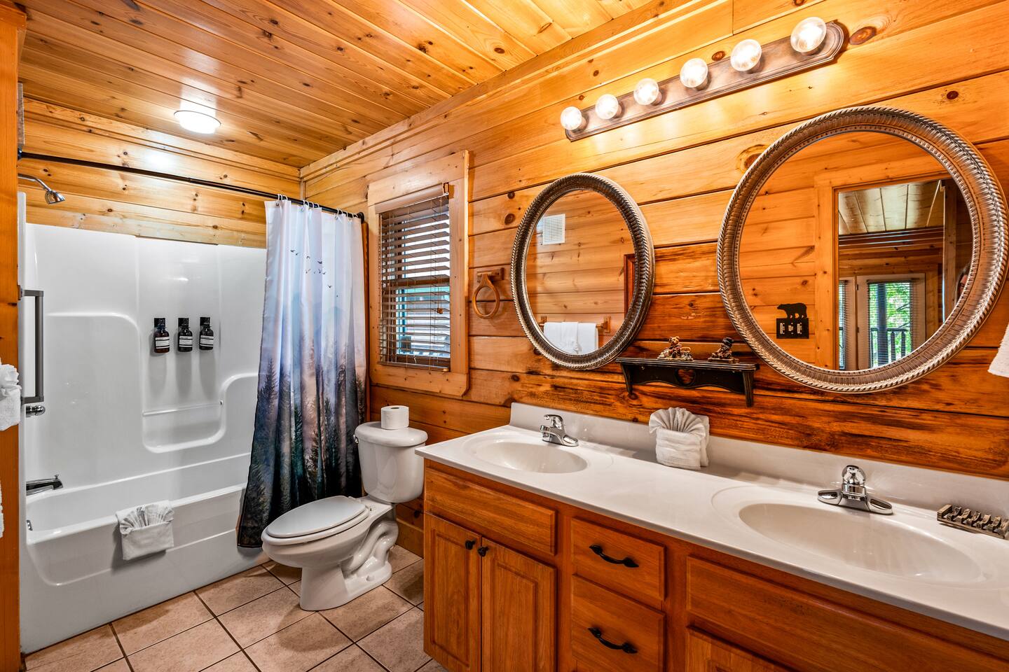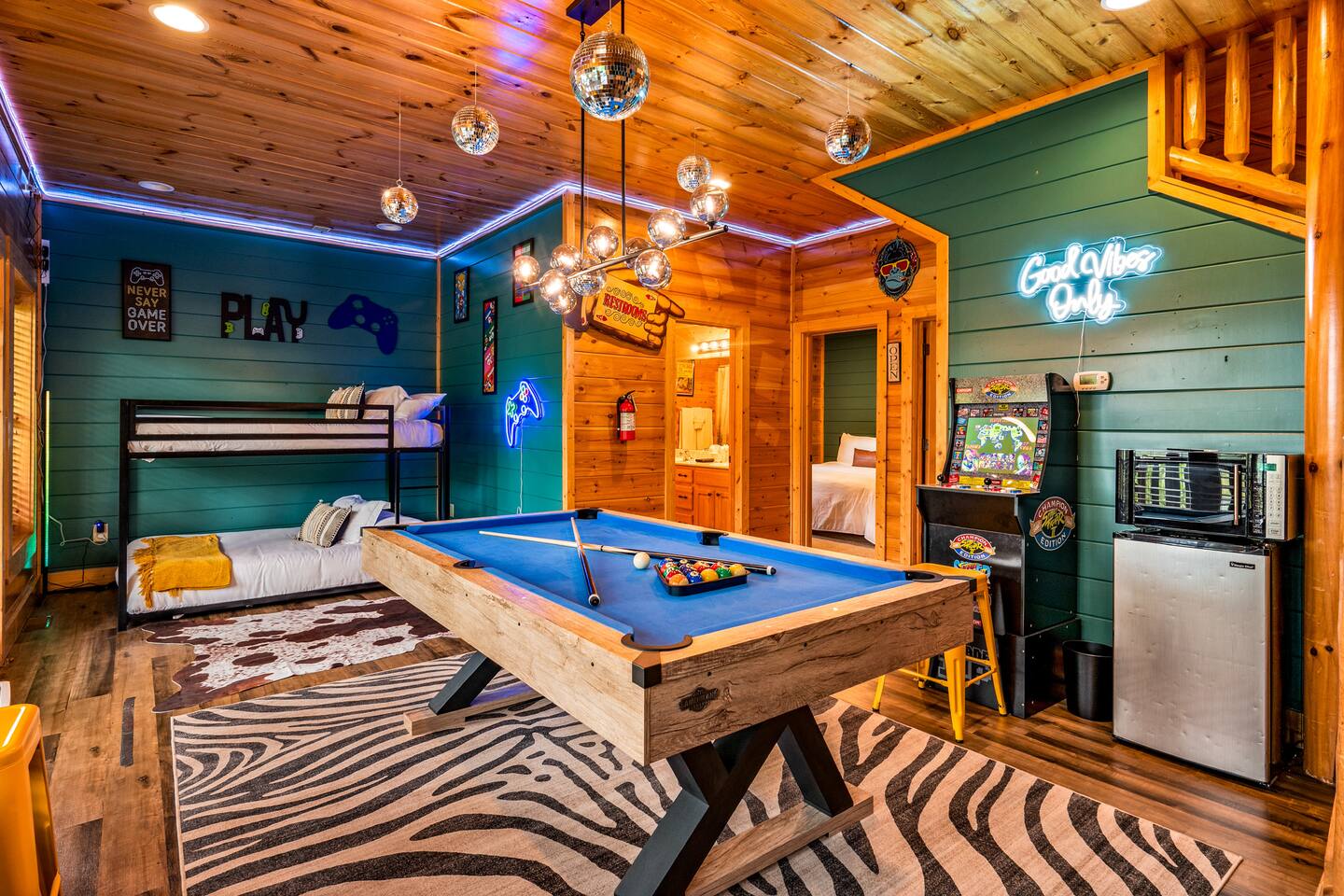 KEY FEATURES: ☀ 4 spacious bedrooms; 4 kings + 3 queen-sized sleeper sofas ☀ 3 full bathrooms + a heart-shaped spa tub in the master bedroom ☀ Full kitchen; stainless steel appliances ☀ Stocked coffee bar with assorted K-cups, whole bean coffee and coffee grounds ☀ Salt, pepper, and cooking spray are provided ☀ Comfy living room; flat-screen TV + fireplace ☀ Fun game room; foosball, pool table, arcade games + more ☀ 2 decks w/ amazing mountain views + a private hot tub ☀ Access to community pool ☀ Free WiFi ☀ Washer + dryer ☀ Easy access; no steep roads leading to the cabin ☀ Convenient location; short drive to top attractions Here Are A Few Kind Words From Our Past Guests: “Enjoyed a wonderful family vacation celebrating my fathers 60th birthday! Great location for visiting all the fun offered by Pigeon Forge and Gatlinburg.” - Jaclyn “Nice Cabin with all facilities, beautiful views, calm neighborhood, near to all the major attractions. what else do we need. Definitely will go again and recommend to all.” - Samirahmed “Great location with an awesome arcade for the kids!! Plenty of room for the whole family to stay and enjoy Pigeon Forge!! The porch has the best views of the sunrise and sunset over the mountains. We definitely enjoyed our stay!” - Ashley ☆☆ BEDROOMS ☆☆ This beautiful cabin has plenty of space for your whole group to spread out and get some privacy. There are four spacious bedrooms plus additional sleeping areas across all three levels of the home. All four bedrooms boast comfy king-sized beds, flat-screen TVs, and ample space for all your belongings in the dressers. The primary bedroom stands out with its in-room heart-shaped jacuzzi and gas fireplace, but rest assured you’ll get a great night’s sleep no matter which room you sleep in. There are queen-sized pull-out sofas in the living room, game room, and loft area to accommodate additional guests. The cabin can sleep up to 14 guests comfortably. ☆☆ BATHROOMS ☆☆ In addition to the four spacious bedrooms and additional sleeping areas, the cabin also boasts three full bathrooms. The primary bedroom has its own ensuite bathroom with dual sinks and a shower/tub combo. The other two bathrooms are located off the main living areas - one on the main level and one on the lower level. The bathrooms are stocked with fresh towels, hand soap, and toilet paper. Please remember to bring other toiletries and enough extra supplies for your stay! ☆☆ KITCHEN & LOUNGE ☆☆ The fully equipped kitchen has everything you’ll need for whipping up tasty meals for the whole group, including stainless steel appliances, a toaster, a blender, a coffee machine, a Keurig, and all the basic kitchen essentials like pots, pans, plates, cups, and utensils. There’s tons of counter space with seating available for four at the kitchen countertop. You could also enjoy meals as a family at the spacious dining table (seating for six). The kitchen and dining area open up into the cozy lounge. Whether you’re in need of an afternoon nap after a long day of exploring or simply a spot to hang out as a whole group, the living room is the perfect place. You’ll have access to over 200 channels on the flat-screen TV, and there’s also a fireplace to get you in the mountain vibe (available seasonally). ☆☆ GAME ROOM ☆☆ Hours of entertainment await in the fun lower-level game room. This open area features a pool table, a comfy couch, an additional-flat screen TV, and a mini fridge and microwave for any snacks or drinks you may want to enjoy while you play. If all that isn’t enough to keep you entertained, there is a second game room in the upstairs loft. Up here you can play around on the arcade game, start a foosball tournament, or simply relax on the cushy couch. There’s also a table perfect for card games or remote working. ☆☆ OUTSIDE SPACE ☆☆ Enjoying the beautiful Smoky Mountains is as easy as stepping outside. The cabin has two large wraparound decks with amazing views of the mountains and valleys that have made this area famous. You can enjoy your morning coffee from a rocking chair as you take in the fresh mountain air, grill up lunch on the charcoal grill, or relax sore muscles in the hot tub. The hot tub is tucked into the corner of the deck and is shaded from the view of the neighboring cabins for your privacy. During the warmer months, you can head over to the community outdoor pool to cool off or work on your tan. Once you’re ready to explore the area, nearby attractions like the main Parkway, the national park, and Gatlinburg are just a short drive away! ★☆ Book Today & Let Us Take Care Of You In Pigeon Forge! ☆★