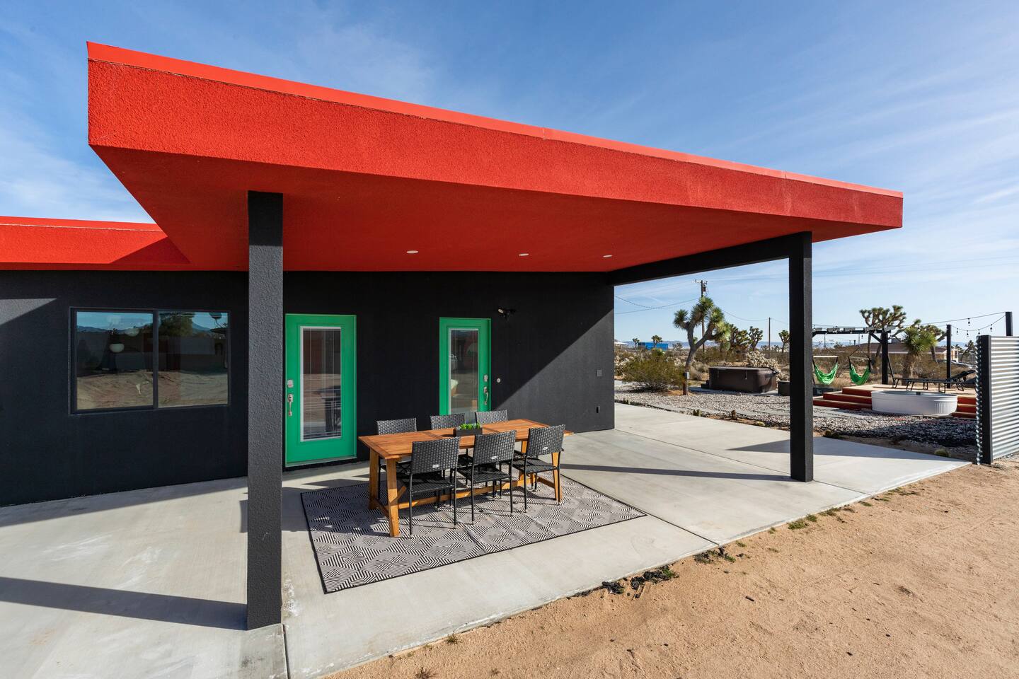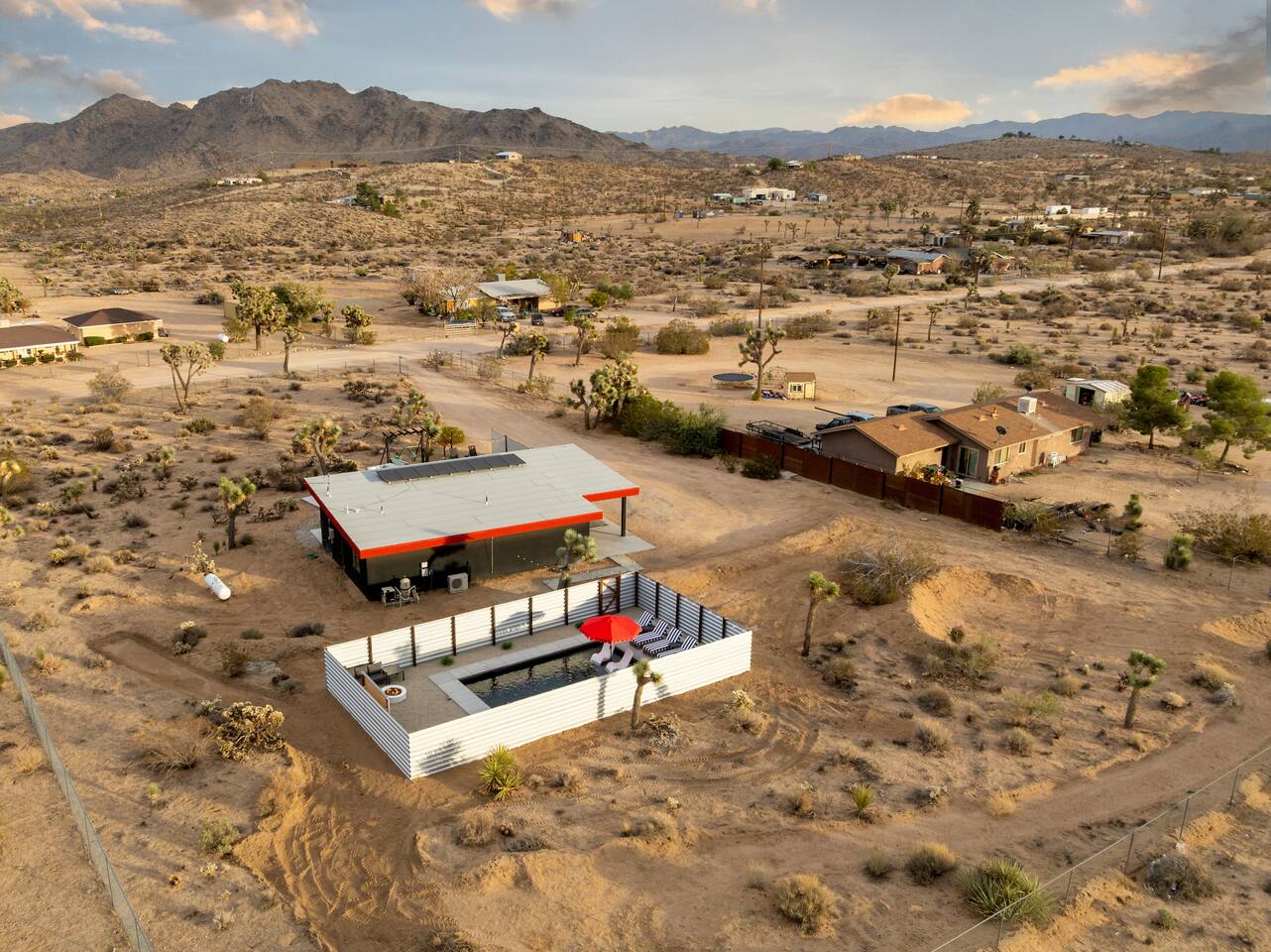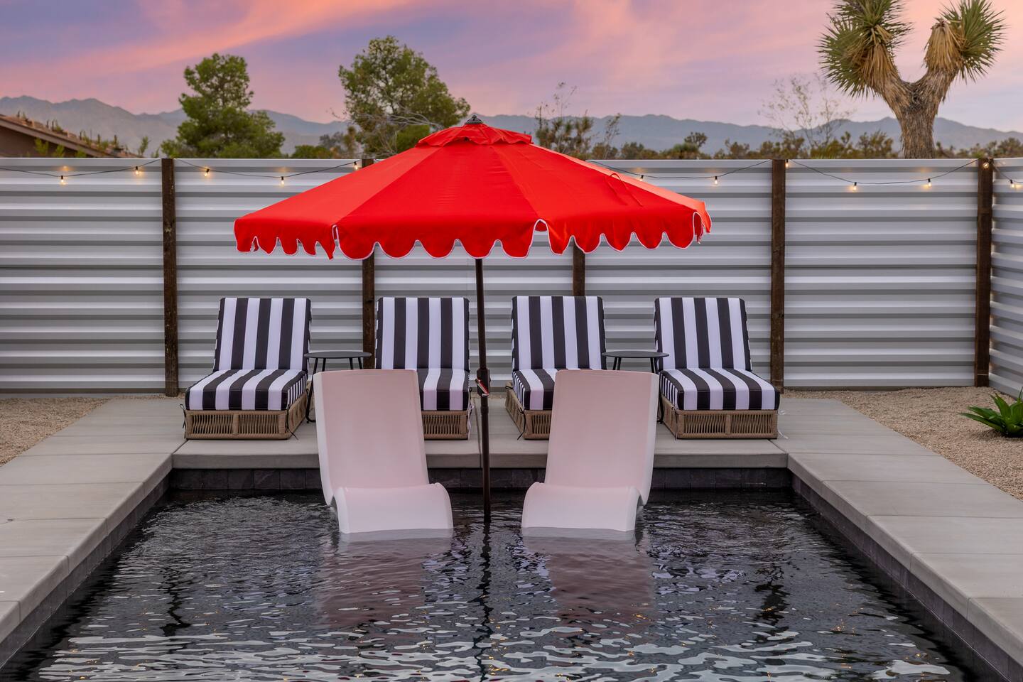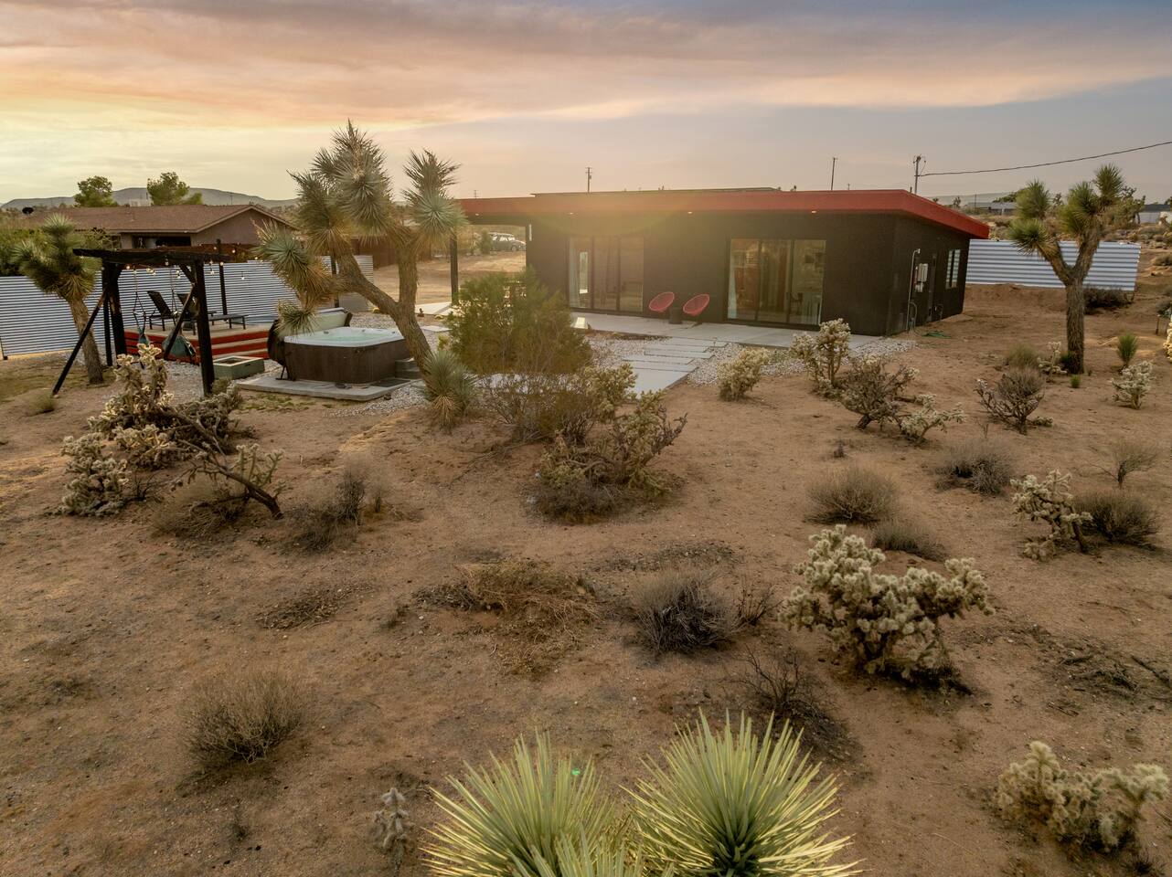 🛸 The Ultimate Outdoor Space Prepare to be amazed by your private, fully-fenced backyard retreat. We've created a luxurious space perfect for enjoying the sunny days and even more incredible desert nights! 👽New In-Ground Pool: Dive into the brand-new, in-ground pool for a refreshing dip, or request to have it heated for a cozy night swim! The pool goes up to 5 feet deep but also includes a nice sized "lounge step" that's great for tanning or just chilling out while you stream your favorite show directly in front of the pool on the screen! 👽Outdoor Movie Nights: Enhance your evening with an unforgettable viewing experience! Grab a spot on the lounge chairs or a floatie in the pool and enjoy your favorite films on the large outdoor projector screen. You can log in to your own streaming accounts to access all your favorites! 👽Star-Gazing Comfort: The backyard also includes a fire pit and sectional where you can cozy up, while the front yard also has a traditional desert cowboy tub, and a pergola with hanging hammock chairs in front of another fire pit for comfortable, classic Joshua Tree stargazing under the ambient string lights. 👽Jacuzzi: Slip into the perfectly heated Jacuzzi to soak away the day's adventures and chill under the stars! KEY FEATURES ☀ INSANE outdoor amenities - pool/hot tub/fire pits/projector/putting green ☀ Spacious 2 bedroom tiny home with 2 King size beds ☀ 1 full bathroom ☀ Full kitchen, with stainless steel and all the tools needed to make a delicious meal! ☀ Stocked coffee bar with assorted K-cups, whole bean coffee and coffee grounds ☀ Salt, pepper, and cooking spray are provided ☀ 55” flat screen TV with access to all streaming platforms (logins not provided) ☀ Free WiFi ☀ Washer + dryer ☀ Easy access; no steps to entry ☀ Convenient location; short drive to National Park, restaurants and activities ☀️ Important Pool Information 🔥Heating Fee: The in-ground pool can be heated to 80F degrees for an additional fee of $200/day. This fee must be paid in full prior to your arrival. - A minimum notice of 24 hours is needed to have the pool heated for your arrival, as it takes time to warm such a large body of water. 🛟Safety: Swim at your own risk. No lifeguard is present. No diving in the pool or spa. 🧰Maintenance: Pool maintenance occurs every Monday afternoon. The pool is available for use before and after maintenance and the technician is completely out of your way when they swing by! 🦩Pool Toys: Pool toys are not provided—feel free to bring your own! ☆☆ BEDROOMS☆☆ Even space travelers need to sleep and when you do, relax in ultimate comfort on a King size bed Zinus memory foam mattress. Two spacious bedrooms provide you with plenty of privacy and space and the ability to rest and recharge for another day of adventure. ☆☆ BATHROOMS ☆☆ There is one full size bathroom complete with plush bath linen, towels for the spa, hairdryer and first aid kit ☆☆ LIVING ROOM ☆☆ Whether you’re in need of an afternoon nap after a long day of exploration and space travel or simply a spot to hang out with friends or family, the living room is the perfect place. You’ll have access to multiple streaming services on the 55” flat-screen TV, and there’s also a fireplace to get you in the desert vibe. ☆☆ KITCHEN & DINING ROOM ☆☆ The fully equipped kitchen has everything you’ll need for whipping up tasty meals for the whole group, including stainless steel appliances, a toaster, a blender, a coffee machine, a Keurig, and all the basic kitchen essentials like pots, pans, plates, cups, and utensils. Enjoy meals together at the kitchen table with seating for 6. There is a stocked coffee bar with assorted K-cups, whole bean coffee and coffee grounds. Salt, pepper, and cooking spray are also included! ☆☆ OUTSIDE SPACE ☆☆ Step outside and into your own desert oasis. The entire yard is fenced in, not only for your privacy, but also so your furry friends can safely explore! Feel free to shut the front gate to fully enclose the yard. The best part about coming to Joshua Tree is being able to enjoy the outdoors and we think the yard will do just that. The neighborhood is pretty quiet and you most likely won’t even see or hear anyone! ★☆ Book Today & Let Us Take Care Of You In Joshua Tree! ☆★