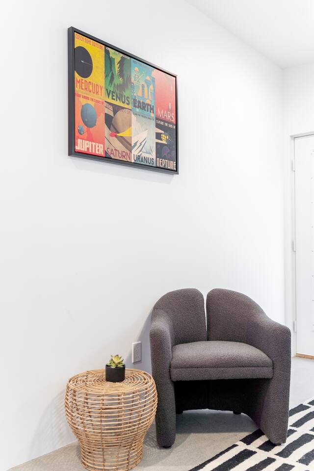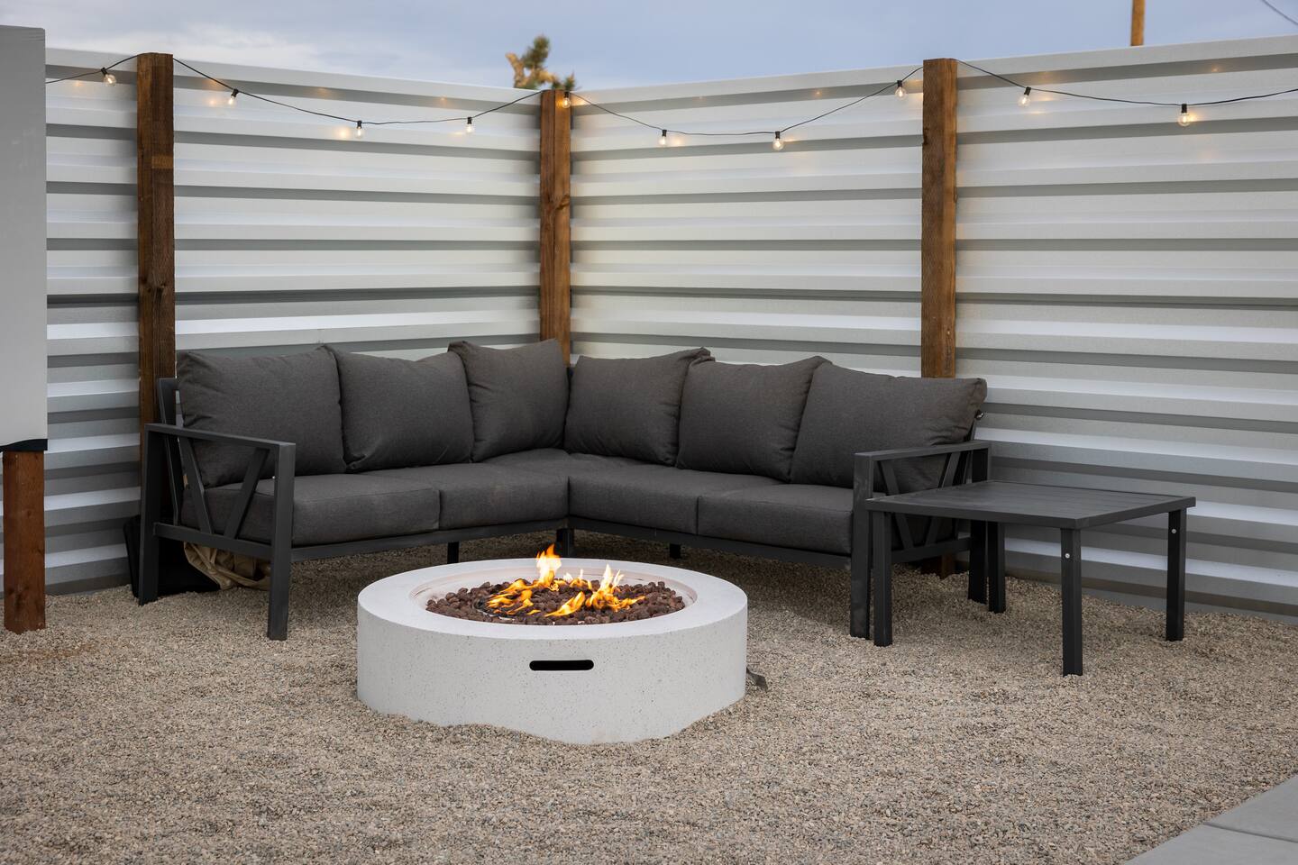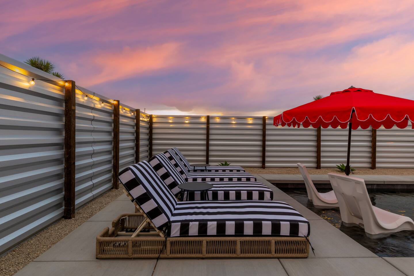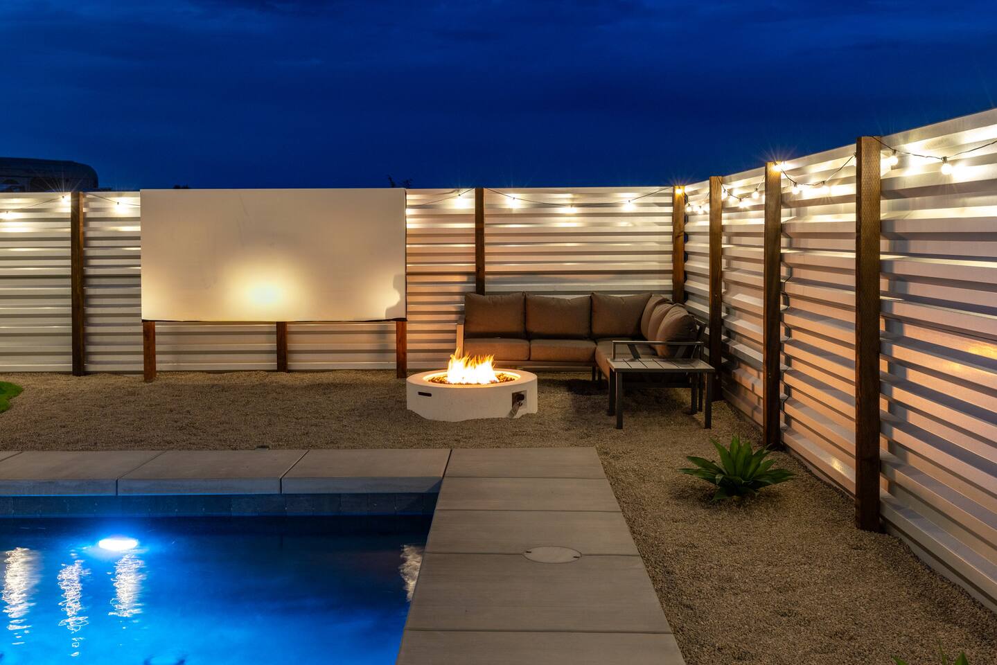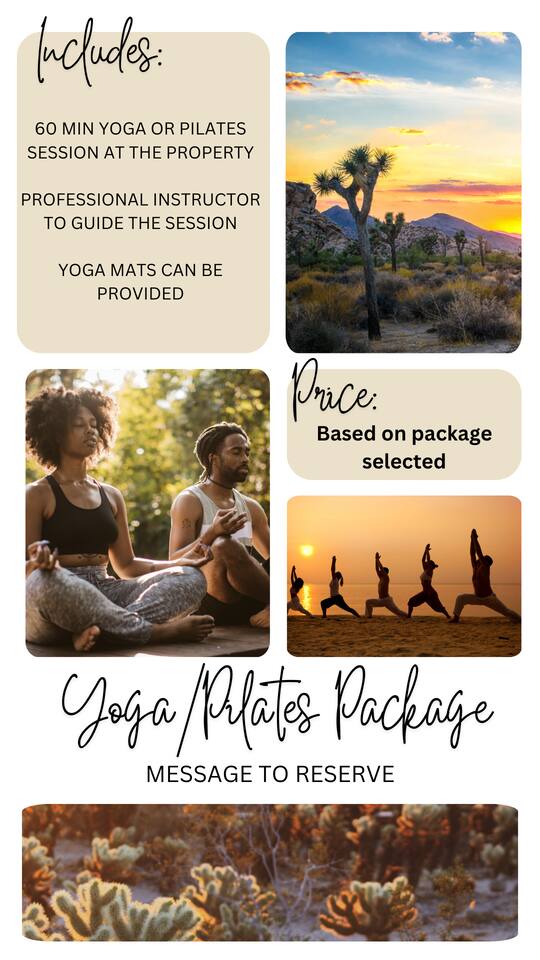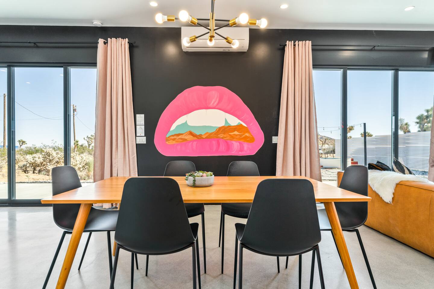 🛸 The Ultimate Outdoor Space Prepare to be amazed by your private, fully-fenced backyard retreat. We've created a luxurious space perfect for enjoying the sunny days and even more incredible desert nights! 👽New In-Ground Pool: Dive into the brand-new, in-ground pool for a refreshing dip, or request to have it heated for a cozy night swim! The pool goes up to 5 feet deep but also includes a nice sized "lounge step" that's great for tanning or just chilling out while you stream your favorite show directly in front of the pool on the screen! 👽Outdoor Movie Nights: Enhance your evening with an unforgettable viewing experience! Grab a spot on the lounge chairs or a floatie in the pool and enjoy your favorite films on the large outdoor projector screen. You can log in to your own streaming accounts to access all your favorites! 👽Star-Gazing Comfort: The backyard also includes a fire pit and sectional where you can cozy up, while the front yard also has a traditional desert cowboy tub, and a pergola with hanging hammock chairs in front of another fire pit for comfortable, classic Joshua Tree stargazing under the ambient string lights. 👽Jacuzzi: Slip into the perfectly heated Jacuzzi to soak away the day's adventures and chill under the stars! KEY FEATURES ☀ INSANE outdoor amenities - pool/hot tub/fire pits/projector/putting green ☀ Spacious 2 bedroom tiny home with 2 King size beds ☀ 1 full bathroom ☀ Full kitchen, with stainless steel and all the tools needed to make a delicious meal! ☀ Stocked coffee bar with assorted K-cups, whole bean coffee and coffee grounds ☀ Salt, pepper, and cooking spray are provided ☀ 55” flat screen TV with access to all streaming platforms (logins not provided) ☀ Free WiFi ☀ Washer + dryer ☀ Easy access; no steps to entry ☀ Convenient location; short drive to National Park, restaurants and activities ☀️ Important Pool Information 🔥Heating Fee: The in-ground pool can be heated to 80F degrees for an additional fee of $200/day. This fee must be paid in full prior to your arrival. - A minimum notice of 24 hours is needed to have the pool heated for your arrival, as it takes time to warm such a large body of water. 🛟Safety: Swim at your own risk. No lifeguard is present. No diving in the pool or spa. 🧰Maintenance: Pool maintenance occurs every Monday afternoon. The pool is available for use before and after maintenance and the technician is completely out of your way when they swing by! 🦩Pool Toys: Pool toys are not provided—feel free to bring your own! ☆☆ BEDROOMS☆☆ Even space travelers need to sleep and when you do, relax in ultimate comfort on a King size bed Zinus memory foam mattress. Two spacious bedrooms provide you with plenty of privacy and space and the ability to rest and recharge for another day of adventure. ☆☆ BATHROOMS ☆☆ There is one full size bathroom complete with plush bath linen, towels for the spa, hairdryer and first aid kit ☆☆ LIVING ROOM ☆☆ Whether you’re in need of an afternoon nap after a long day of exploration and space travel or simply a spot to hang out with friends or family, the living room is the perfect place. You’ll have access to multiple streaming services on the 55” flat-screen TV, and there’s also a fireplace to get you in the desert vibe. ☆☆ KITCHEN & DINING ROOM ☆☆ The fully equipped kitchen has everything you’ll need for whipping up tasty meals for the whole group, including stainless steel appliances, a toaster, a blender, a coffee machine, a Keurig, and all the basic kitchen essentials like pots, pans, plates, cups, and utensils. Enjoy meals together at the kitchen table with seating for 6. There is a stocked coffee bar with assorted K-cups, whole bean coffee and coffee grounds. Salt, pepper, and cooking spray are also included! ☆☆ OUTSIDE SPACE ☆☆ Step outside and into your own desert oasis. The entire yard is fenced in, not only for your privacy, but also so your furry friends can safely explore! Feel free to shut the front gate to fully enclose the yard. The best part about coming to Joshua Tree is being able to enjoy the outdoors and we think the yard will do just that. The neighborhood is pretty quiet and you most likely won’t even see or hear anyone! ★☆ Book Today & Let Us Take Care Of You In Joshua Tree! ☆★
