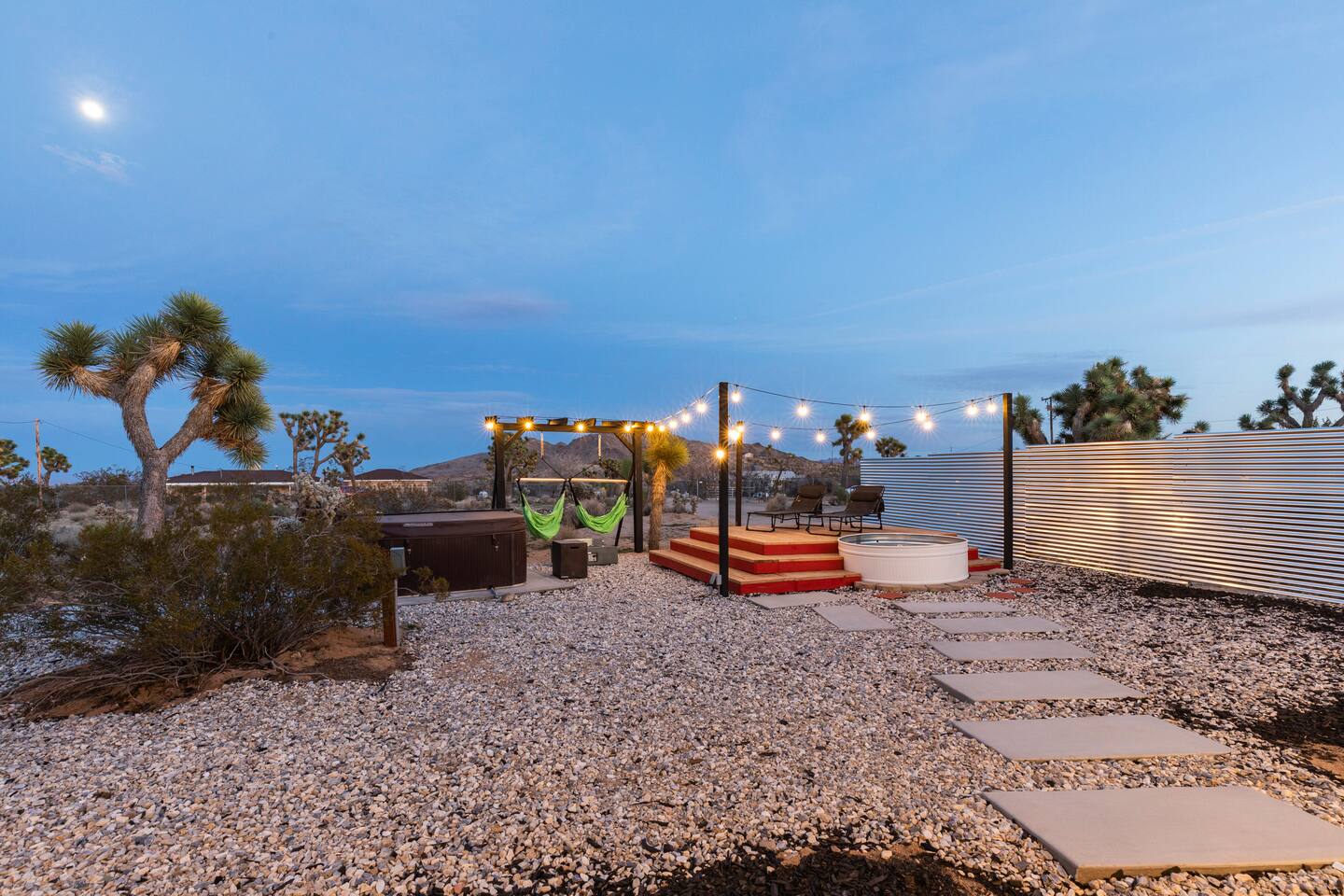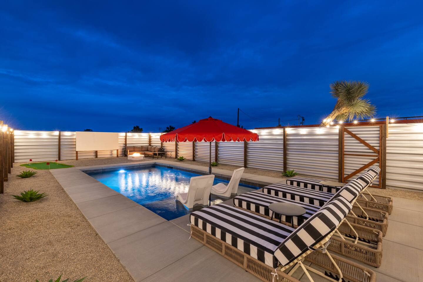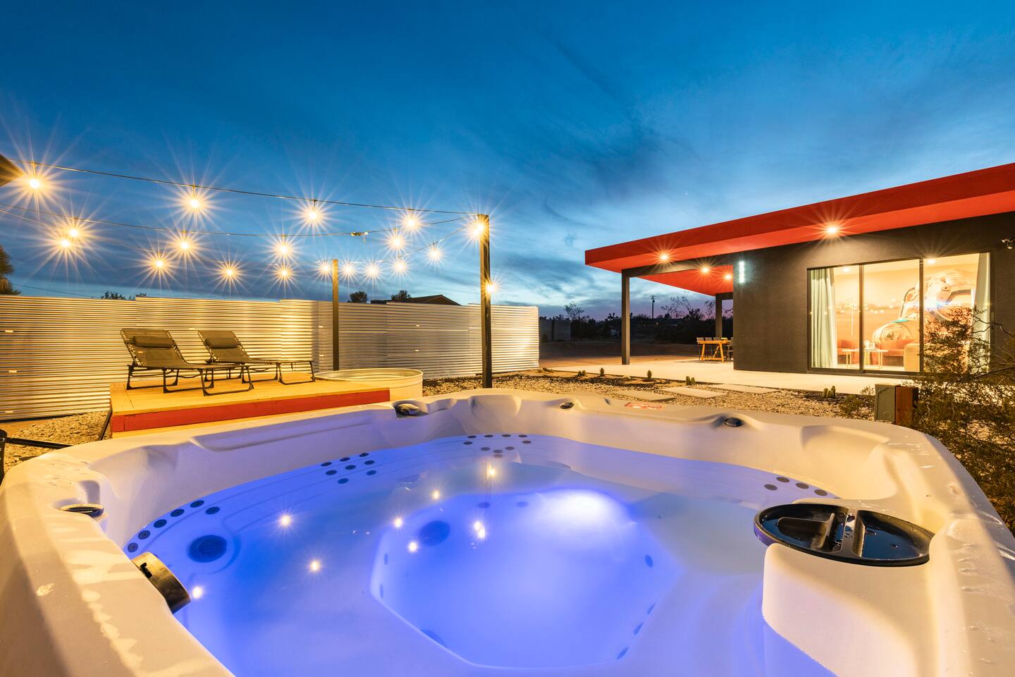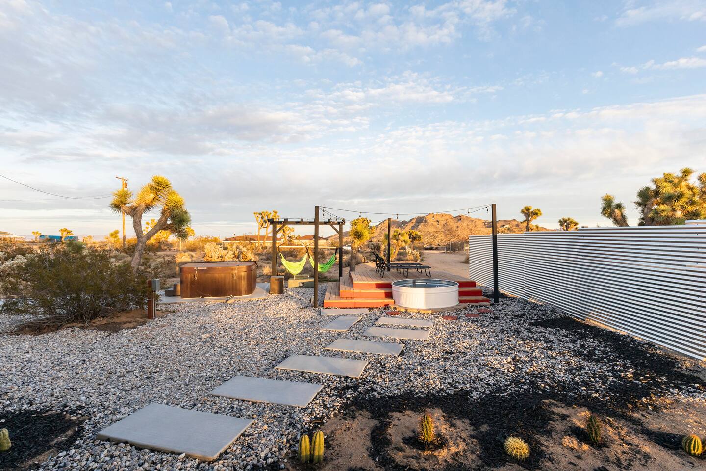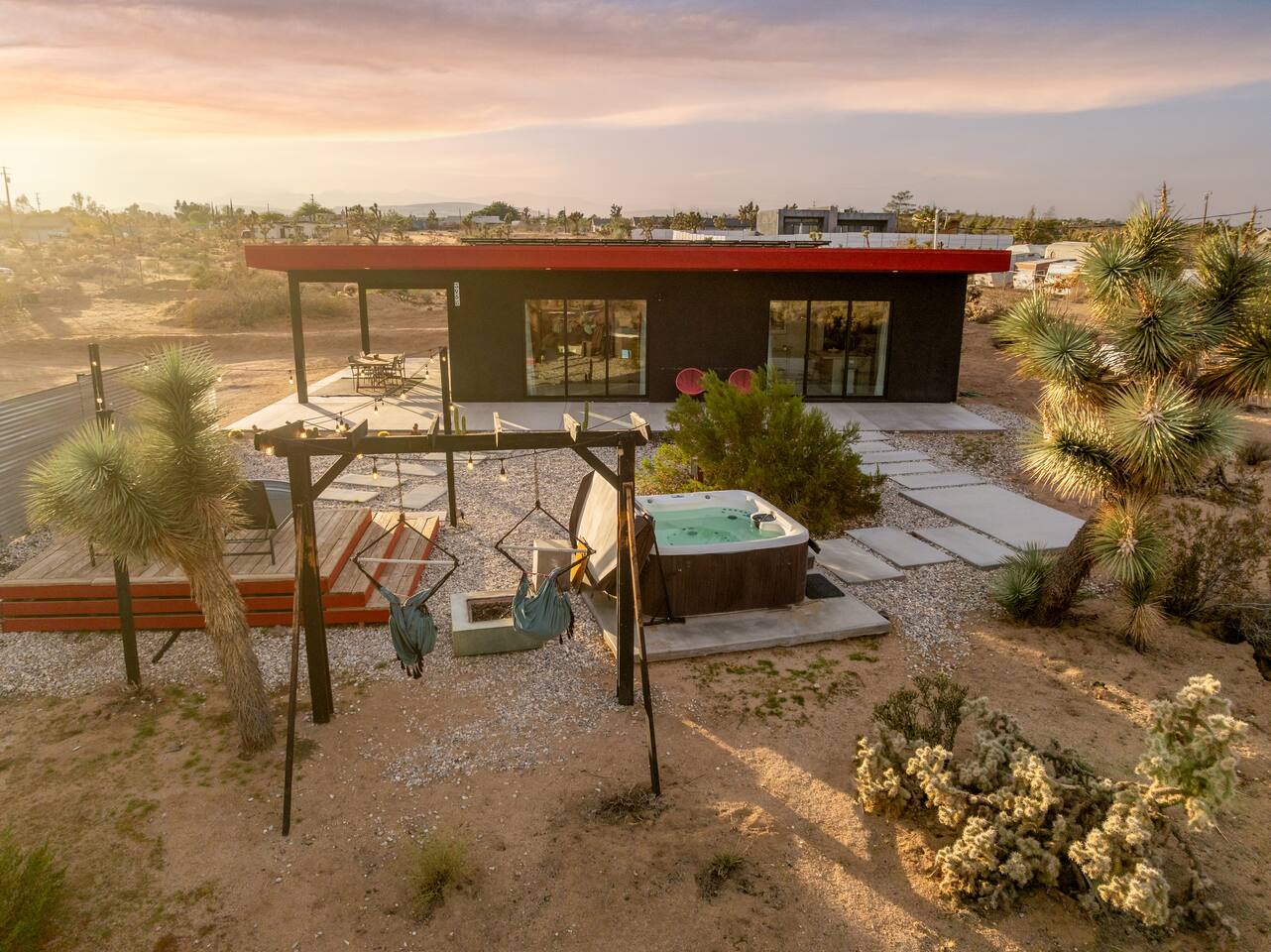 🚀 Houston, we’ve landed on Mars! Welcome to our out-of-this-world 2-bedroom tiny home — a stylish escape that feels light years away without leaving Earth. Perfect for couples or small groups, enjoy your private pool, putting green, outdoor movie screen with projector, large yard, hot tub, cowboy tub, two fire pits, and hammock chairs for stargazing. 🌵 Just 18 mins to Joshua Tree National Park’s west entrance, 9 mins to downtown JT, and 8 mins to Walmart. Super remote, yet close enough!