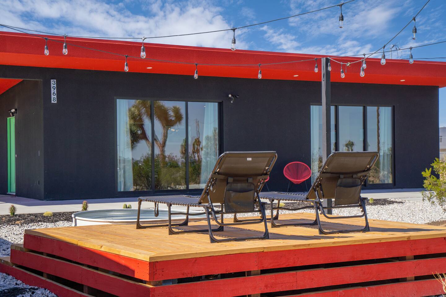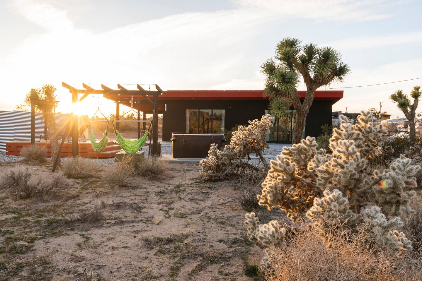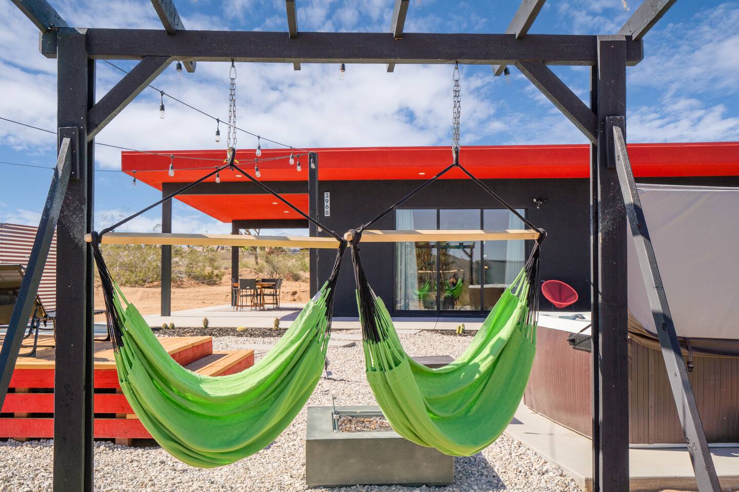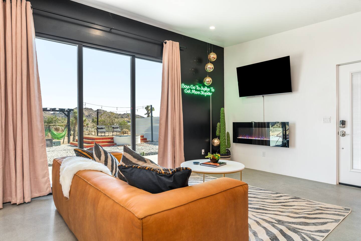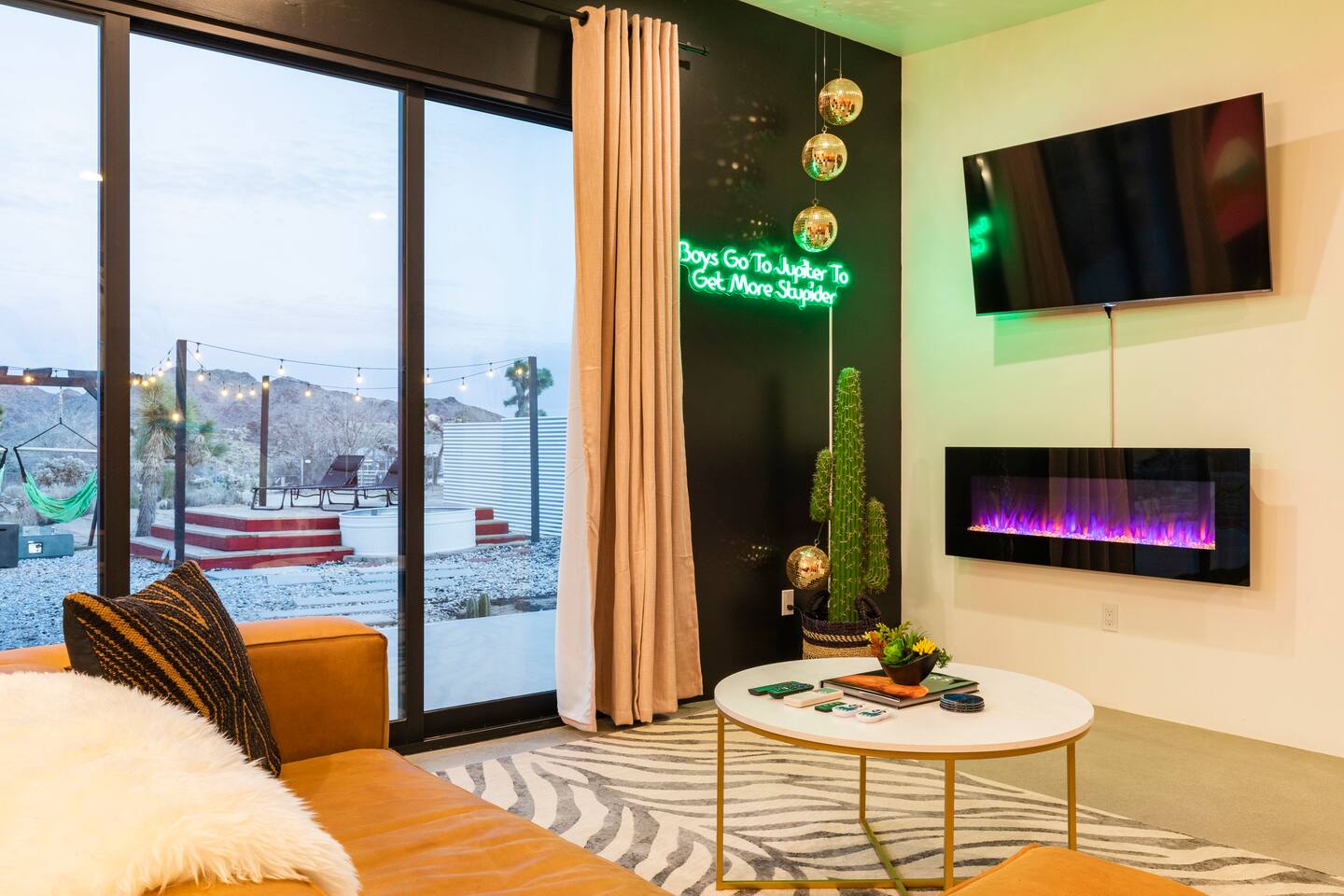 🚀 Houston, we’ve landed on Mars! Welcome to our out-of-this-world 2-bedroom tiny home — a stylish escape that feels light years away without leaving Earth. Perfect for couples or small groups, enjoy your private pool, putting green, outdoor movie screen with projector, large yard, hot tub, cowboy tub, two fire pits, and hammock chairs for stargazing. 🌵 Just 18 mins to Joshua Tree National Park’s west entrance, 9 mins to downtown JT, and 8 mins to Walmart. Super remote, yet close enough!