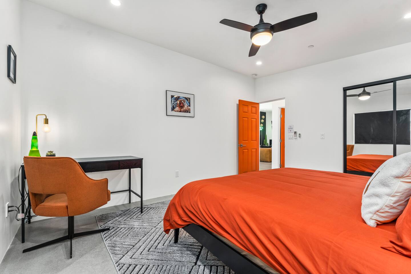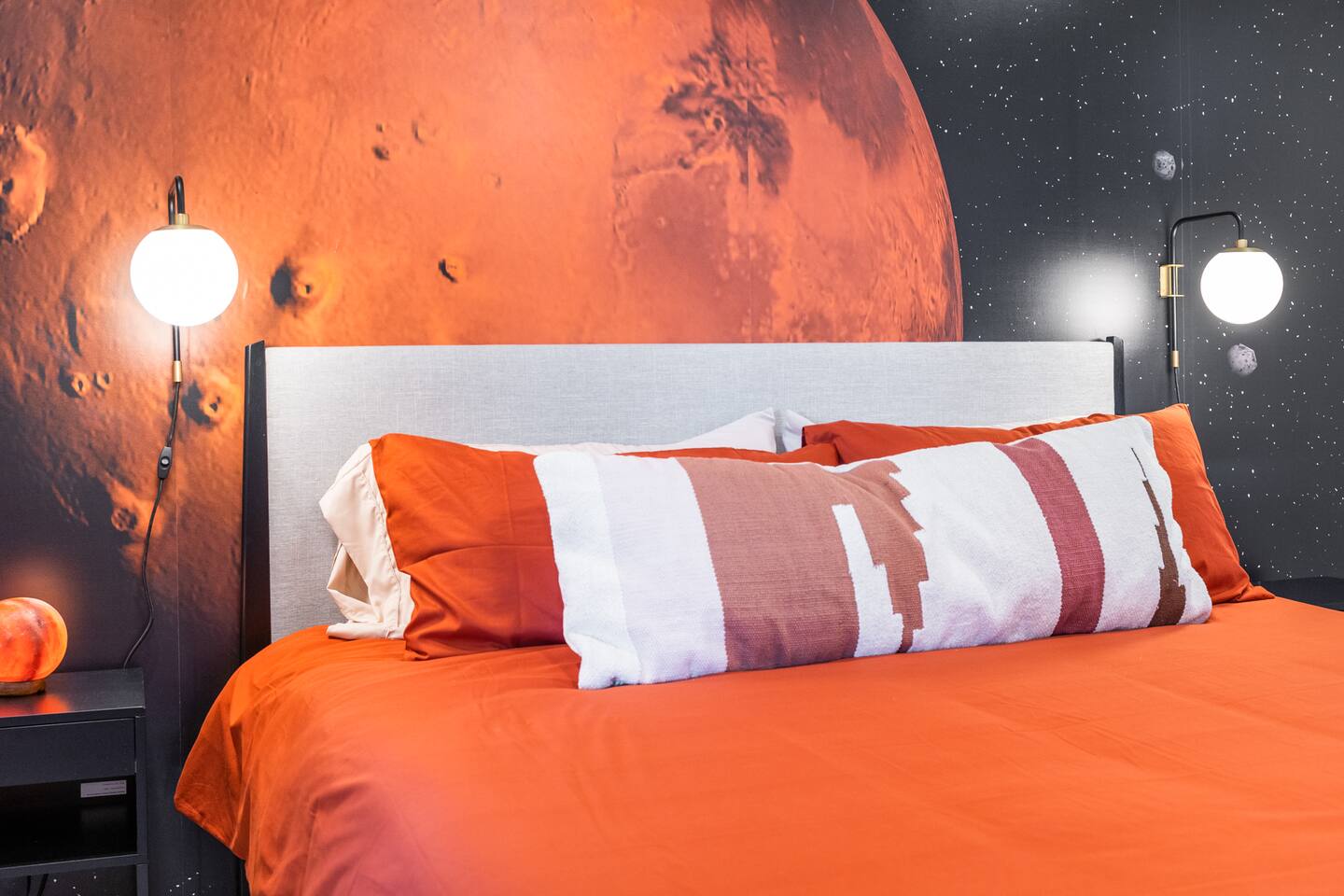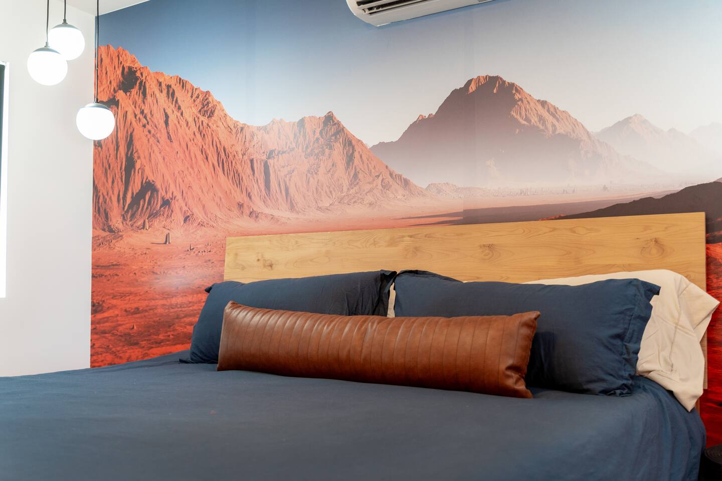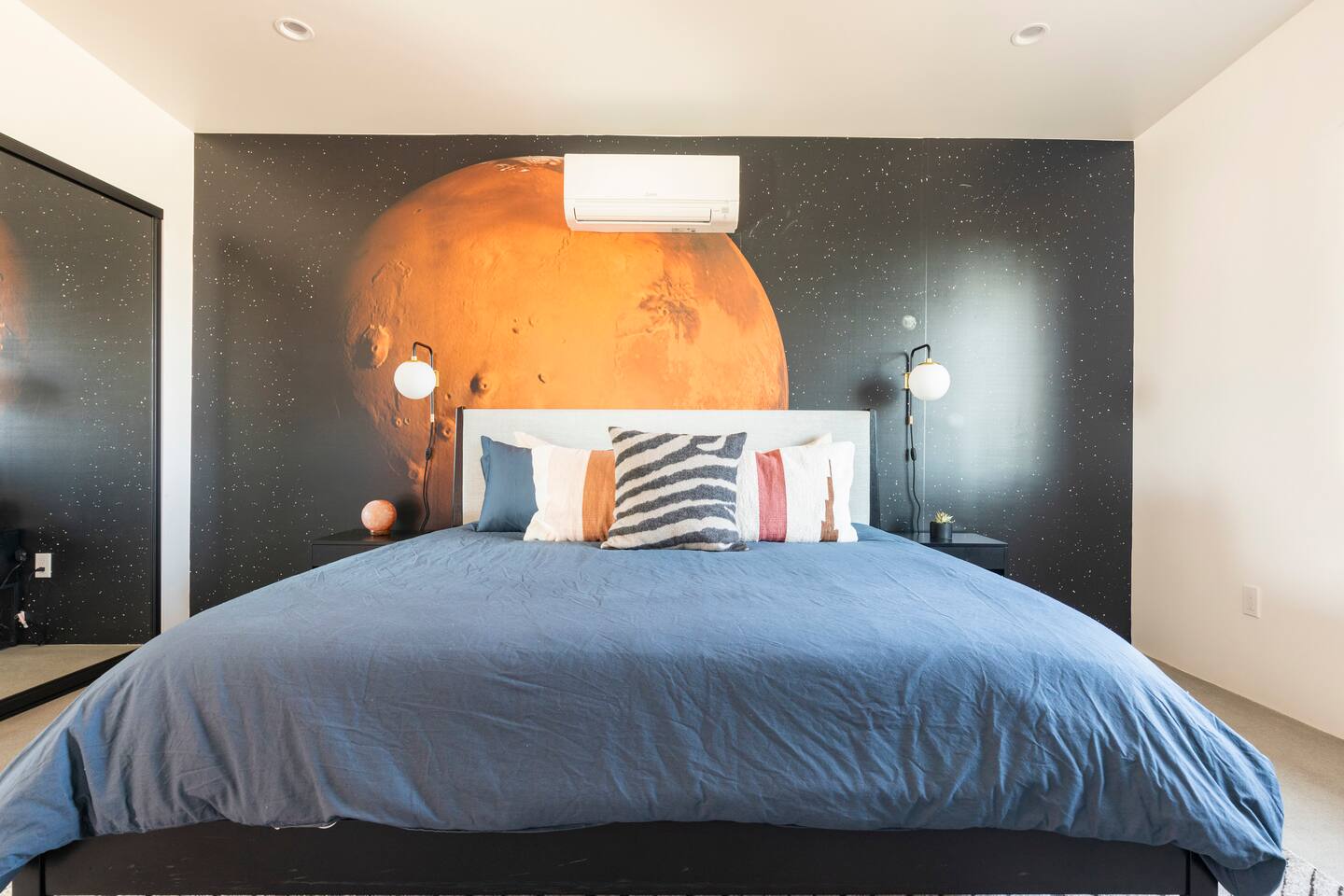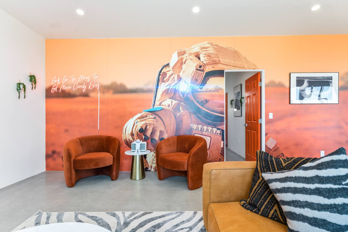 🚀 Houston, we’ve landed on Mars! Welcome to our out-of-this-world 2-bedroom tiny home — a stylish escape that feels light years away without leaving Earth. Perfect for couples or small groups, enjoy your private pool, putting green, outdoor movie screen with projector, large yard, hot tub, cowboy tub, two fire pits, and hammock chairs for stargazing. 🌵 Just 18 mins to Joshua Tree National Park’s west entrance, 9 mins to downtown JT, and 8 mins to Walmart. Super remote, yet close enough!