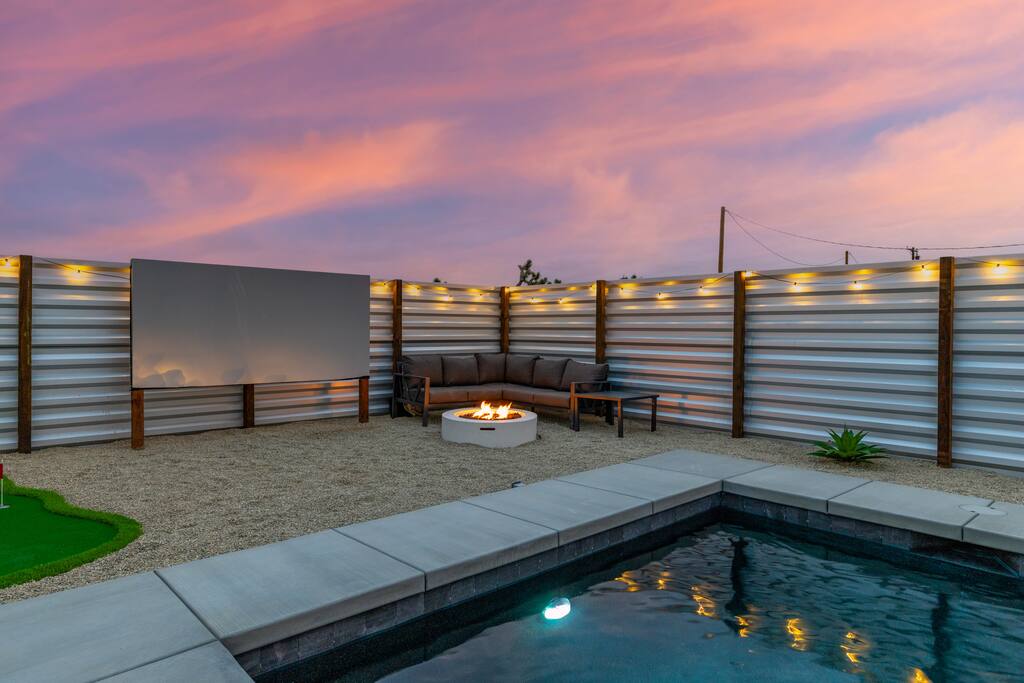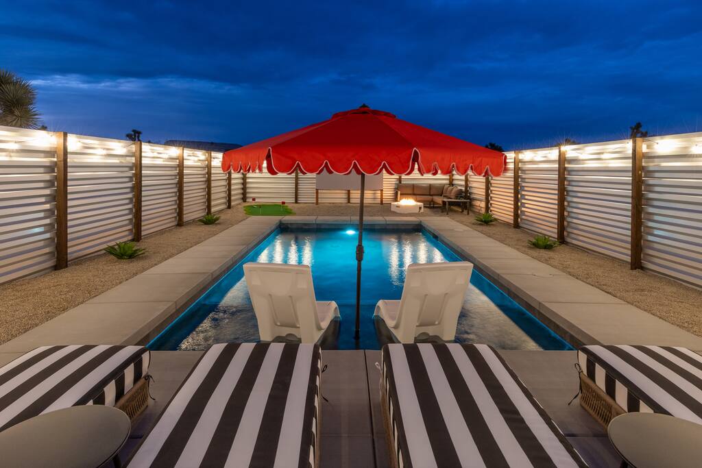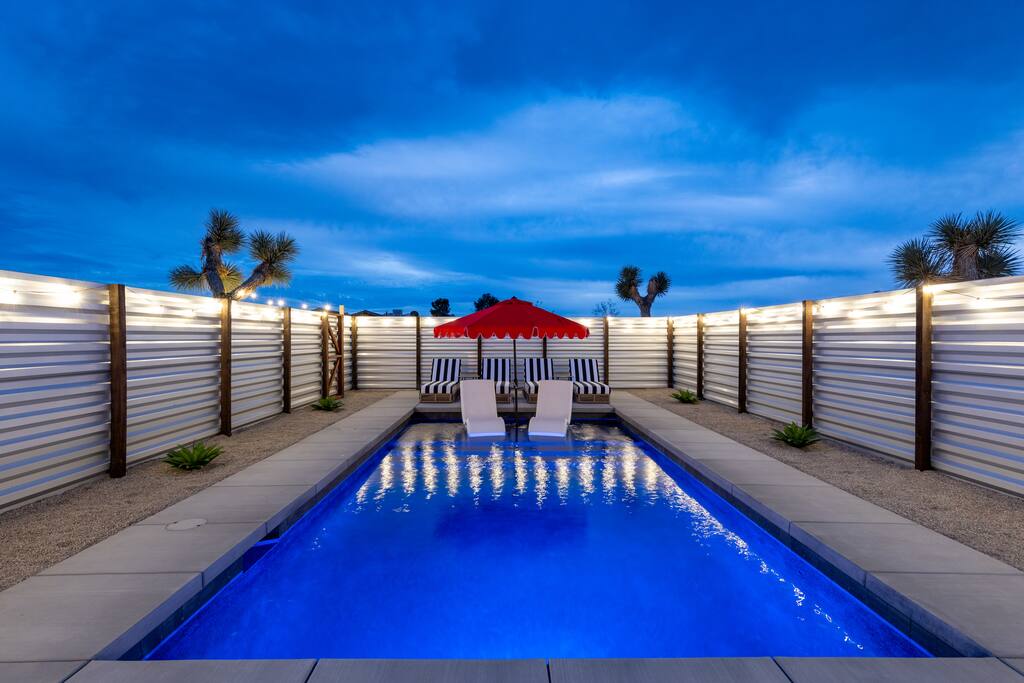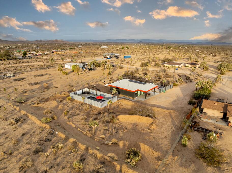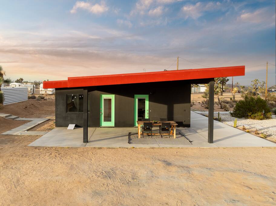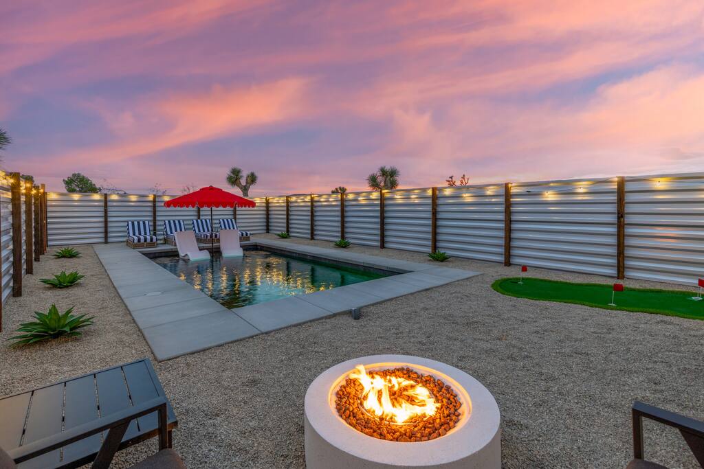 🚀 Houston, we’ve touched down on Mars! Welcome to our out-of-this-world 2-bedroom tiny home, designed to give you a stylish escape that feels light years away, without ever leaving Earth. This is the perfect getaway for a couple or a small group and includes a large yard, hot tub, cowboy pool, fire pit and pergola with hanging hammock chairs to enjoy the night sky. 18 Mins Drive to the West Entrance to Joshua Tree National Park 9 Mins drive to downtown JT 8 Mins drive to Walmart