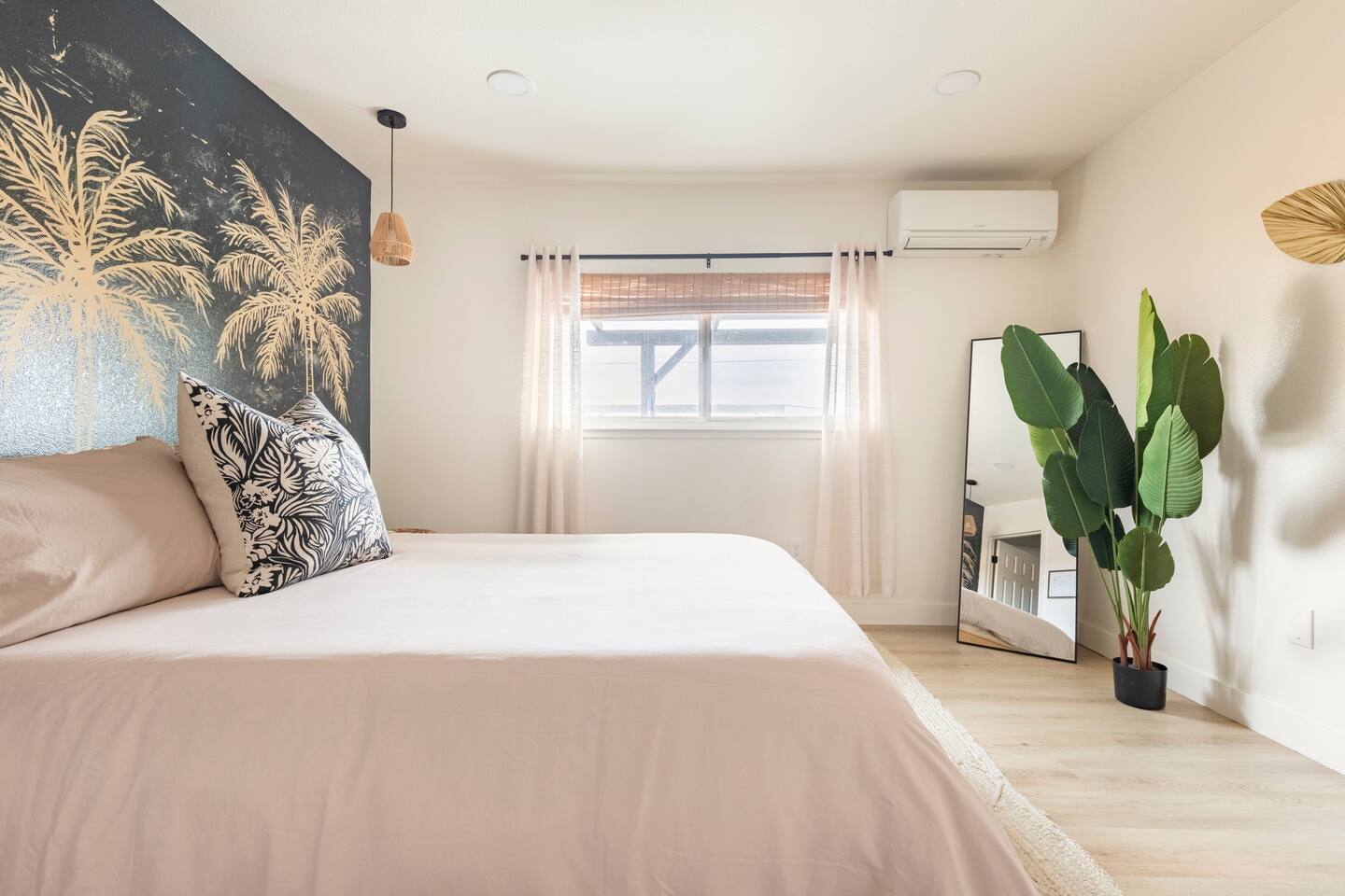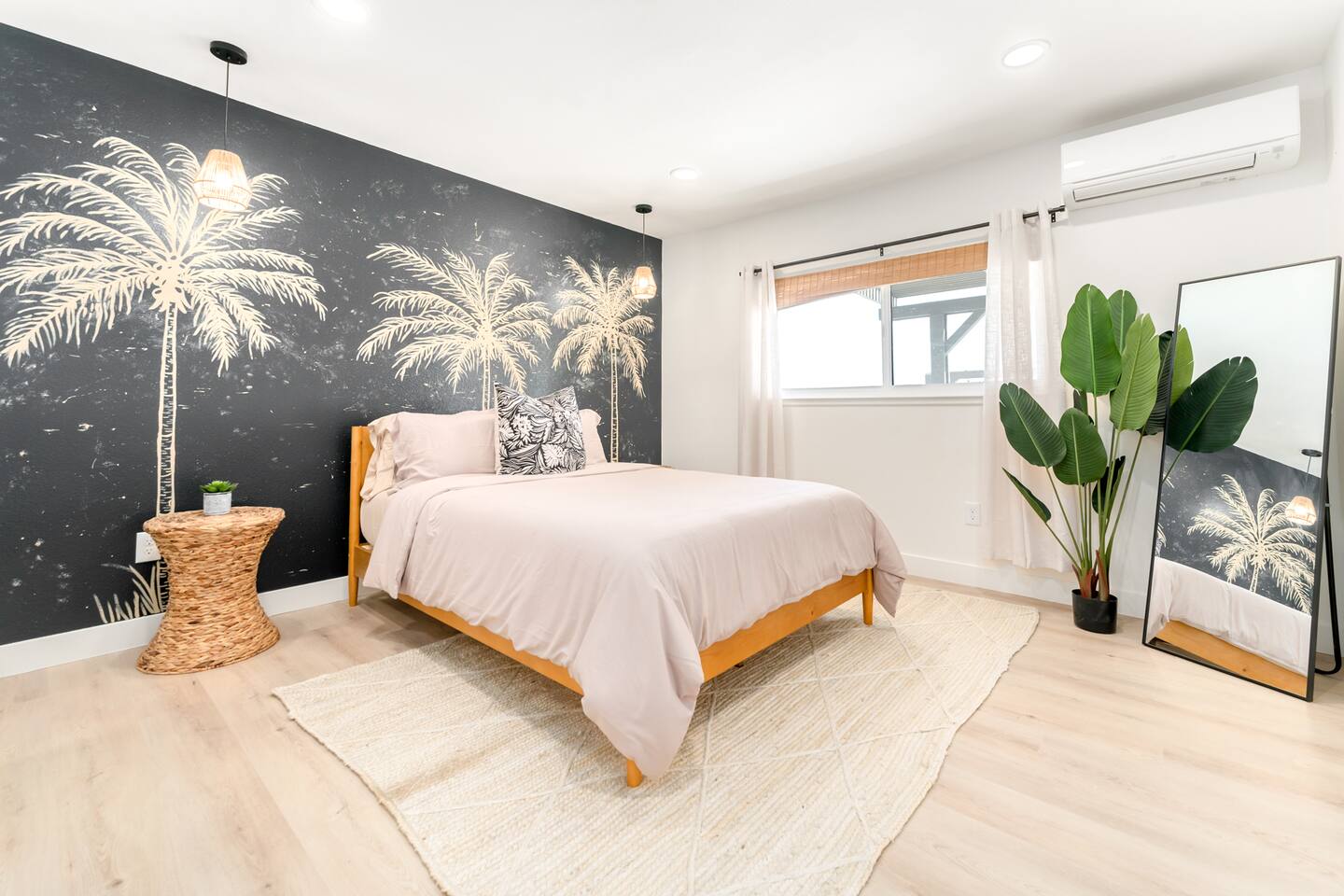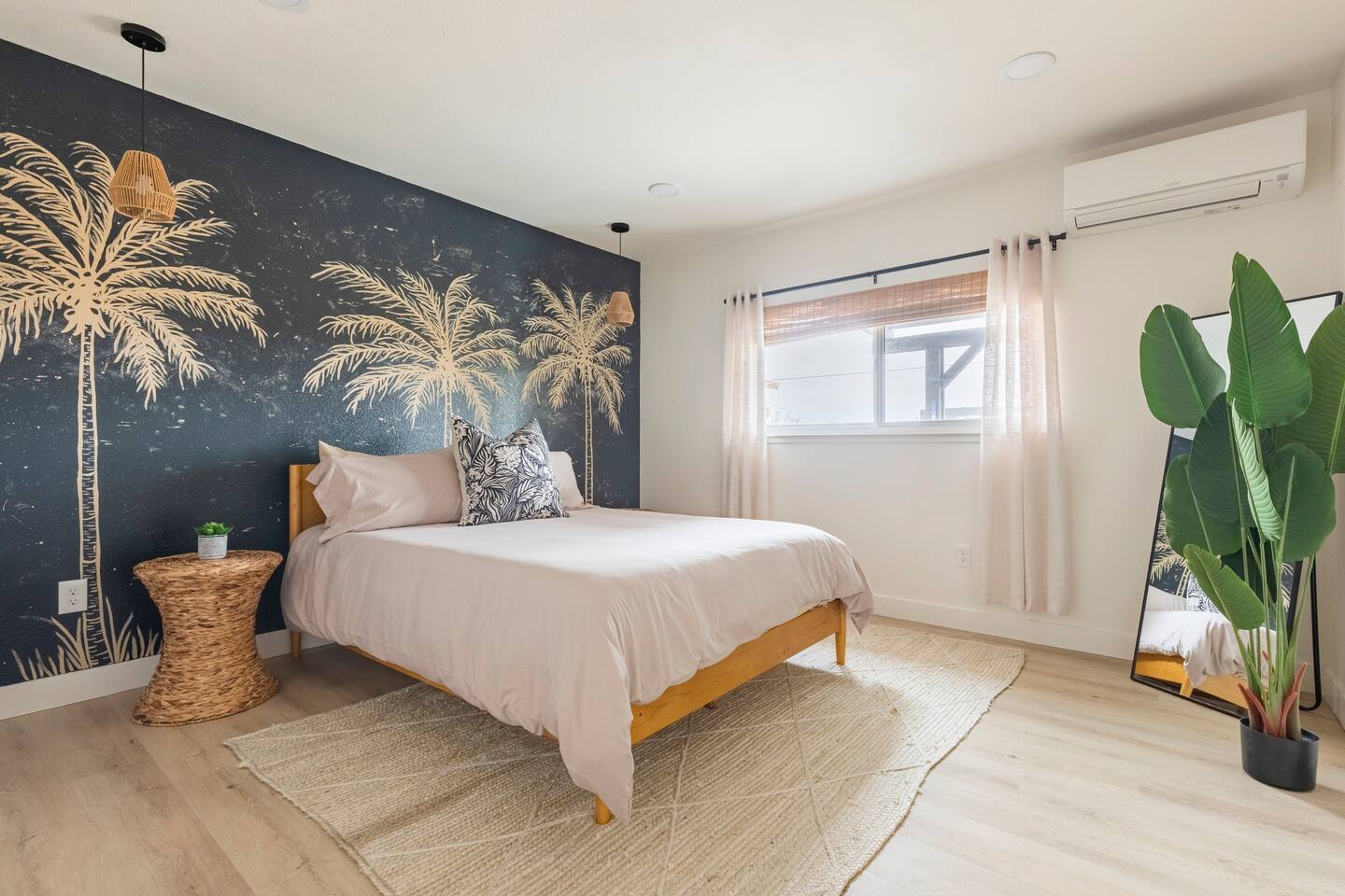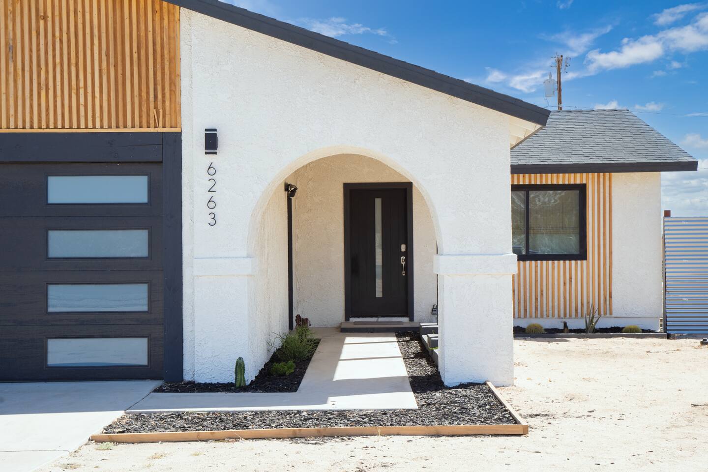 Picturing yourself relaxing underneath the palm trees is easy in this beautiful Tulum inspired home. Newly-remodeled, this home is perfect for families and small groups. Make the most of the stunning landscape with our incredible indoor and outdoor amenities! A brand new game room, hot tub, fire pit, stock tank pool, and hammocks await you for fun and relaxation! 22 Mins Drive to Joshua Tree National Park 2 min to Stater Bros Grocery Store 13 Mins Drive to Downtown Joshua Tree