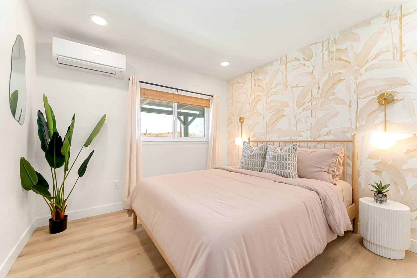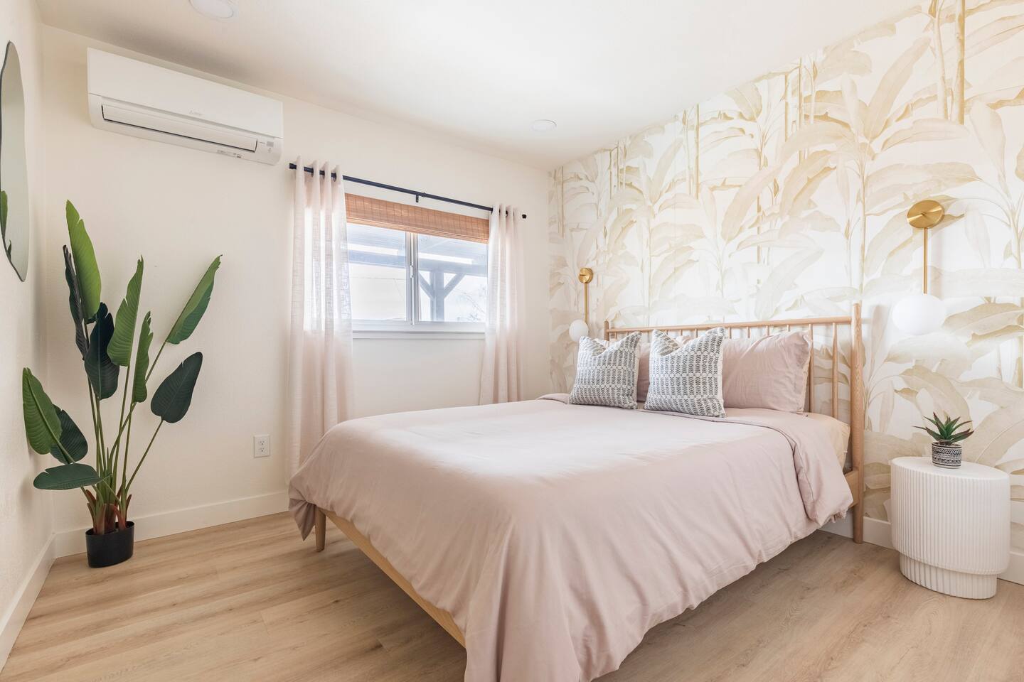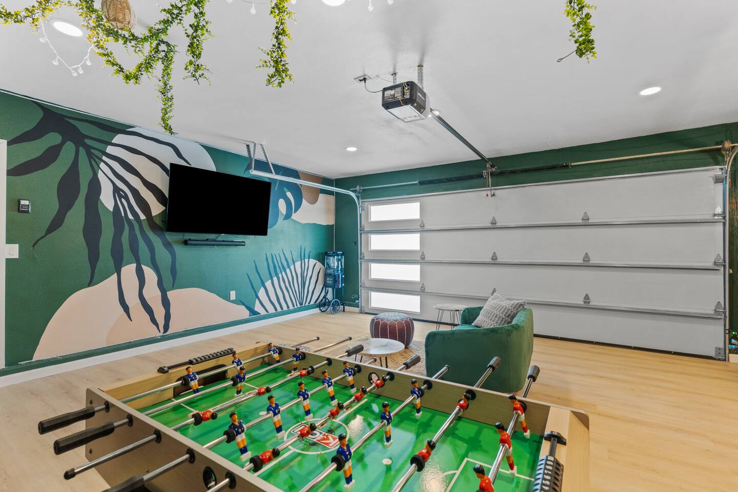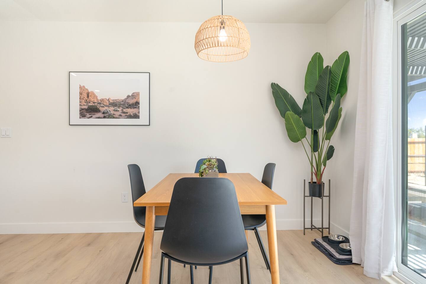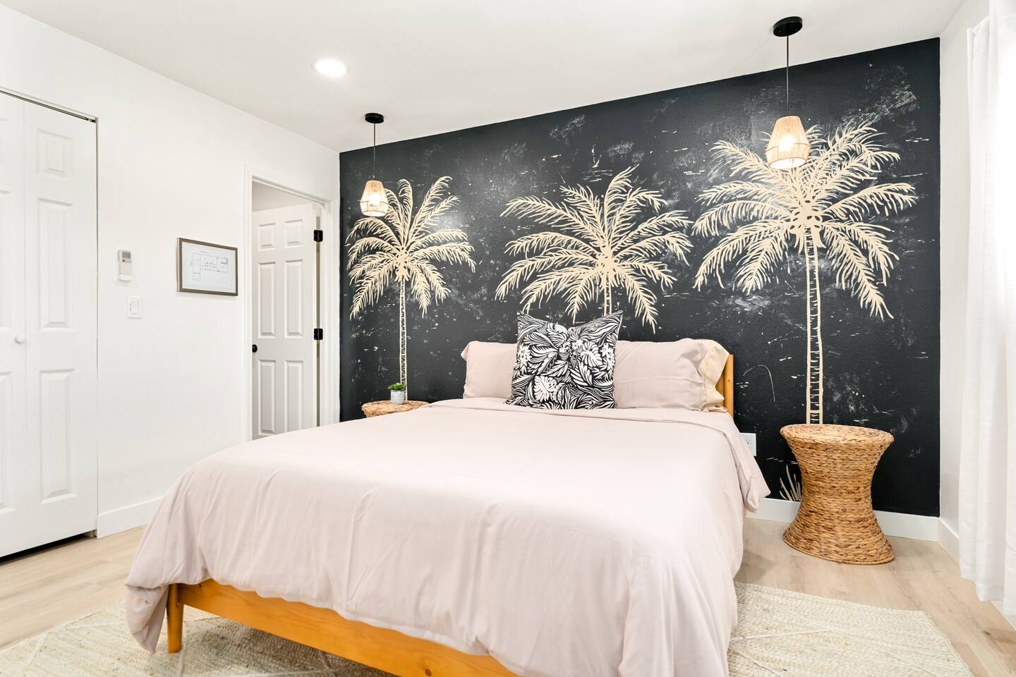 Picturing yourself relaxing underneath the palm trees is easy in this beautiful Tulum inspired home. Newly-remodeled, this home is perfect for families and small groups. Make the most of the stunning landscape with our incredible indoor and outdoor amenities! A brand new game room, hot tub, fire pit, stock tank pool, and hammocks await you for fun and relaxation! 22 Mins Drive to Joshua Tree National Park 2 min to Stater Bros Grocery Store 13 Mins Drive to Downtown Joshua Tree
