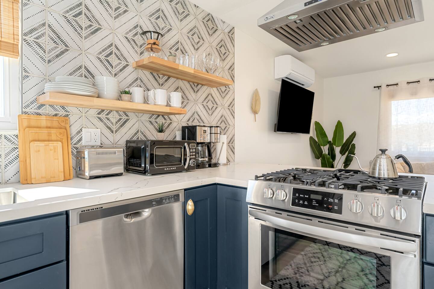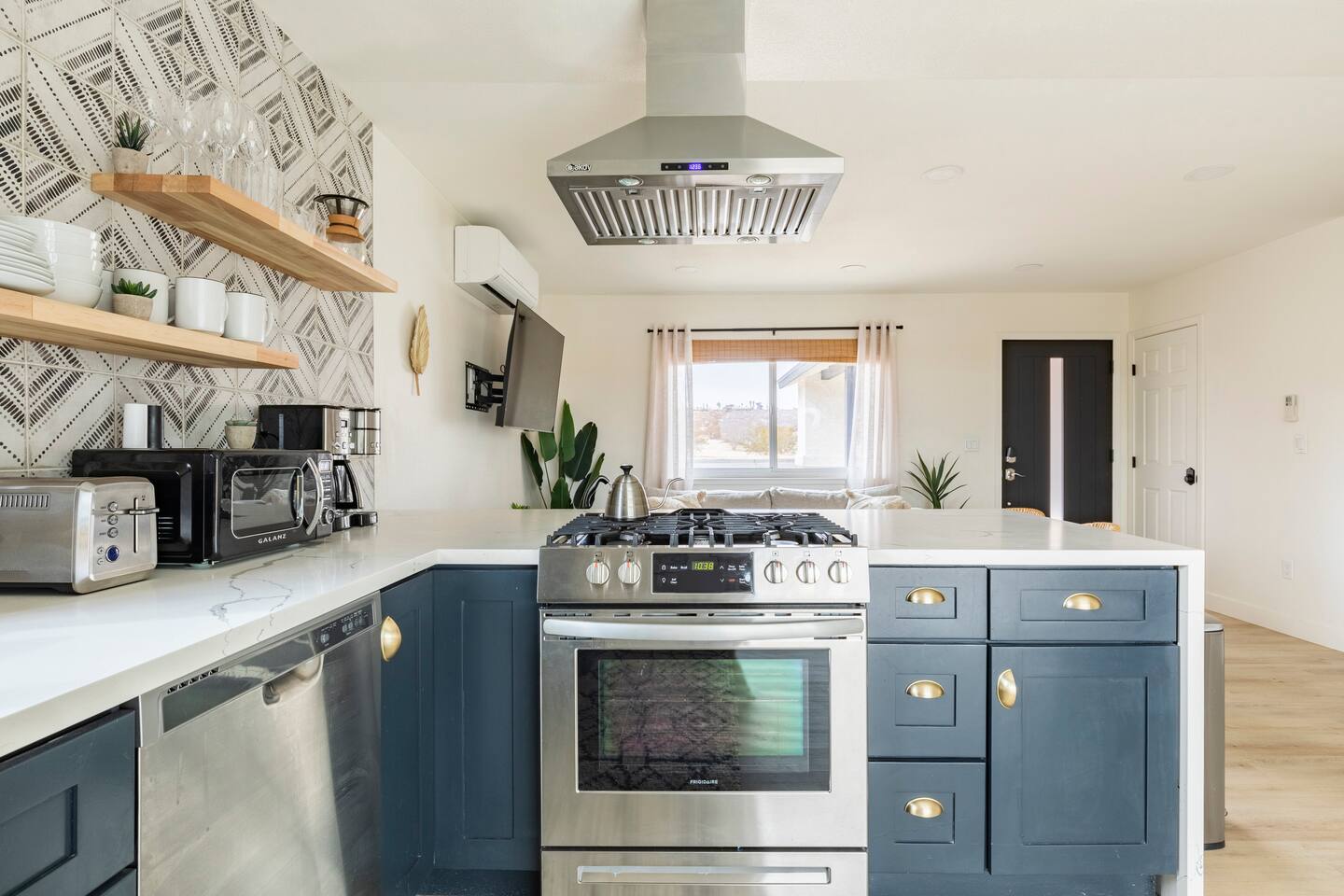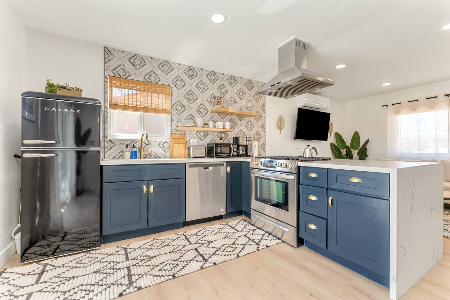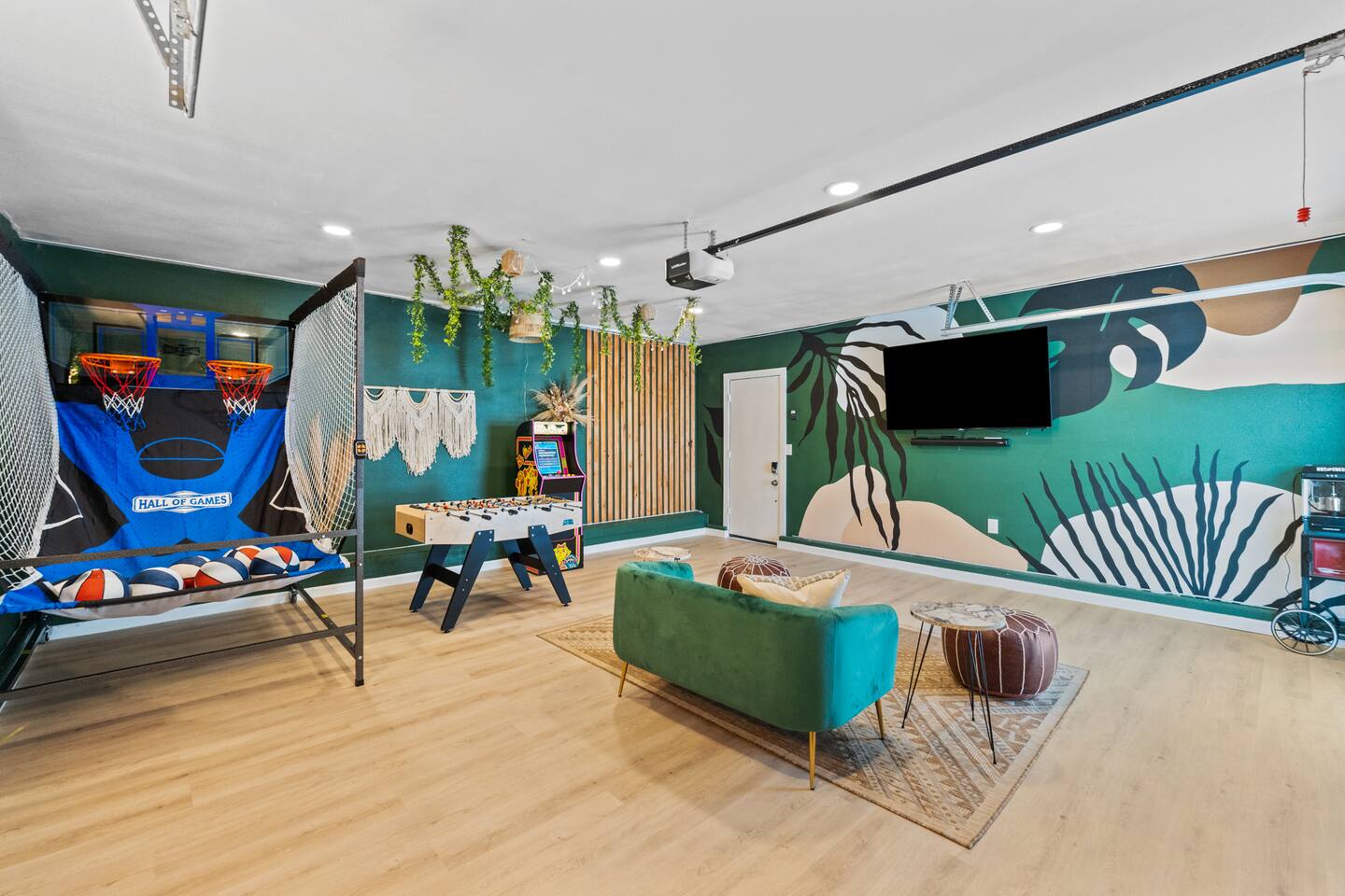 KEY FEATURES: ☀ 2 beautifully decorated bedrooms; 2 Queen-sized beds ☀ 2 full bathroom; both are showers only ☀ Open floor kitchen, dining + lounge area ☀ Fully-equipped kitchen ☀ Stocked coffee bar with assorted K-cups, whole bean coffee and coffee grounds ☀ Salt, pepper, and cooking spray are provided ☀ Large smart TV ☀ Private backyard w/ a stock tank pool, hot tub, fire pit + pergola w/ hanging hammock chairs ☀ Beautiful and fun game room complete with smart TV, Foosball, arcade games, arcade basketball and vintage popcorn machine ☀ Air conditioning + central heating ☀ Dedicated workspace + wifi ☀ External security cameras covering the front door ☀ Free on site laundry ☀ Free parking on-site ☀ Single-level home w/ stairless access ☆☆ BEDROOMS ☆☆ This perfect desert home provides you with two beautiful bedrooms to rest your head for the night. Both bedrooms are stylishly furnished with queen-sized beds and topped with extra-comfortable Zinus memory foam mattresses. Our guests rave about our luxurious mattresses! All of the spacious bedrooms are light, airy spaces and offer plenty of storage space for your clothing and personal belongings. The thoughtful touches and beautiful decor make them the perfect spot to kick back and relax after a long day seeing the sights of the desert ☆☆ BATHROOMS ☆☆ Make use of the good-sized bathrooms, complete with gorgeous tiled showers, and stylish vanity. This bright space is the perfect place for unwinding after an energetic hike through Joshua Tree National Park. ☆☆ KITCHEN & LOUNGE ☆☆ Our open-plan kitchen, dining area, and lounge are full of natural light, making it a relaxing space to gather in as a family or small group. We provide everything you need to make delicious meals, from new stainless steel appliances to a dedicated coffee station. We know how important a good cup of Joe is, so our coffee station features an automatic coffee machine as well as a drip coffee kettle. Enjoy coffee your way! Four bar stools are arranged around the kitchen island, making it a lovely spot for breakfast or just to chat with the chef. For formal and fun dinners, make use of the dining table. It’s set for four and overlooks the backyard, ideal for a relaxing meal. The whole space is completed with the spacious living room. Here you’ll be able to enjoy evenings in front of the smart TV, curling up with a good book, or enjoying the company of family and friends ☆☆ OUTSIDE SPACE ☆☆ Our favorite feature of our peaceful desert oasis house is the fully-fenced backyard. We’ve lovingly created a private, relaxing space for you to enjoy. Why not take advantage of our stock tank pool to chill out and get some refreshments from the hot weather? If hot tubs are more your thing, we’ve got you covered there, too. Next to the stock tank pool, you’ll find a heated jacuzzi, which will help you soak away any tiredness you might have from your adventures of the day. For the ultimate desert experience, turn on the pretty string lights, light up the fire pit and make some s’mores as the evening draws in. Stargazing is a must when you’re in the desert, and you can do so at the pergola, where you’ll be able to sway under the stars in a cozy hammock. ☆☆Game Room ☆☆ Check out the newly remodeled game room and challenge your friends or family to some friendly competition on the Foosball Table, Arcade Basketball or Ms. Pacman. After the winner is crowned, relax on the couch enjoying some popcorn from the vintage popcorn machine! ★☆ Book Today & Let Us Take Care Of You In Joshua Tree! ☆★