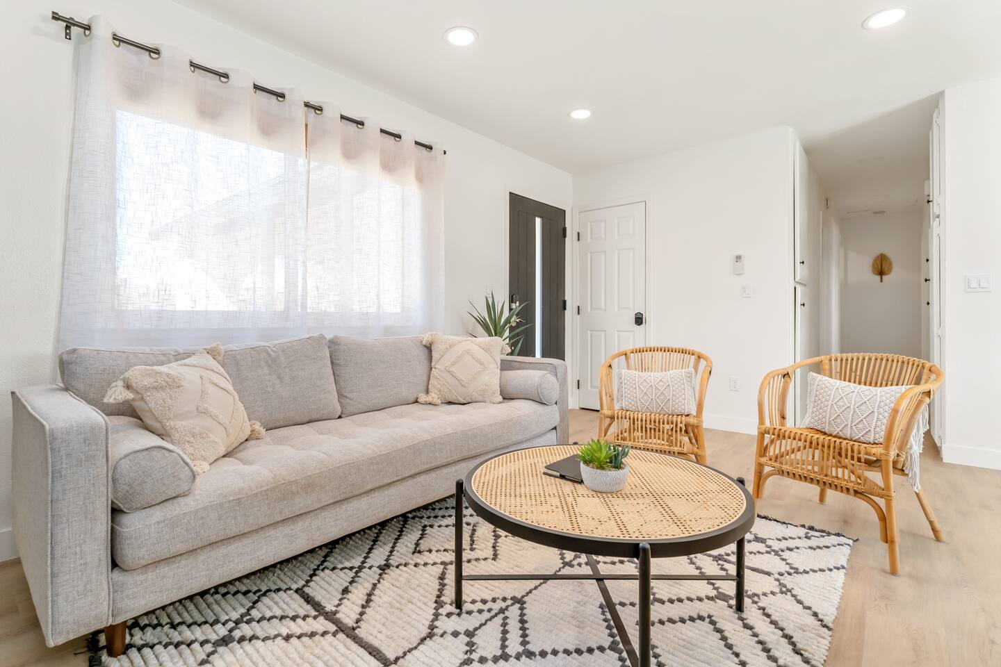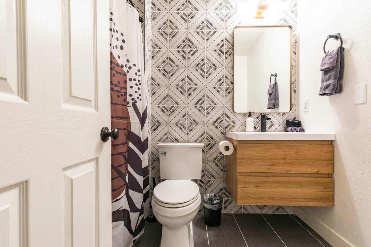 GUEST ACCESS Our guests have access to the entire house during their stay. The property is spread over a single level, making it the perfect place for families with young children or elderly relatives. Two bedrooms and a central lounge and kitchen space give you plenty of room to spend time together, as well as enough space to get your privacy when you need it. You’ll have no trouble with parking as the property has lots of on-site parking space on the driveway. Please use caution when pulling into the driveway, as the grade is a little steep and could damage the bottom of your car if you are going too fast! The property includes reliable wifi throughout, so you’ll be able to stream or work to your heart’s content! There is a washer and dryer on site! Please note there is a Ring Flood Light security camera located at the front of the house facing the entrance for your security. There are no cameras inside the property.