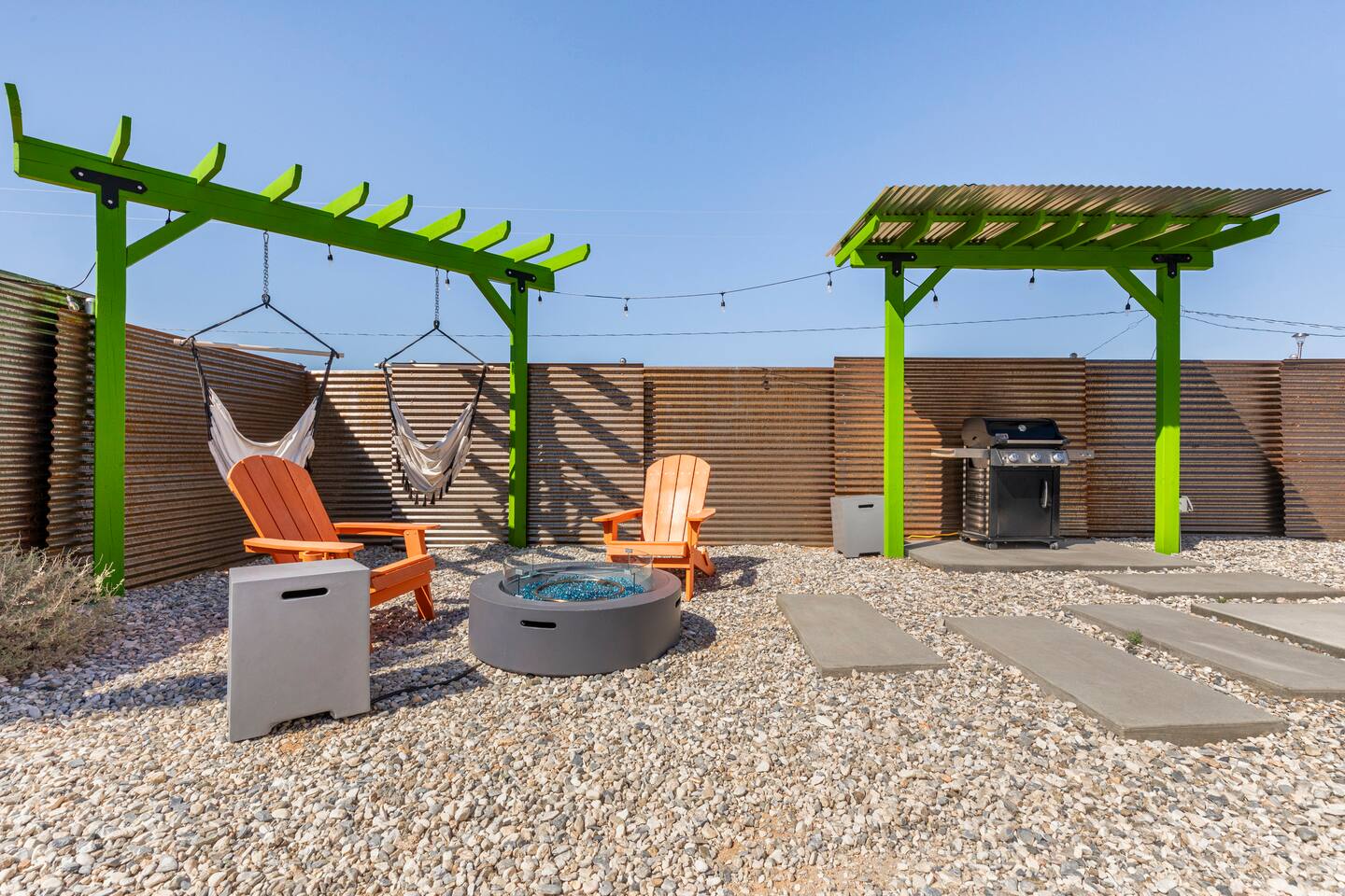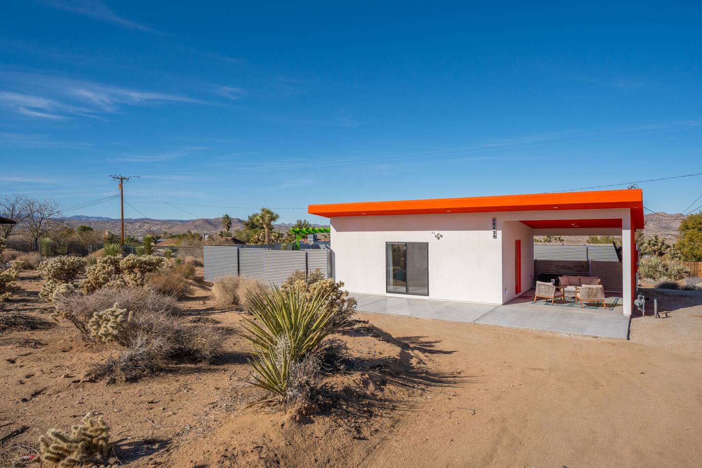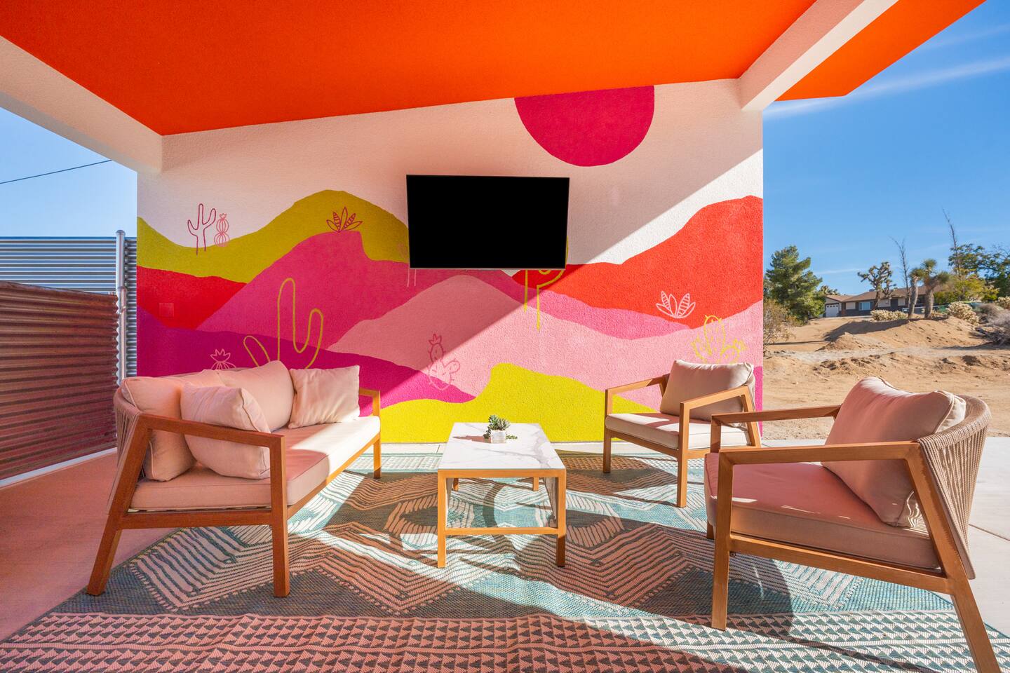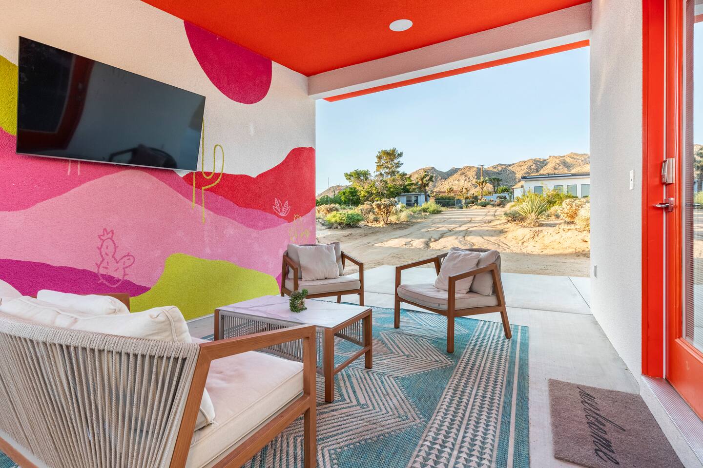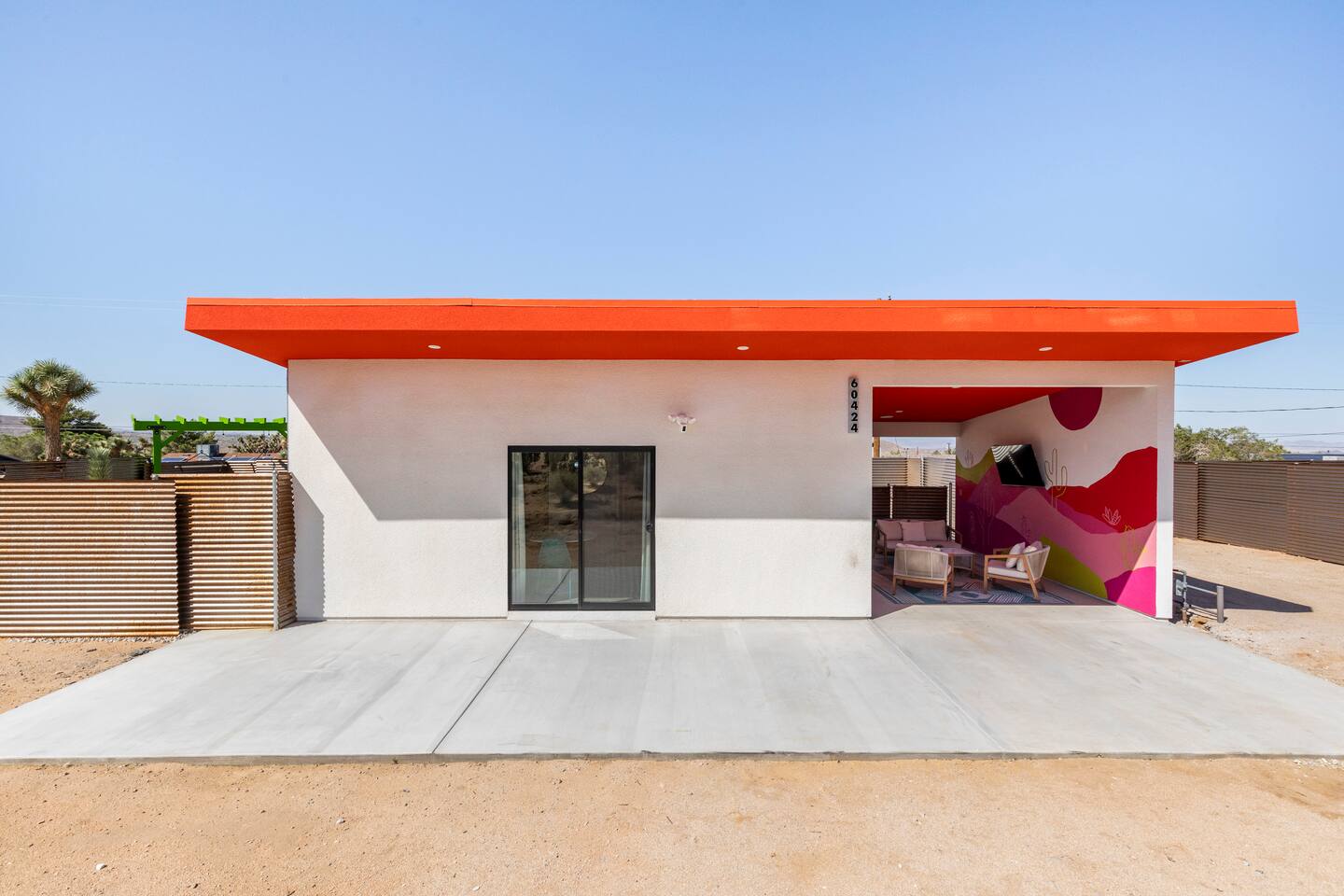 A beautiful desert oasis awaits you, perfect for work or play. Our tiny home was carefully designed to give you the perfect escape from the stresses of life. This is the ideal getaway for a couple or small group and includes a fully fenced in yard, hot tub, outdoor shower, grill, fire pit and pergola with hanging hammock chairs to enjoy the night sky. 11 Min to the West Entrance to Joshua Tree National Park 5 Min to downtown JT 6 Min to Walmart