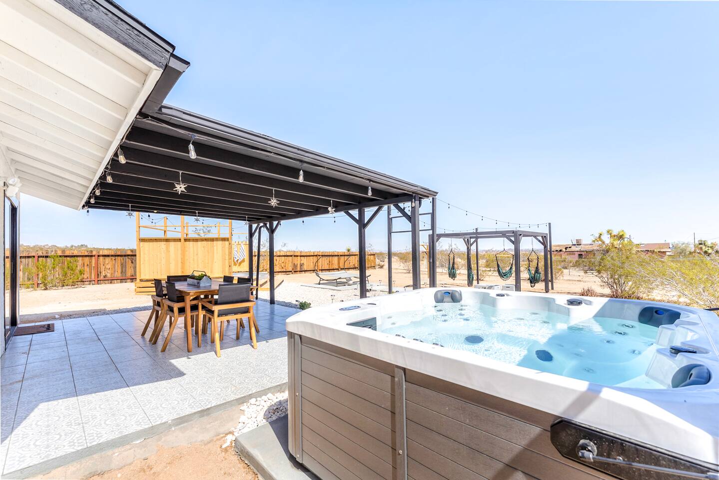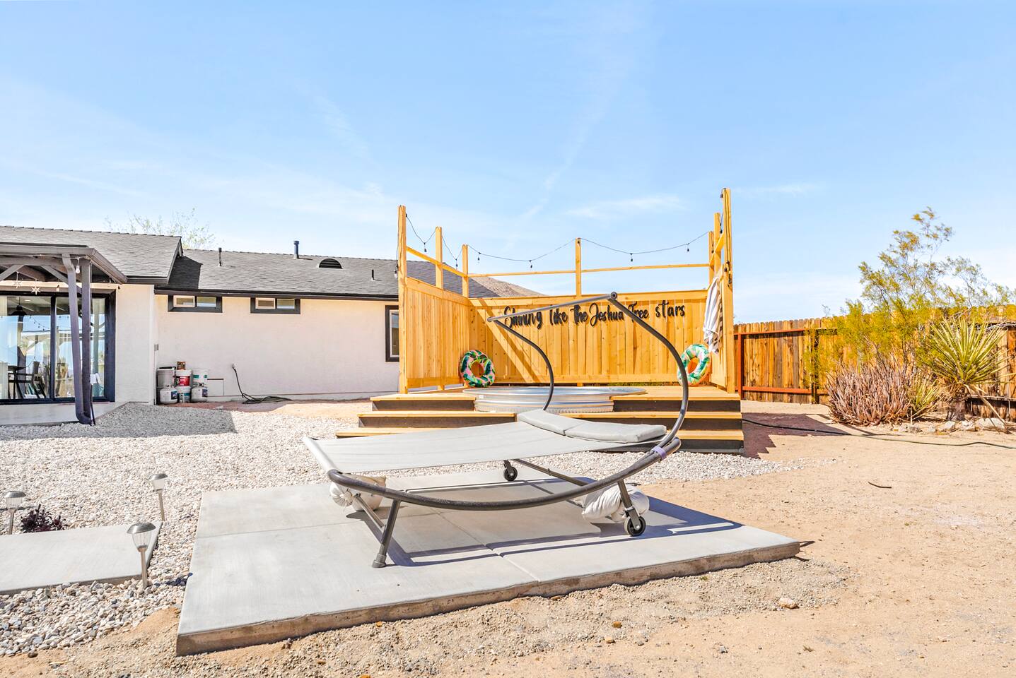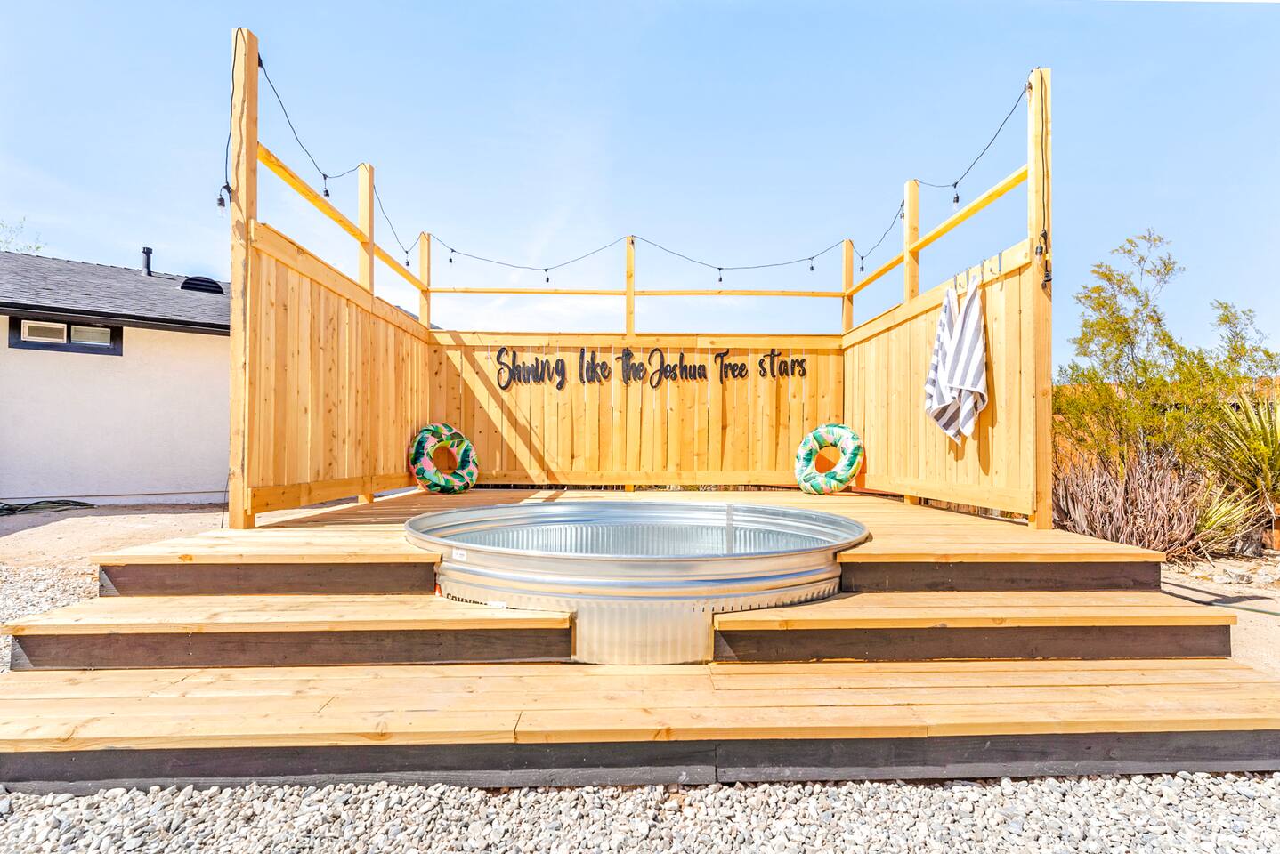 Joshua Tree is calling your name! Your desert oasis awaits you in this newly renovated 3 bedroom home that is perfect for families and small groups. Make the most of the beautiful landscape with our incredible outdoor space, complete with a hot tub, fire pit, stock tank pool, and hammocks for you to enjoy stargazing in comfort. 15 Mins Drive to Joshua Tree National Park 12 Mins Drive to Walmart 5 Mins Drive to Downtown Joshua Tree Experience Joshua Tree With Us & Learn More Below!