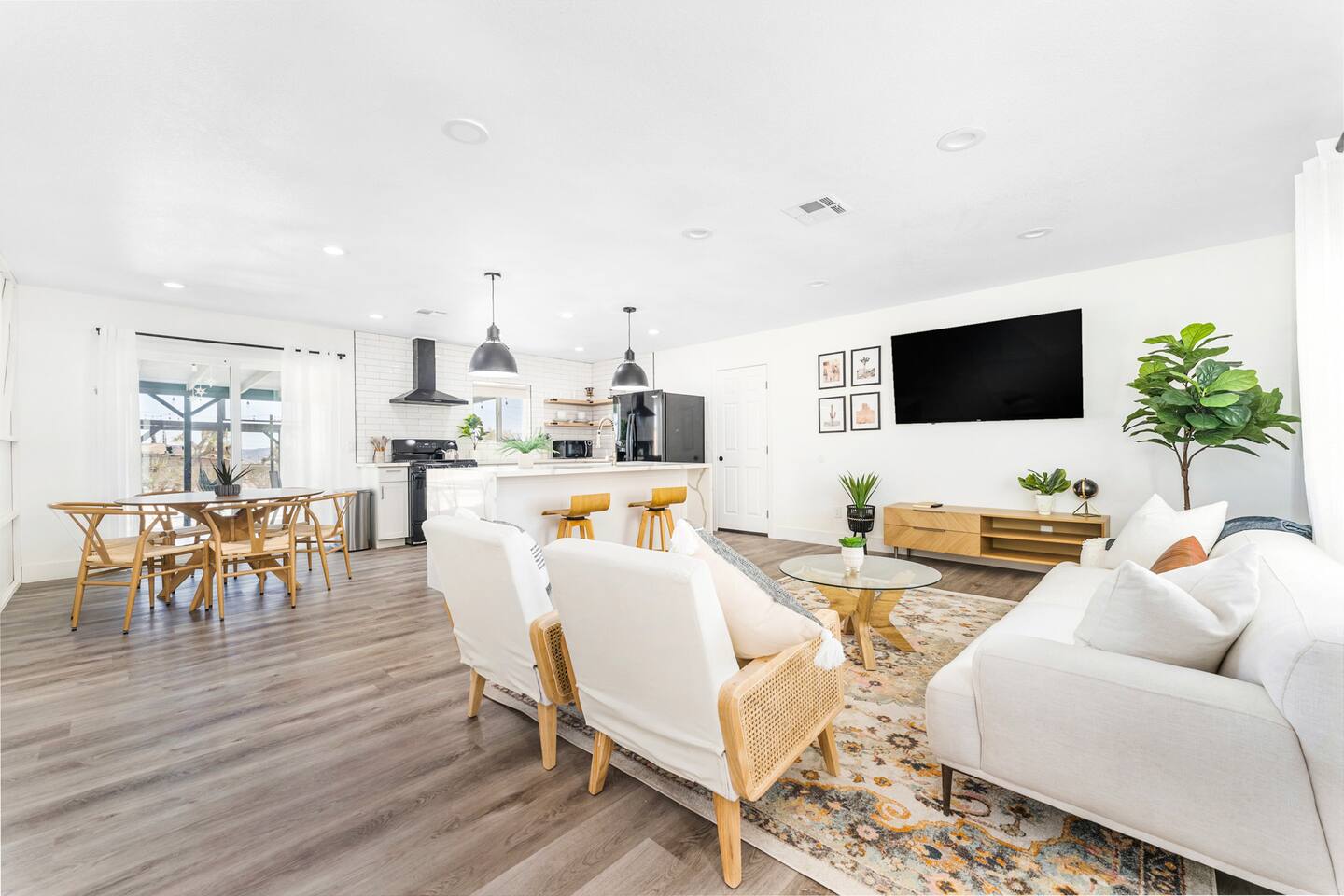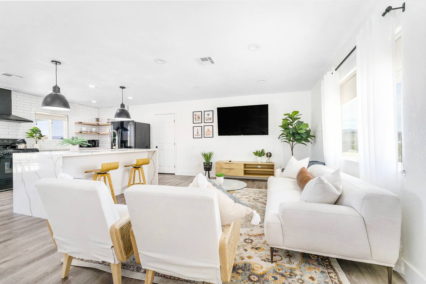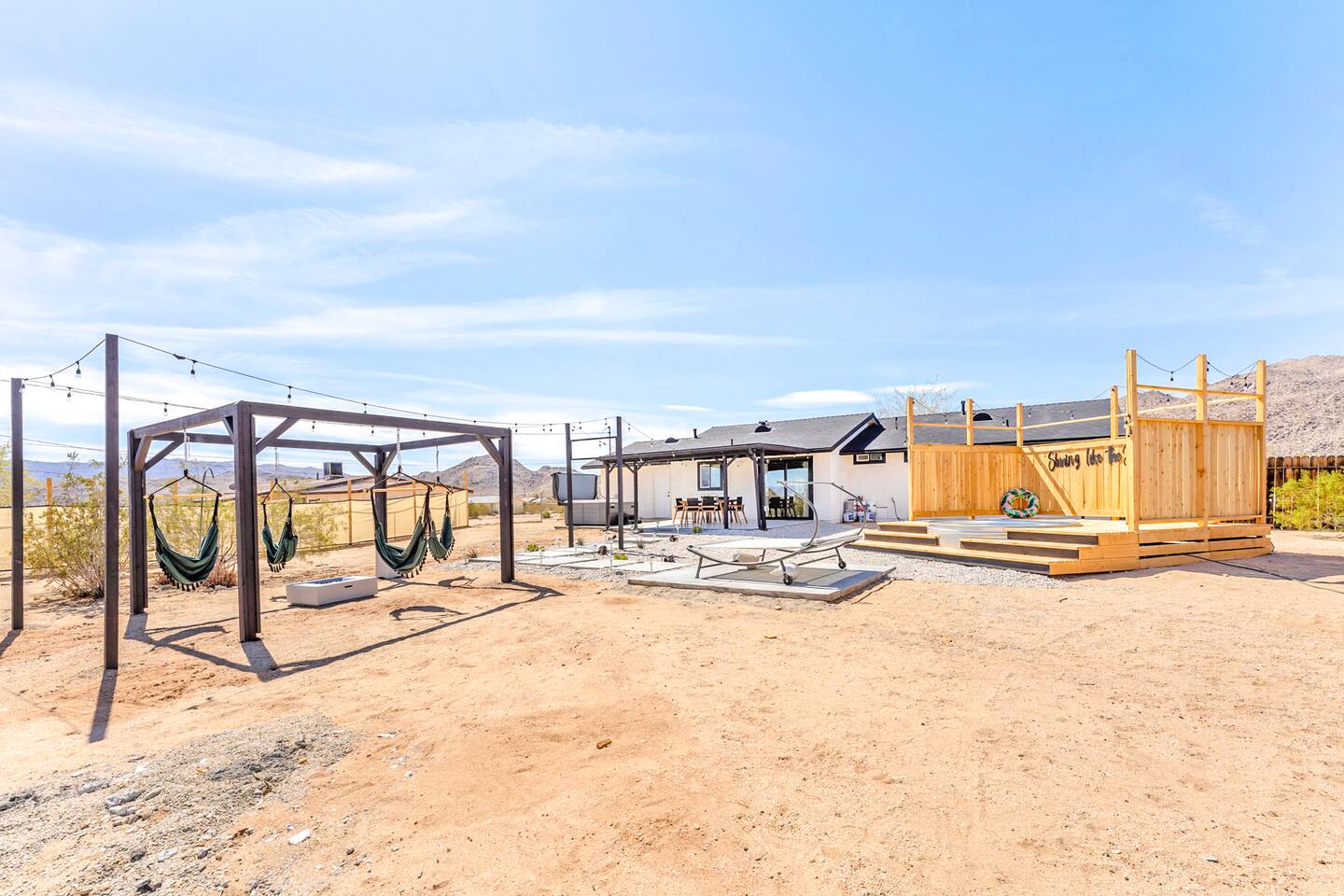 Joshua Tree is calling your name! Your desert oasis awaits you in this newly renovated 3 bedroom home that is perfect for families and small groups. Make the most of the beautiful landscape with our incredible outdoor space, complete with a hot tub, fire pit, stock tank pool, and hammocks for you to enjoy stargazing in comfort. 15 Mins Drive to Joshua Tree National Park 12 Mins Drive to Walmart 5 Mins Drive to Downtown Joshua Tree Experience Joshua Tree With Us & Learn More Below!