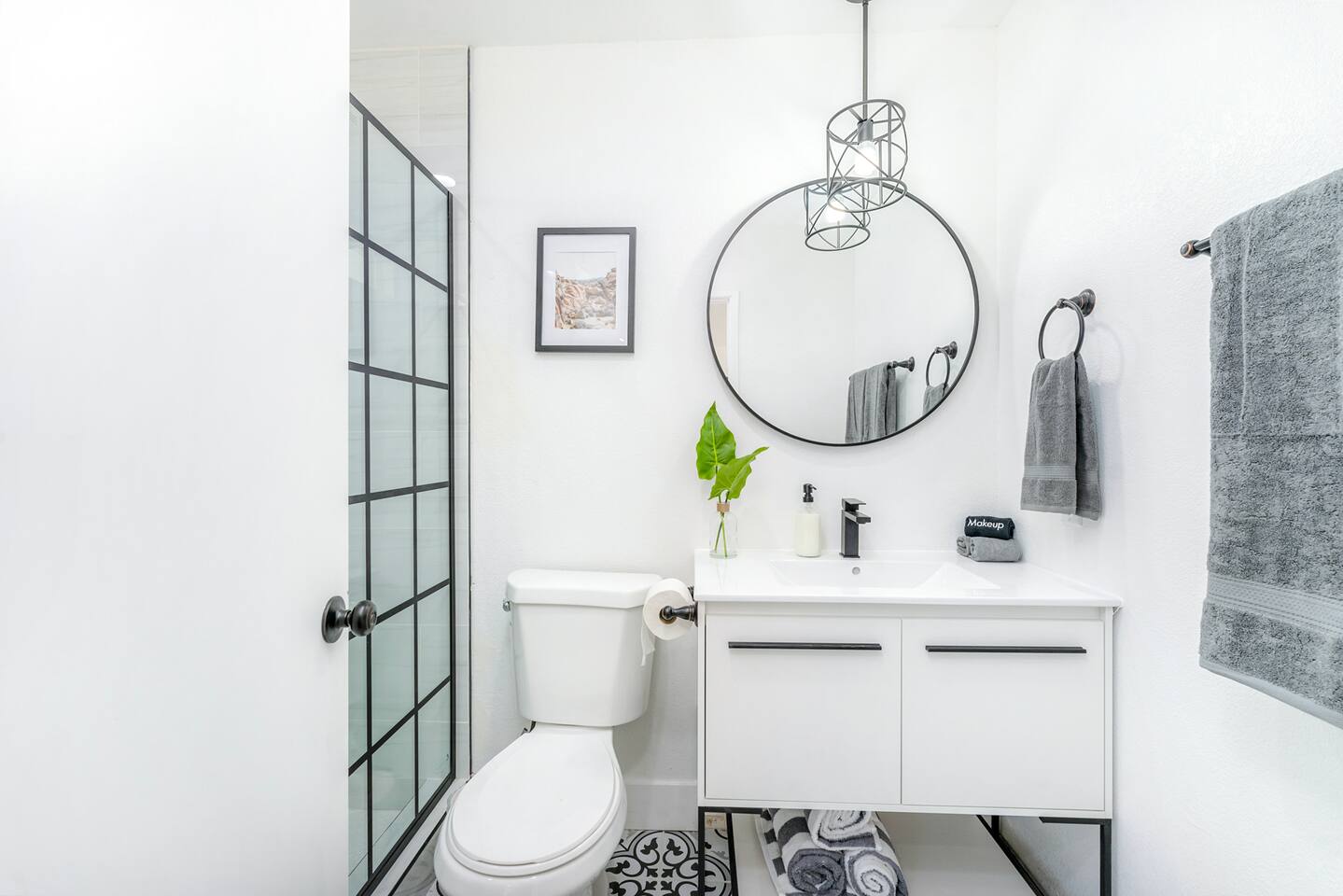 Our guests have access to the entire house during their stay. The property is spread over a single level, making it the perfect place for families with young children or elderly relatives. Three bedrooms and a central lounge and kitchen space give you plenty of room to spend time together, as well as enough space to get your privacy when you need it. You’ll have no trouble with parking as the property has lots of on-site parking space on the driveway. The property includes reliable wifi throughout and a dedicated workspace, so you’ll be able to stream or work to your heart’s content! There is an on-site washer and dryer for any clothes washing needs you may have! Please note there is a Ring Flood Light security camera located at the front of the house facing the parking and entrance for your security. There are no cameras inside the property.