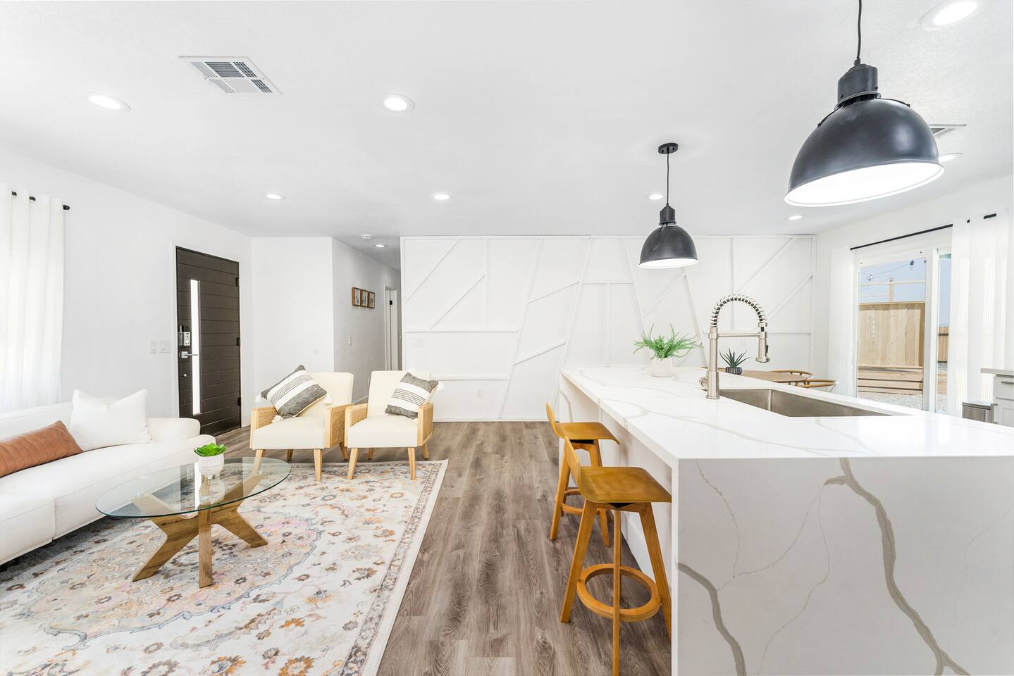 ☆You must be 25+ to book ☆The person that made the reservation needs to be present at the property for the duration of the reservation ☆No parties are allowed. Evidence of a party will result of the immediate cancellation of your reservation ☆No smoking is allowed in the interior of the property. Smoking is allowed outside of the property ☆Guests will need to bring all personal toiletries including tooth paste, tooth brush, shampoo, conditioner, and body wash ☆Tampering with exterior cameras and/or interior noise monitoring systems are prohibited and will have a penalty fee if tampered with. ☆Failure to abide by house rules will result in additional fees being applied ☆PETS☆ We love hosting pets (SORRY, NO CATS ALLOWED)! We happily welcome up to two dogs (up to 50 lbs) at our home with an added pet fee of $100. If you're planning to bring your furry friends along, please don't hesitate to send me a message! Just a few other notes! You are expected to clean up after your pet, in the house, and in the yard. We have a small dog bed at the house available for you but also ask that you provide your OWN blanket for them to lay on if your pet prefers that. Dogs are NOT allowed on our furniture/beds/couch/blankets/sheets and an additional cleaning fee will be charged if dog hair is found on these items at check out. If you book and bring more than two dogs, you’ll be subject to additional fees. ☆ We have regularly scheduled hot tub tech service on select days each week. While we don’t have exact times in advance, we always send out a notification the night before to let guests know when to expect service. Thank you for your understanding as we work to keep the hot tub in top condition! ☆ Game Room is located inside the garage, which doesn't have AC so it may be hot during summer...BUT you can open the garage door to keep cool and have fun! Being that we are in the desert there also may be cactus plants in the yard, so if your dog is extra curious, keep an eye on them so they don’t get pricks in their paws or nose!