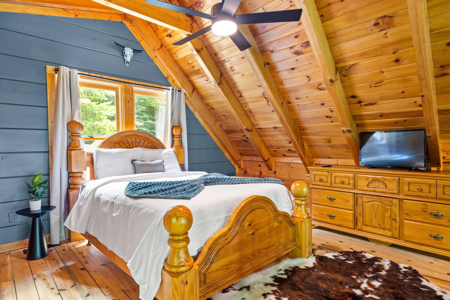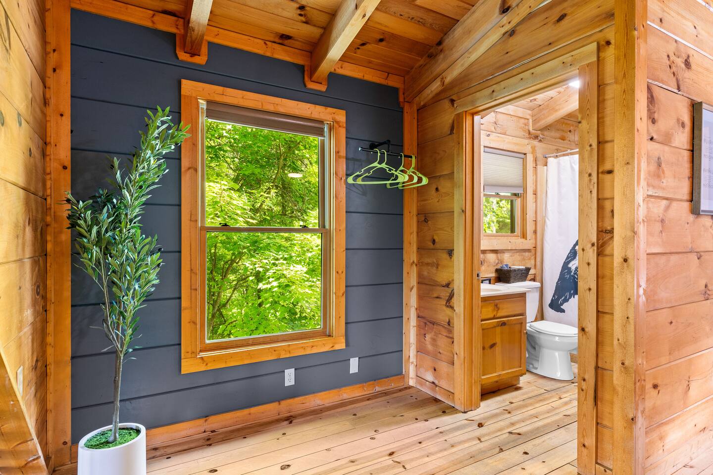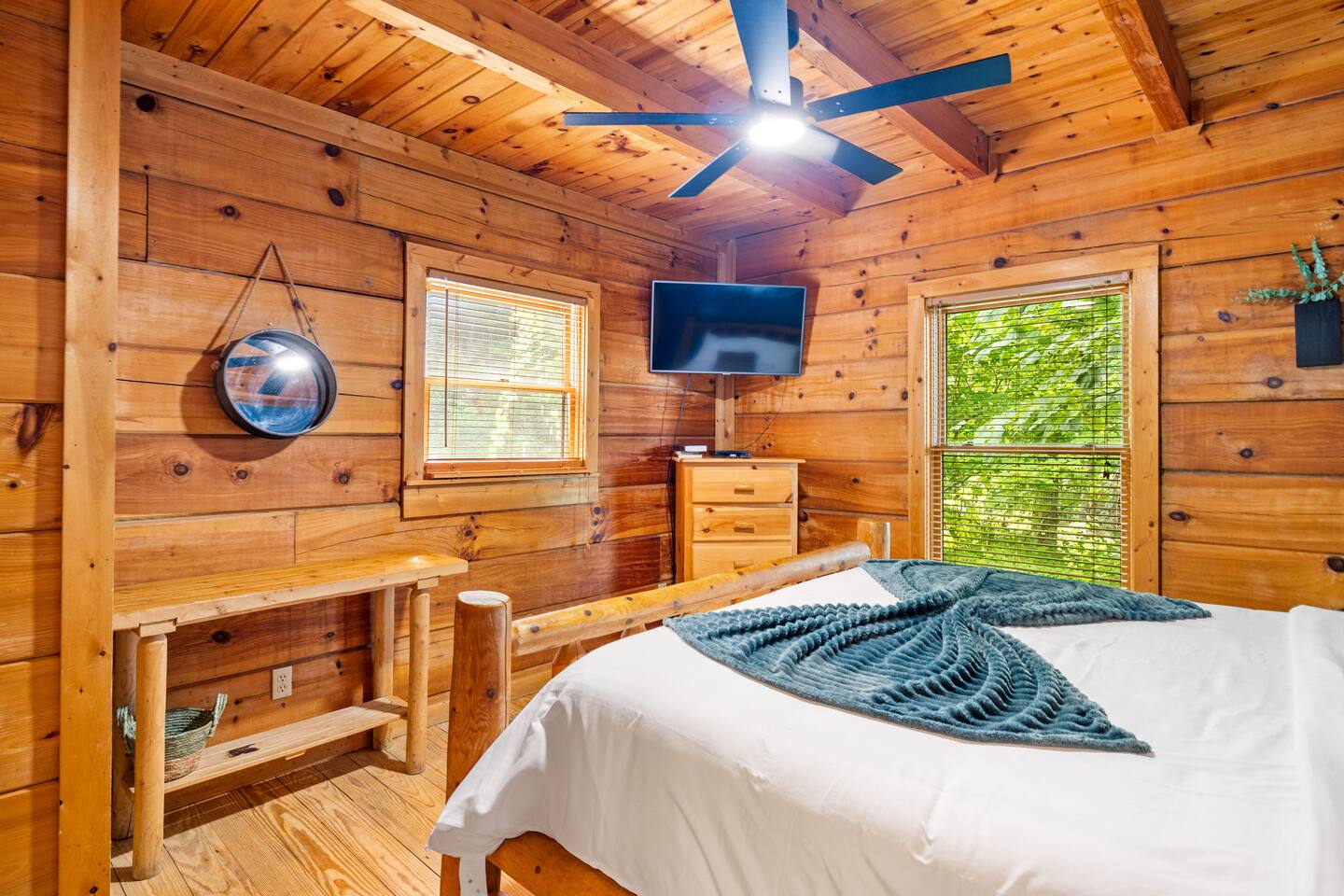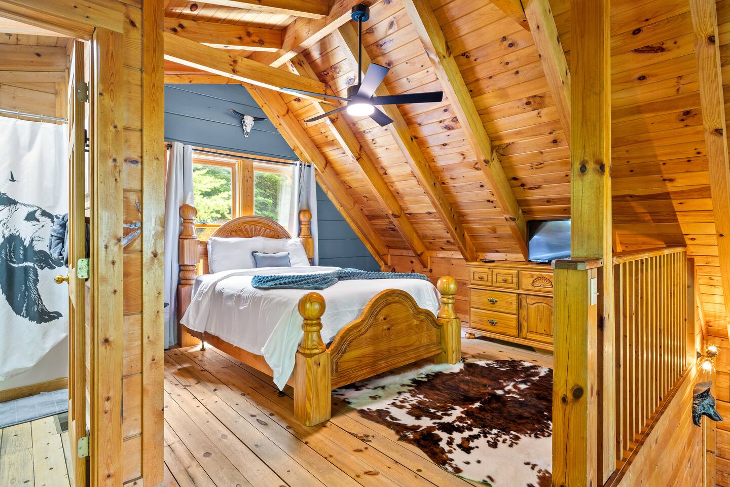 Stay in this homey cabin and access amazing amenities, including a laundry, game room, hot tub, Apple TVs, and high-speed WiFi. Free parking is available on the driveway, with additional street parking. The outdoor cameras on the driveway are for your peace of mind, and the home features a smart lock for convenient and smooth check-in. Please note there is a Ring Flood Light security camera located at the front and side of the cabin facing the parking and entrance for your security. There are no cameras inside the property. *We’ve made some fun updates downstairs! The bunk beds are now in the game room so everyone can be right by the pool table, and the old bunk room has been transformed into a cozy corner perfect for relaxing.